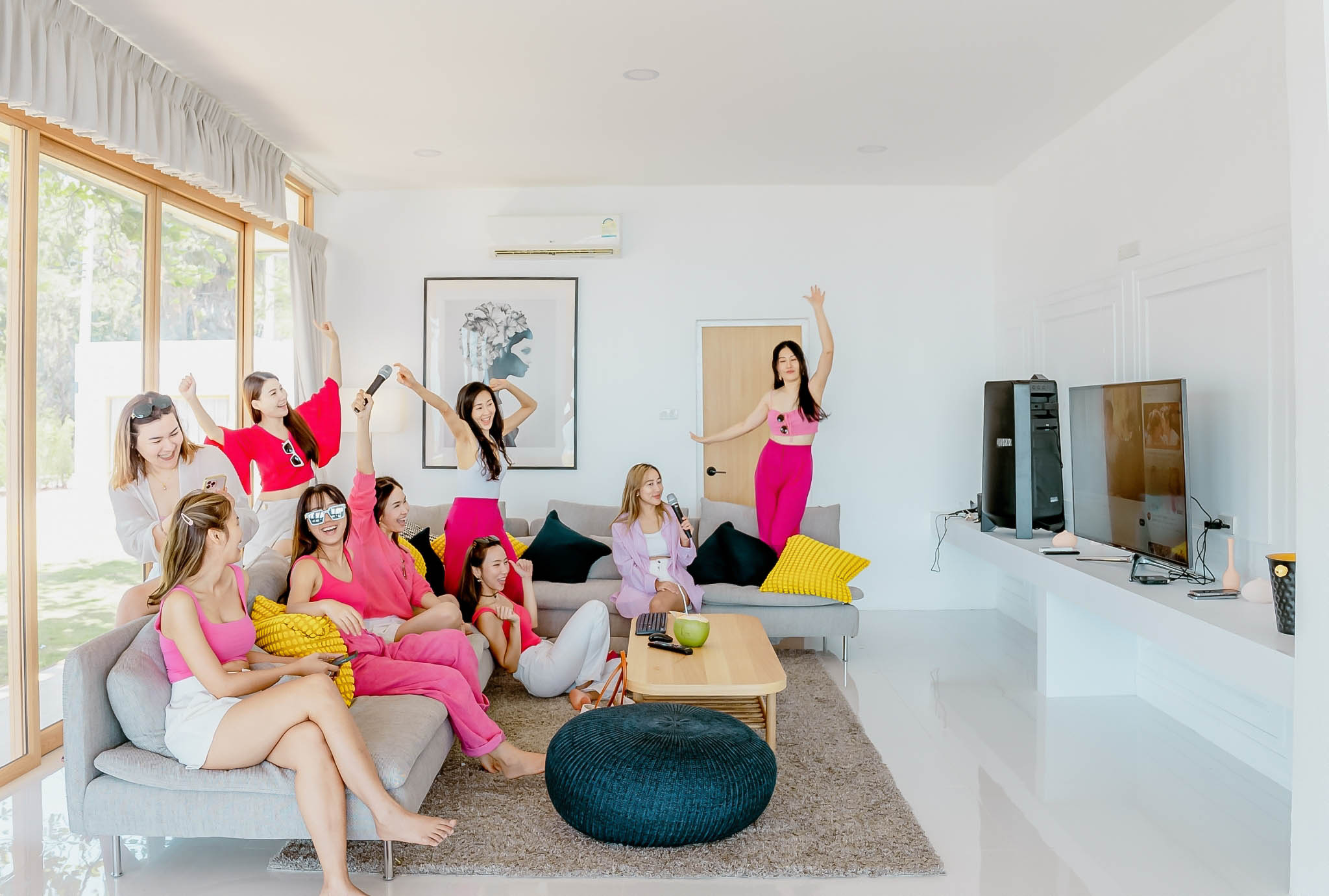 - ห้องนั่งเล่นสำหรับคาราโอเกะและปาร์ตี้ พร้อมบาร์เล็ก โต๊ะพูล โต๊ะปิงปอง