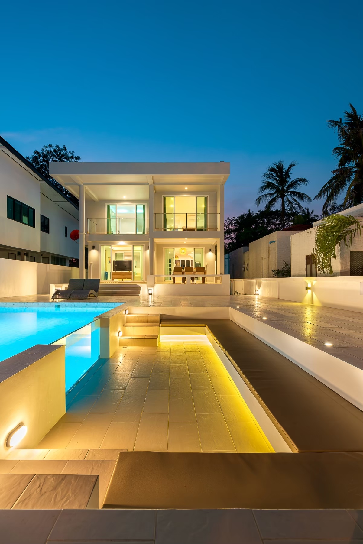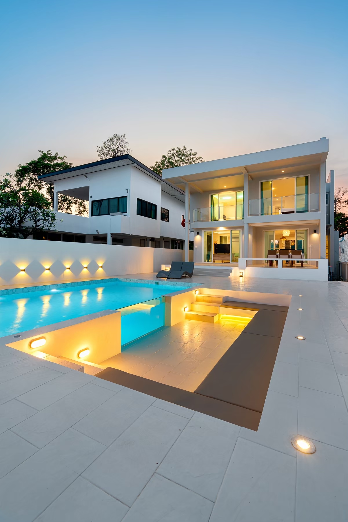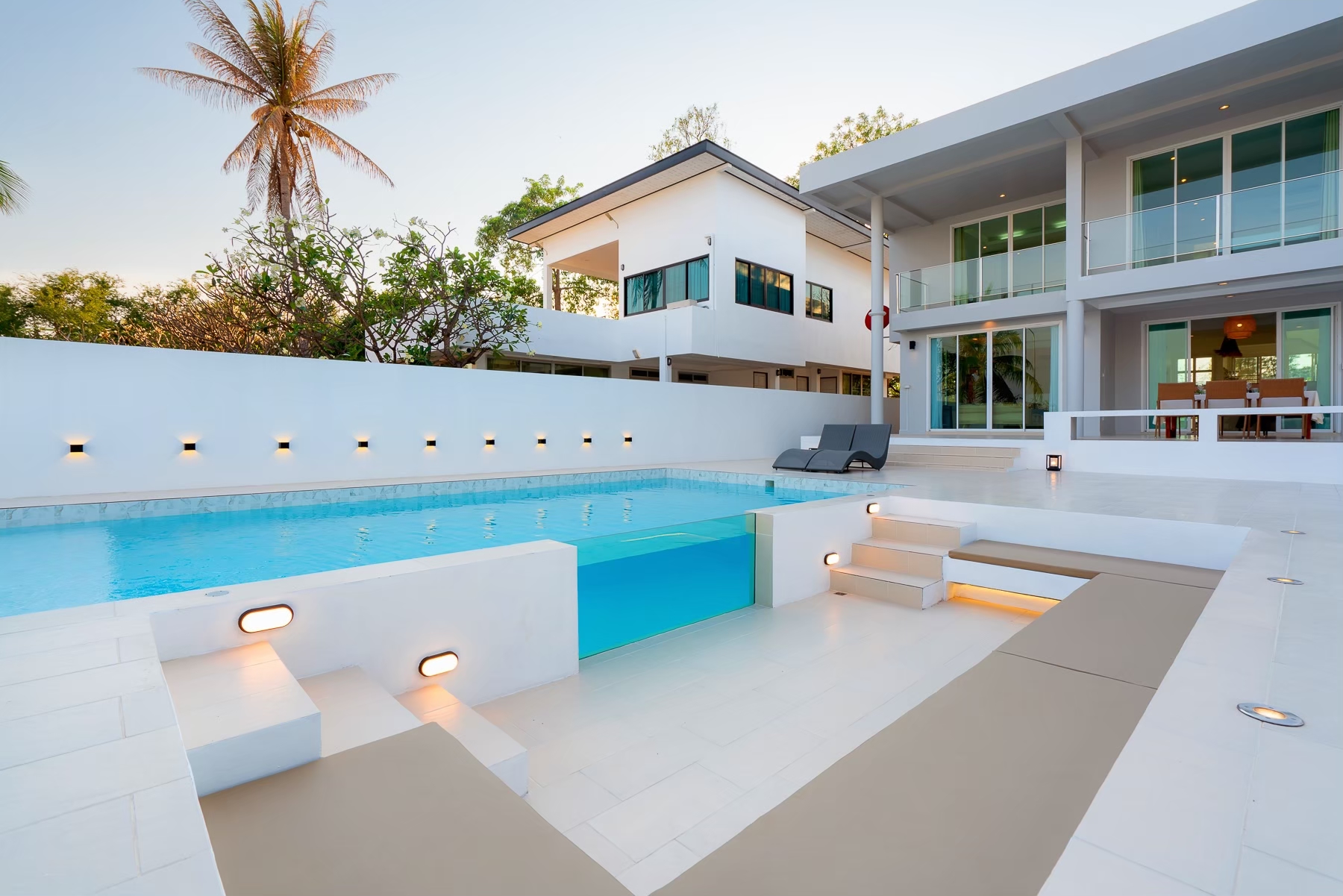 - สระว่ายน้ำแบบกระจกใส ติดกับโซน Outdoor conversation pit ดีไซน์ทันสมัย