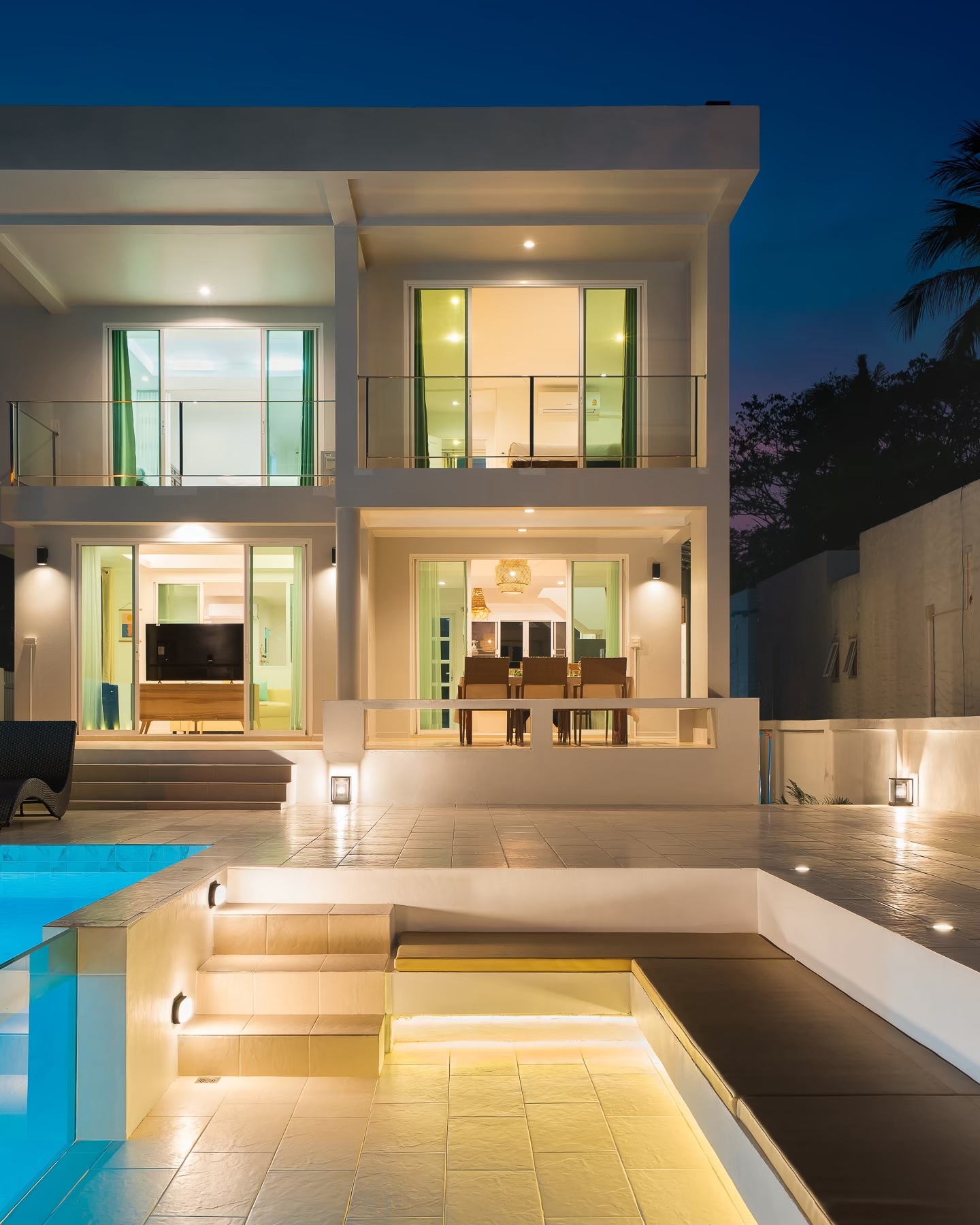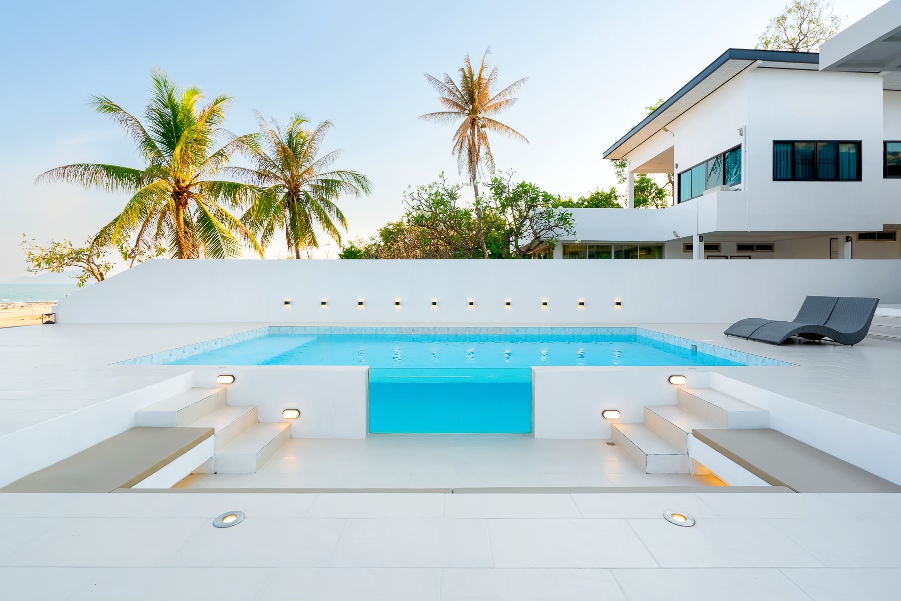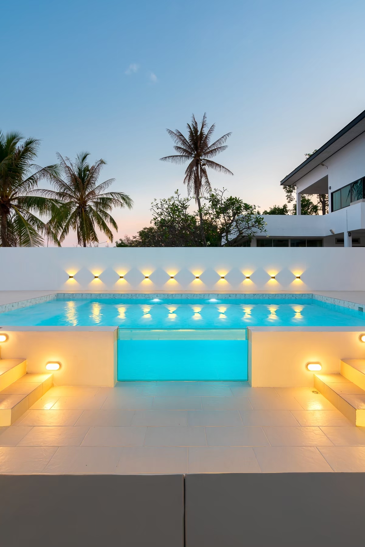 - สระว่ายน้ำแบบกระจกใส ติดกับโซน Outdoor conversation pit ดีไซน์ทันสมัย