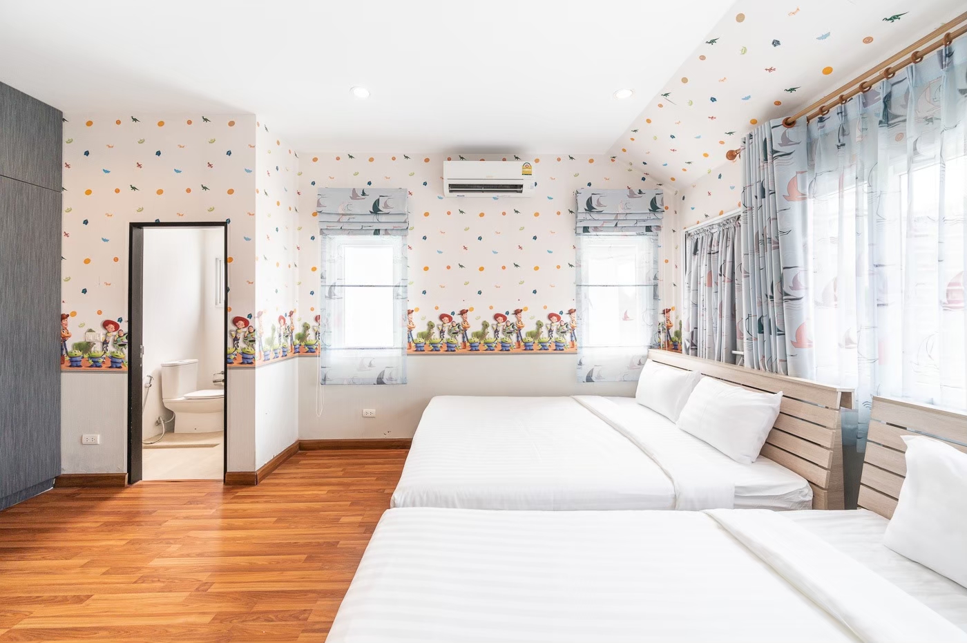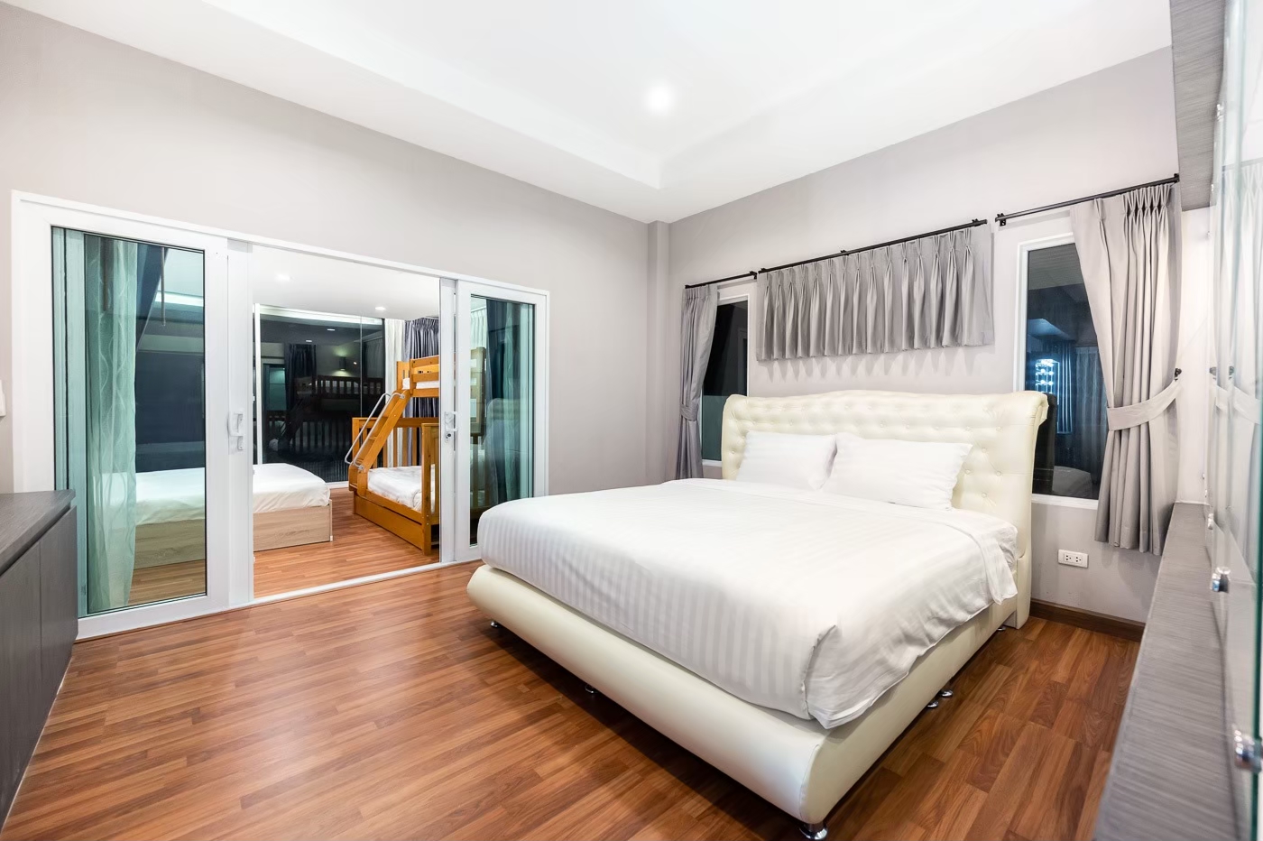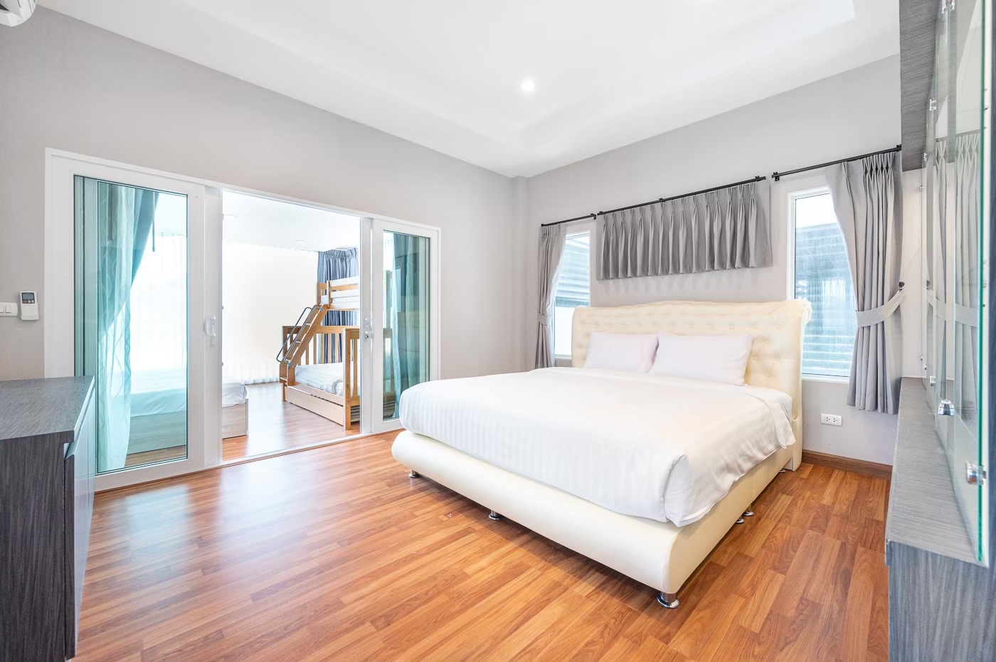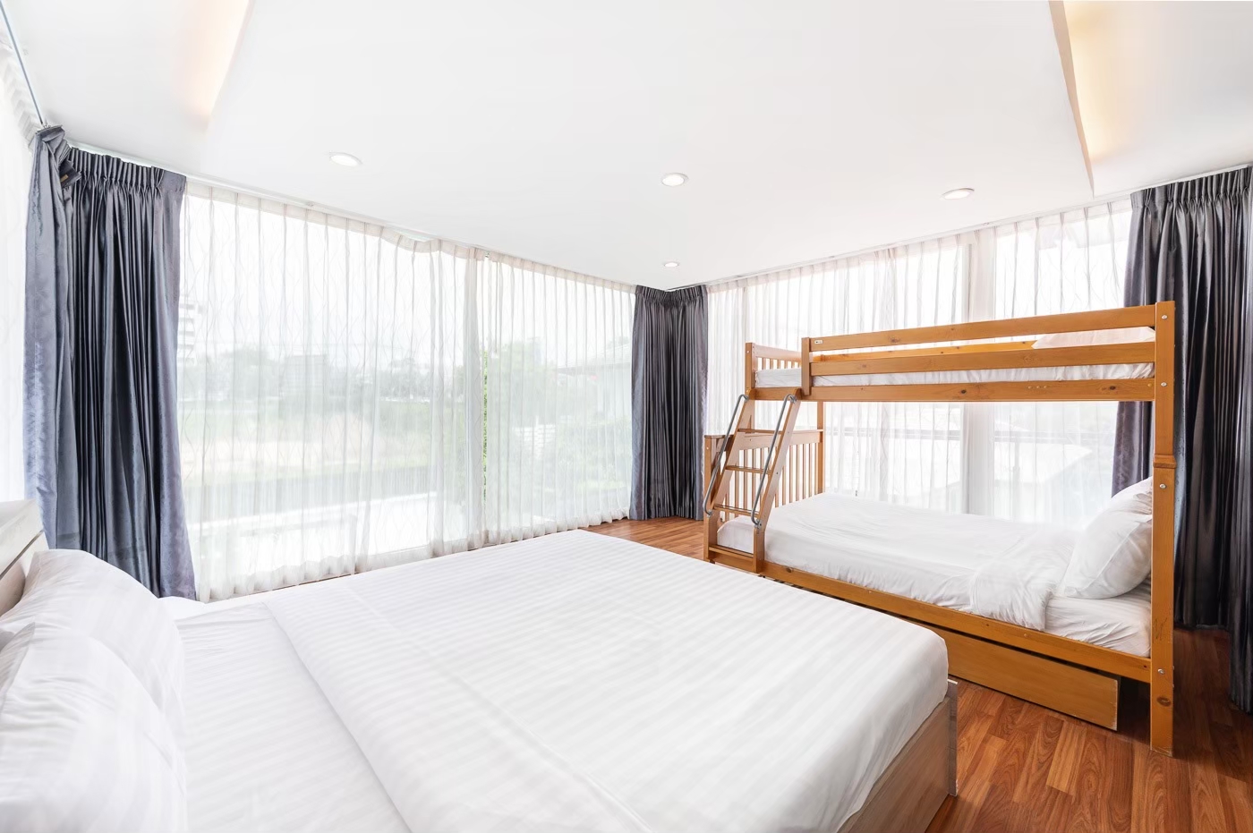 - ห้องนอน 5 : เตียง 6 ฟุต 1 เตียง + เตียง 3 ฟุต 1 เตียง + เตียง 2 ชั้น (ห้องนี้เข้าได้ผ่านห้องนอน 4)