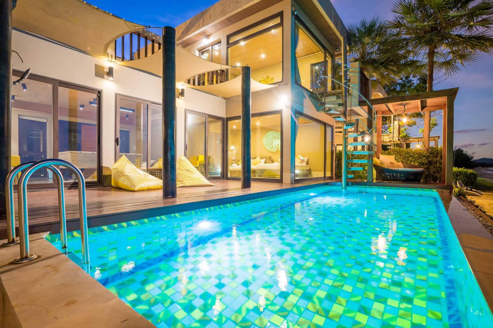 - Beanbag และที่นั่งริมสระตกแต่งโทนสีเหลือง