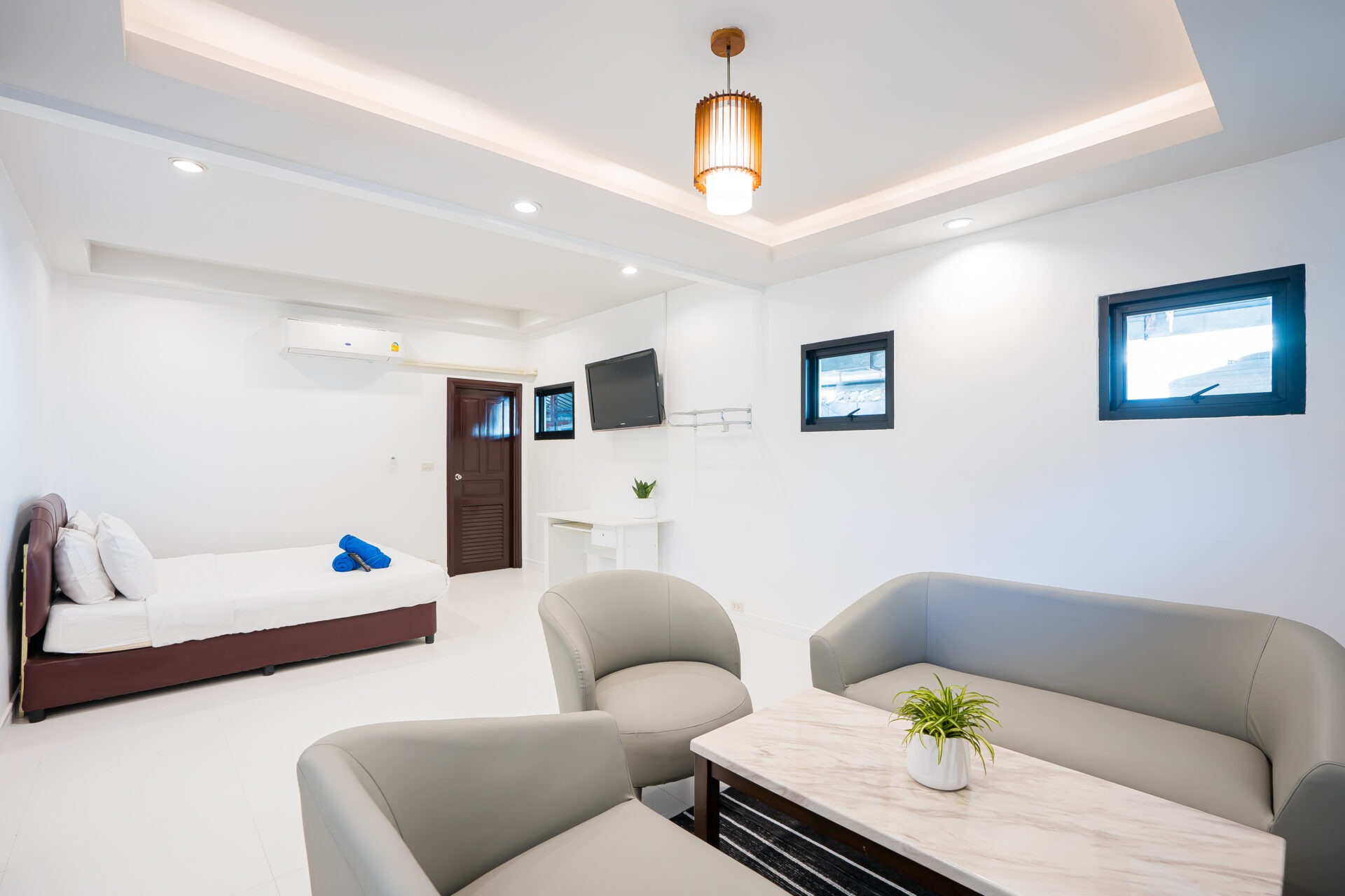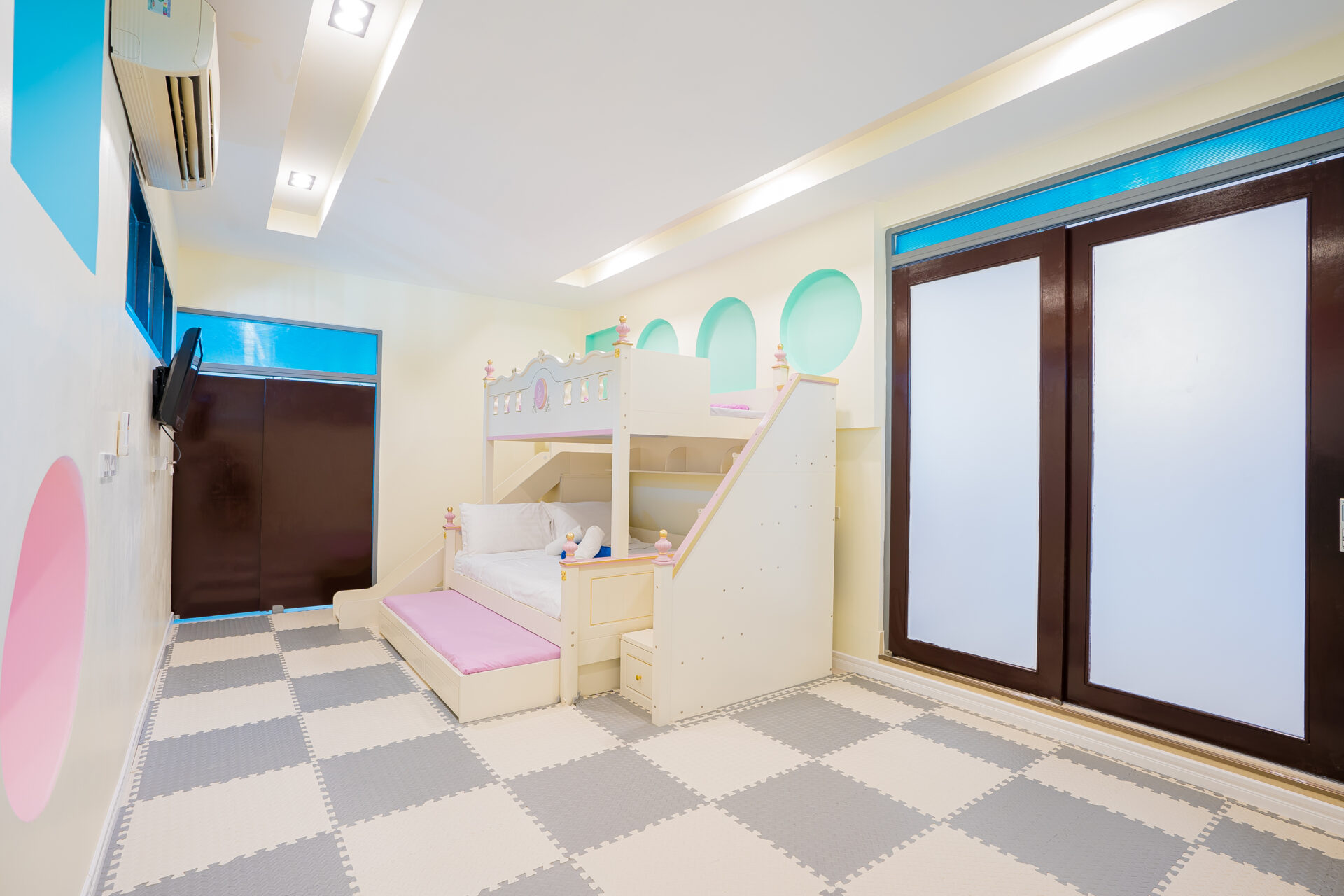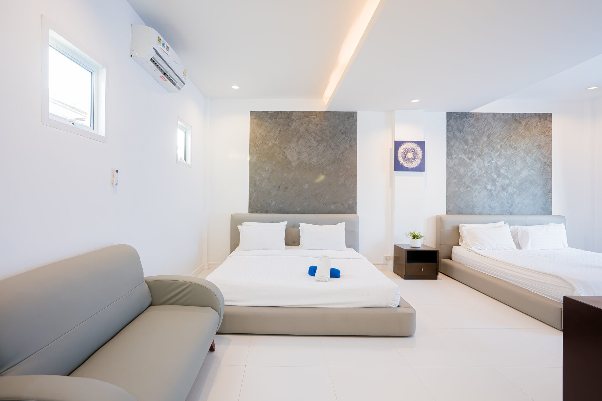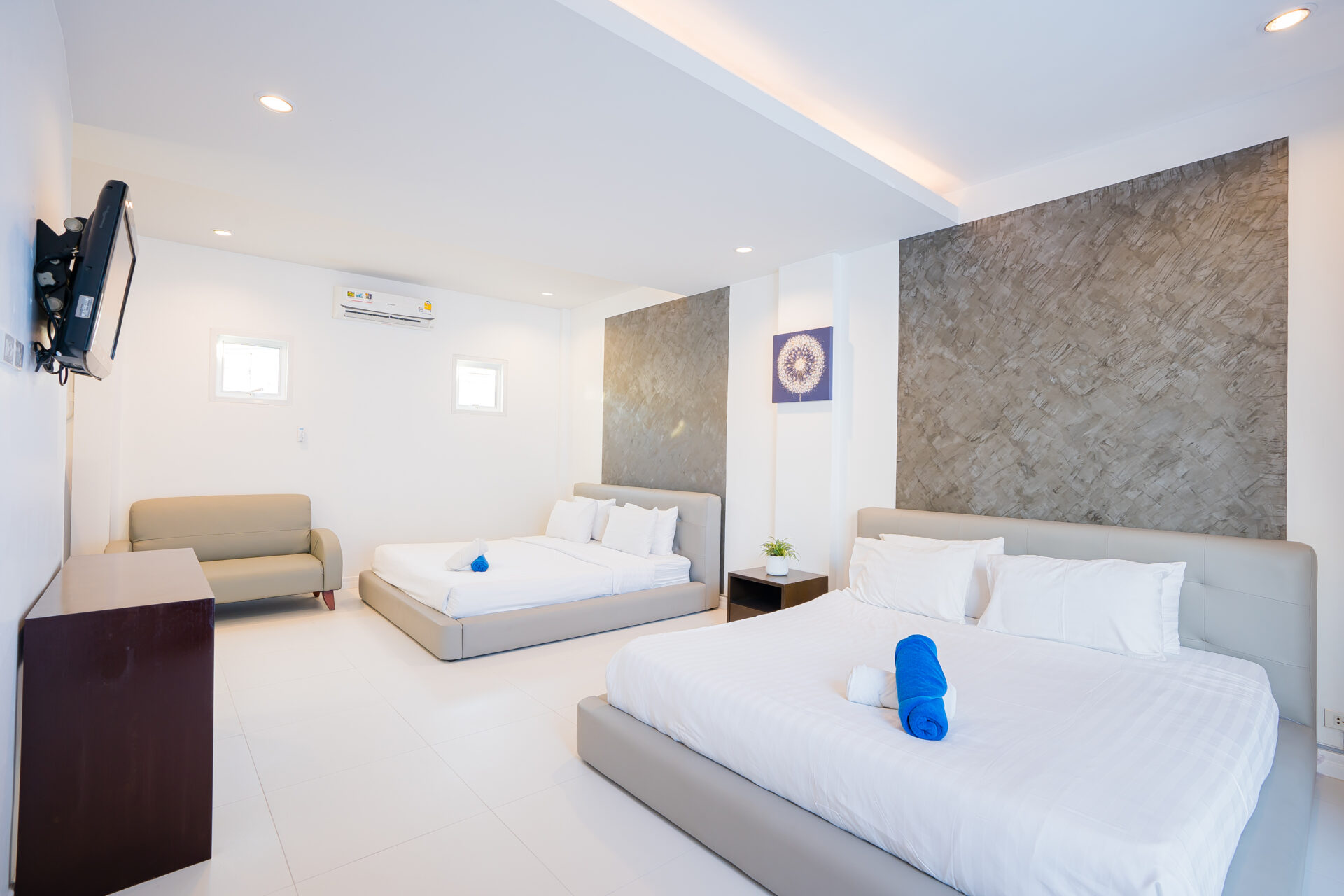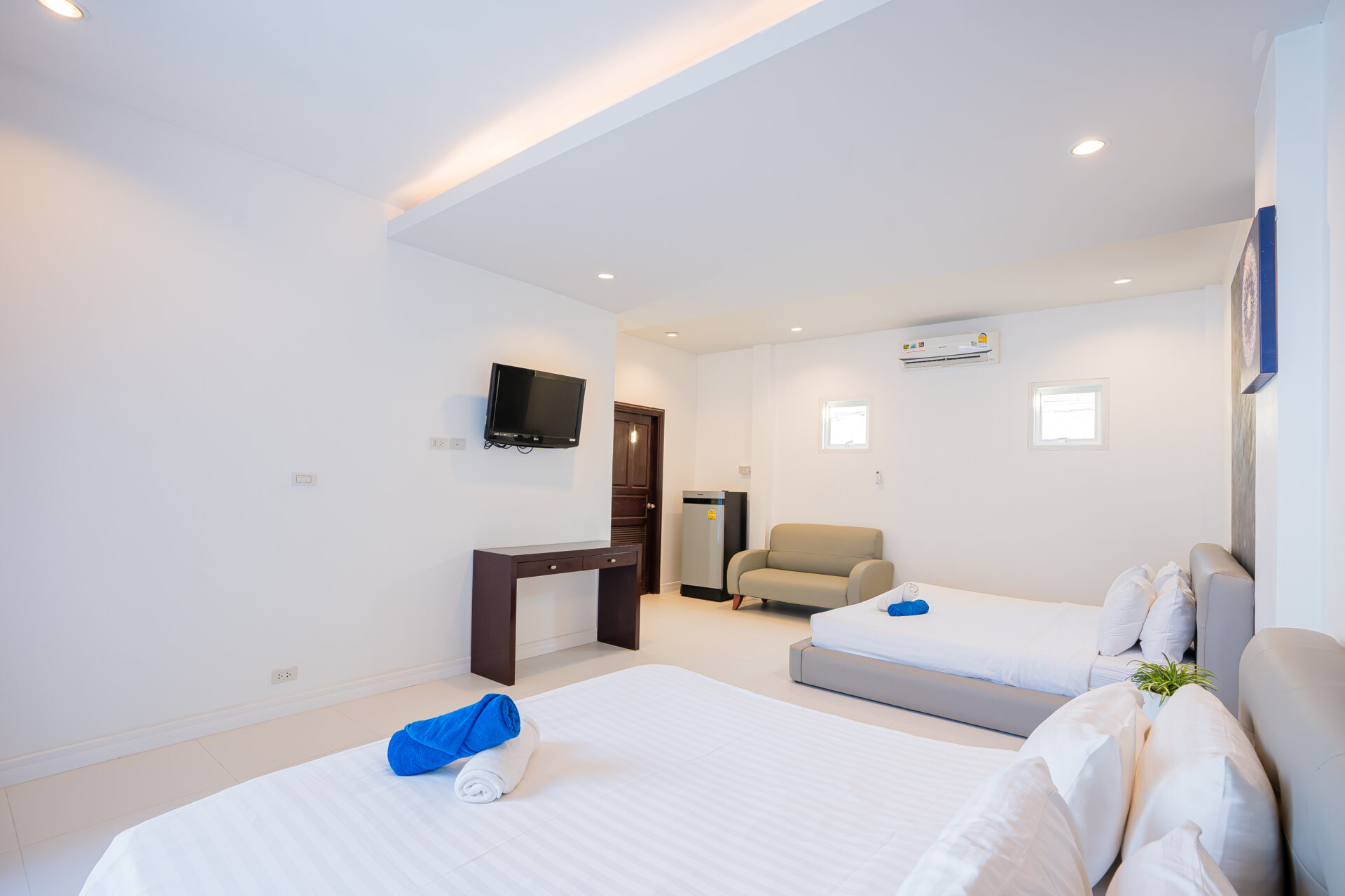 - ห้องนอน 4 : เตียง 5 ฟุต 1 เตียง + เตียง 3.5 ฟุต 2 เตียง (6 ท่าน)
