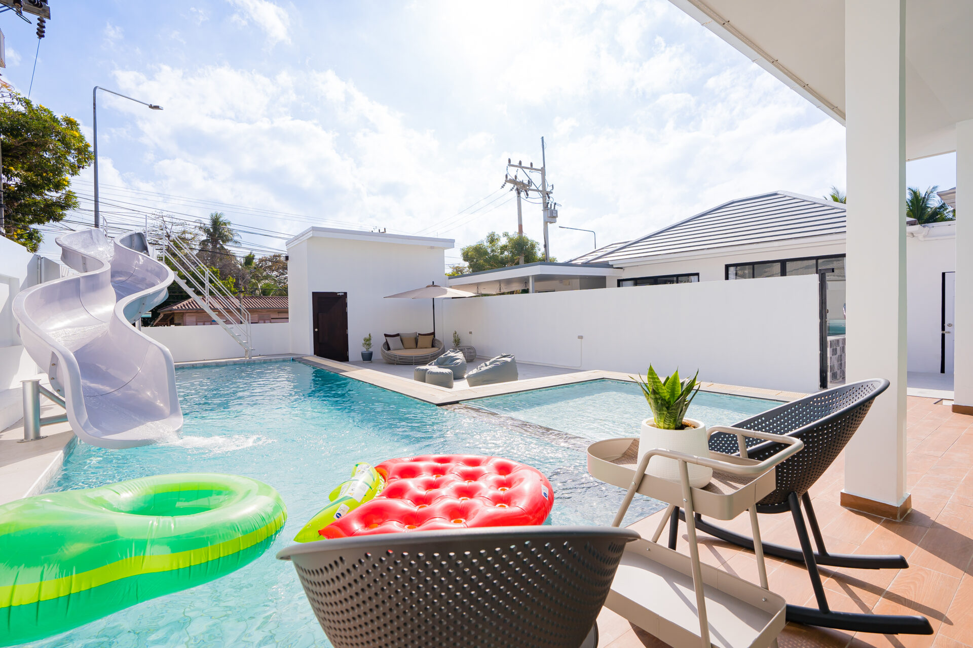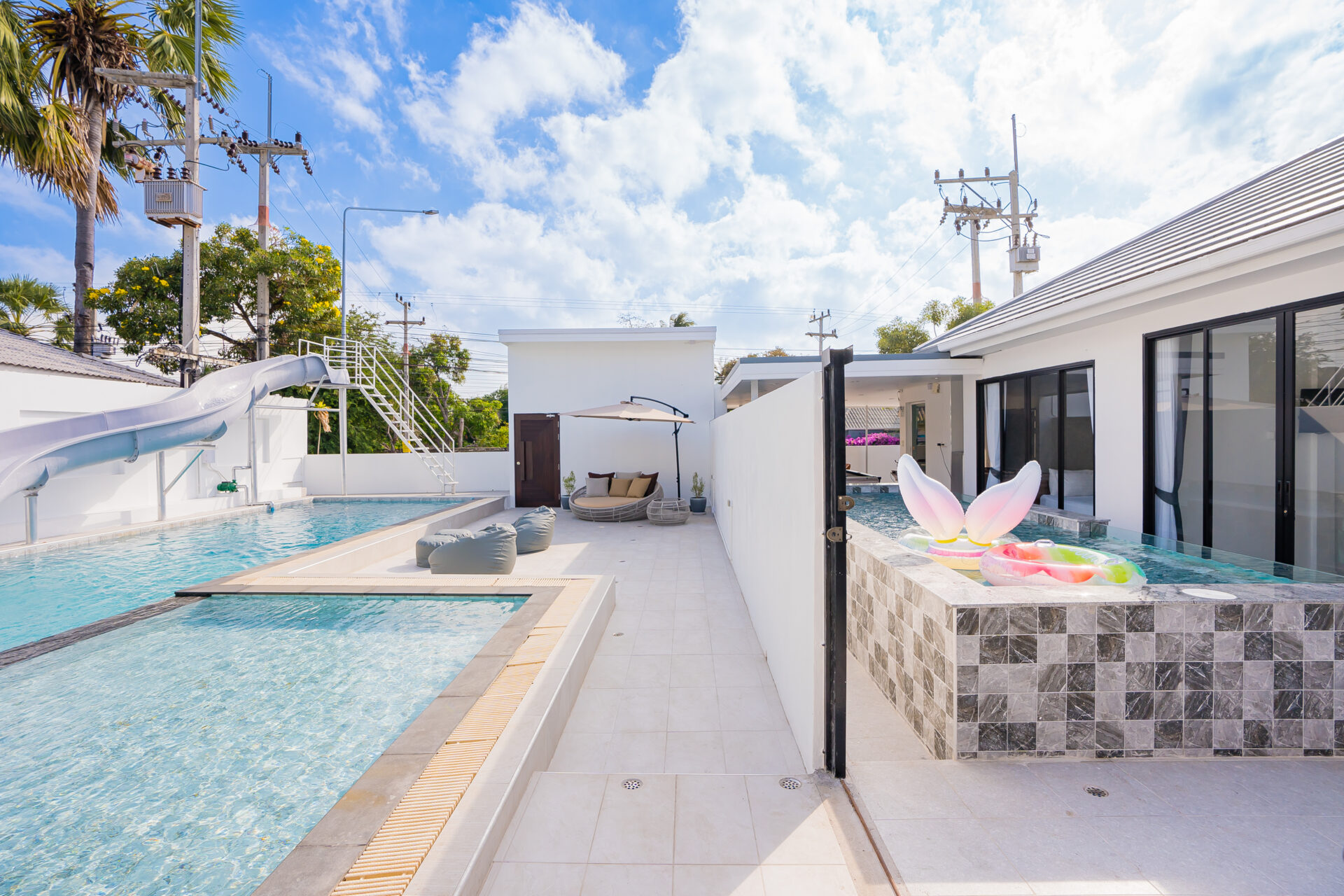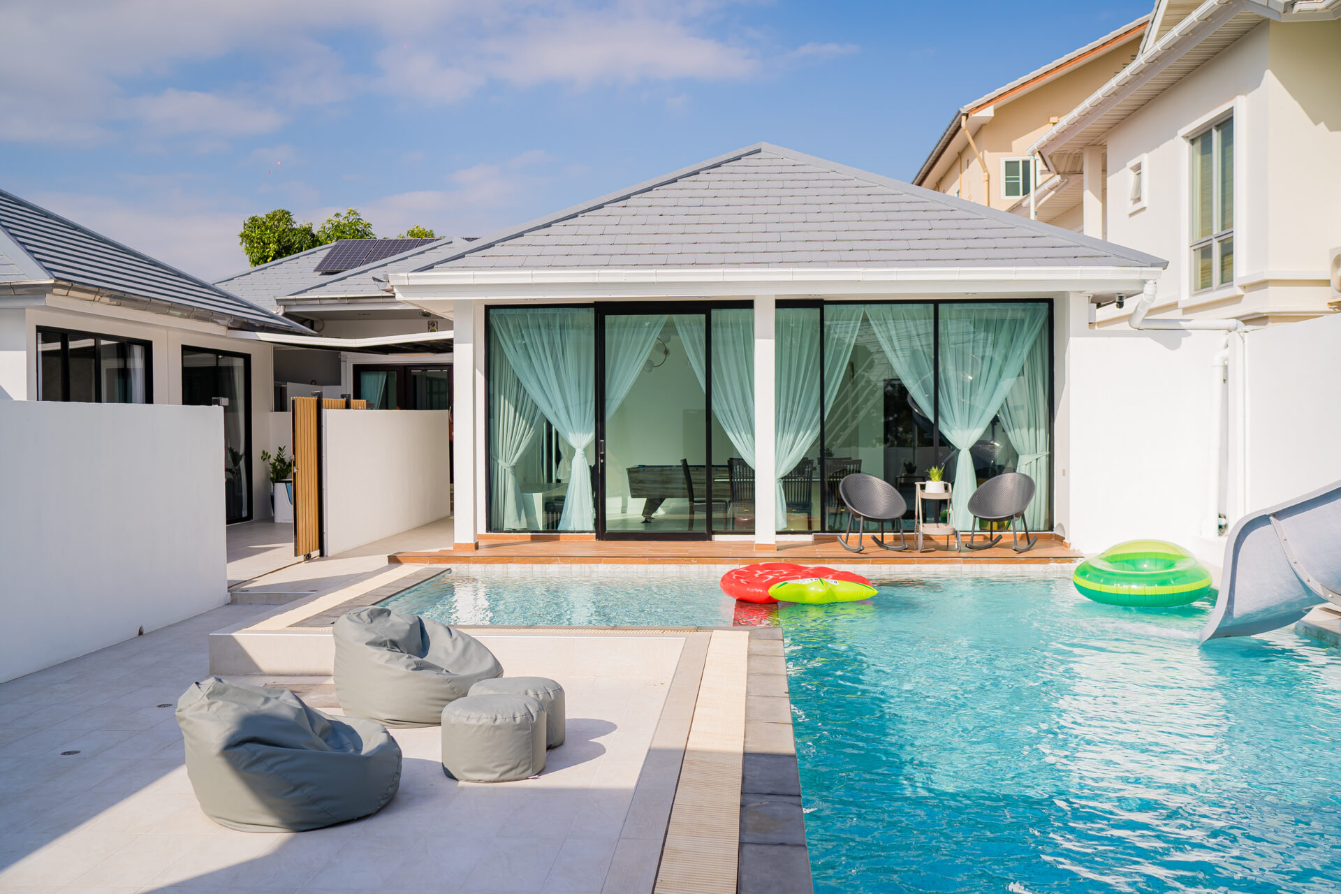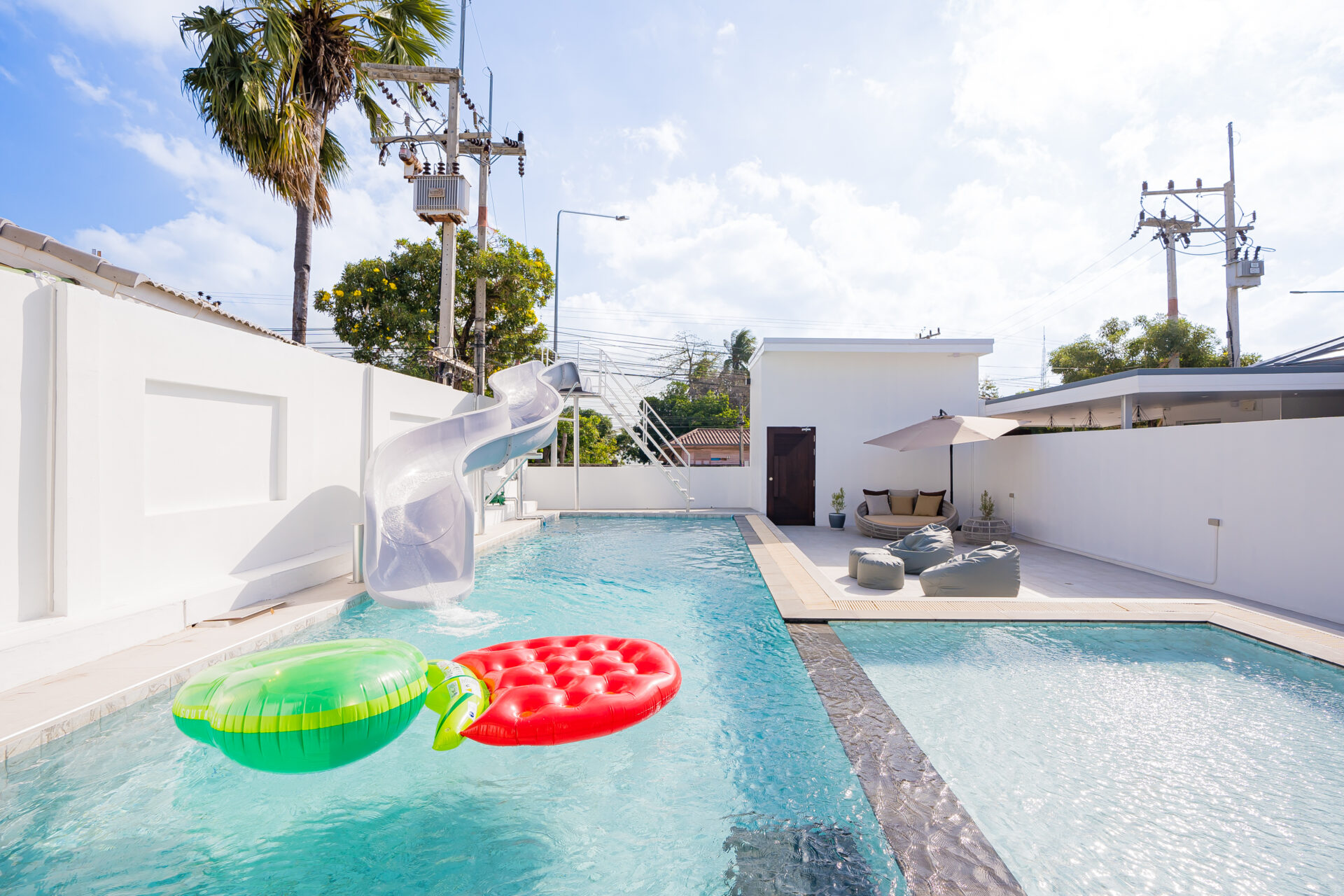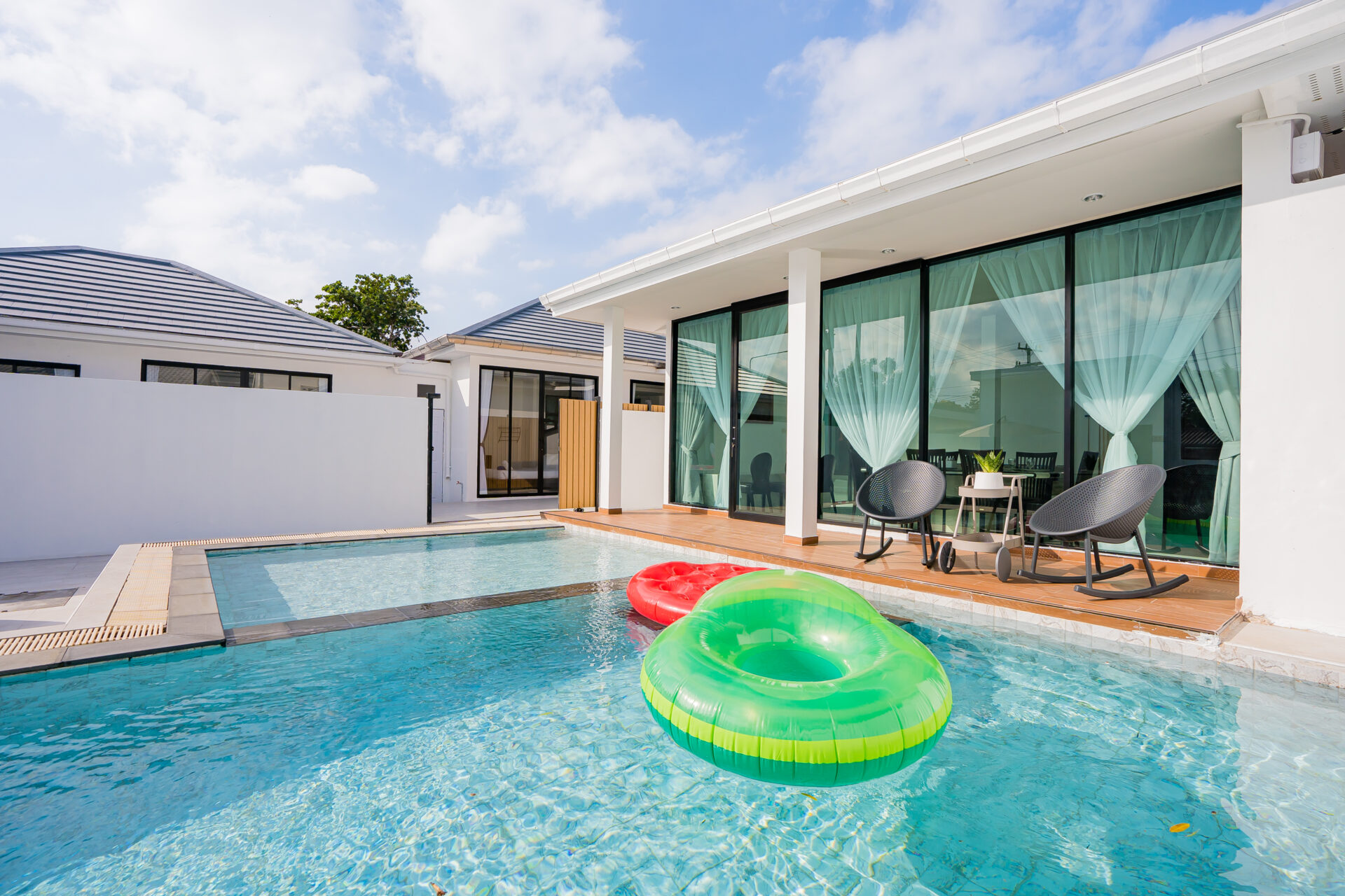 บ้านพักพูลวิลล่าหัวหินใกล้ทะเล บรรยากาศชิลล์สุดๆ เดินเพียง 200 เมตรถึงชายหาด ตกแต่งสไตล์มินิมอลโทนสีขาวสบายตา พร้อมมุมถ่ายรูปสวยๆ เหมาะสำหรับครอบครัวและกลุ่มเพื่อนที่อยากพักผ่อนในบรรยากาศส่วนตัว ใจกลางเมืองหัวหิน