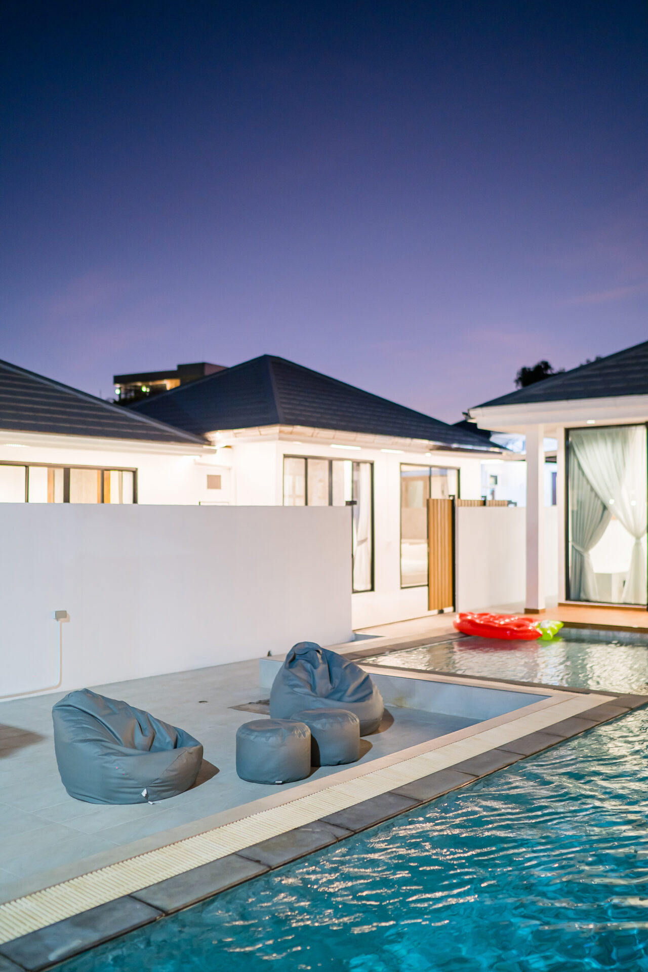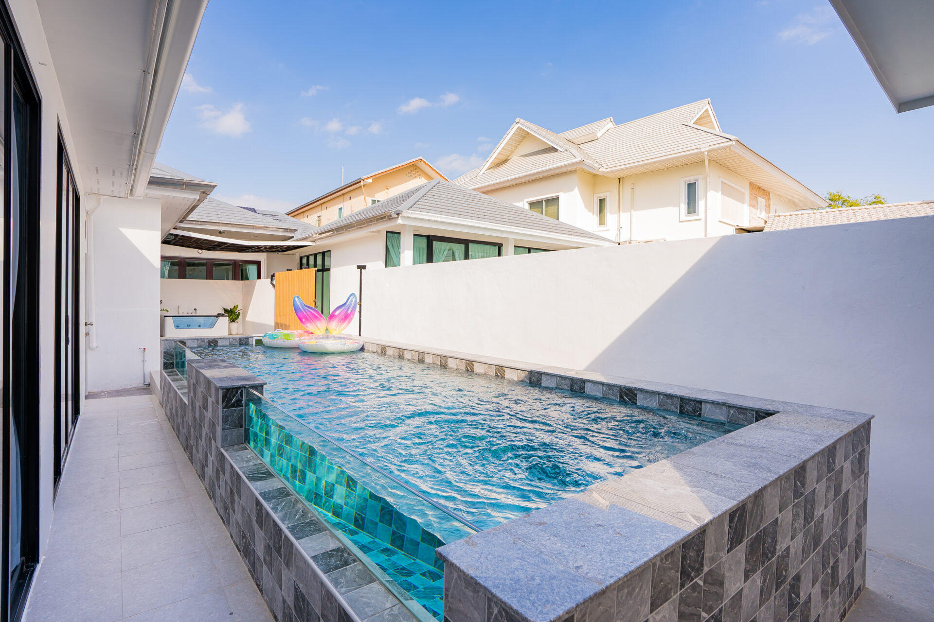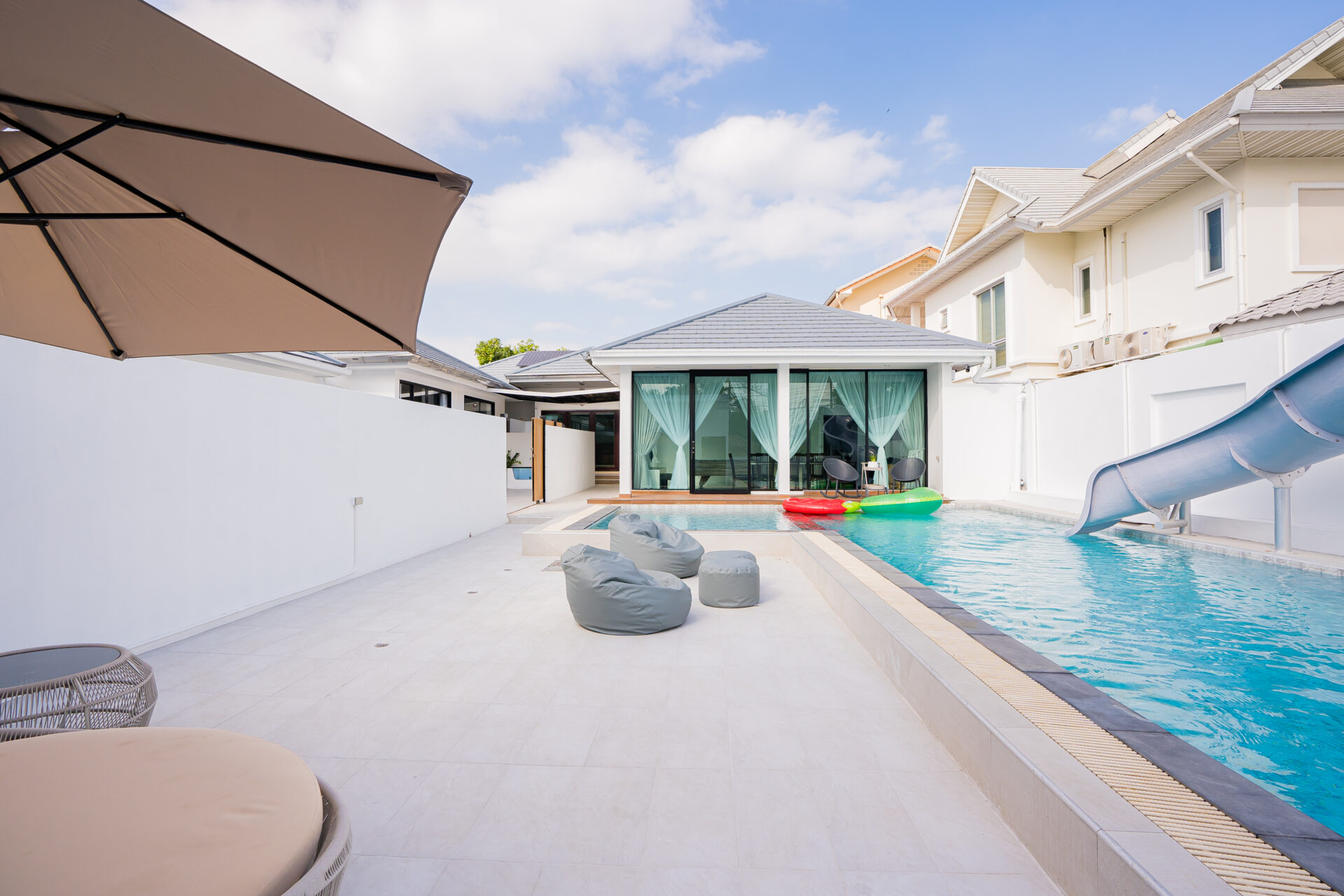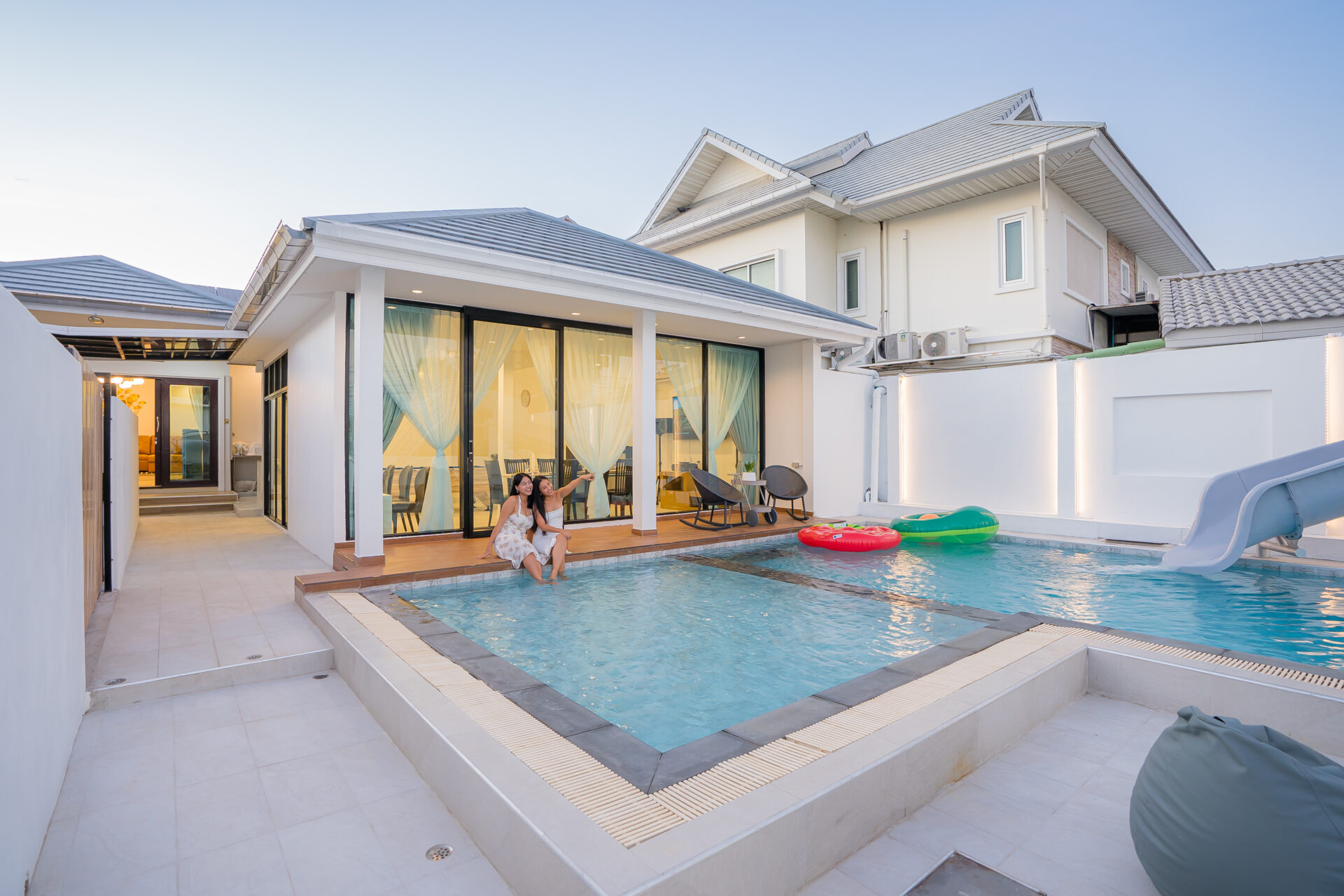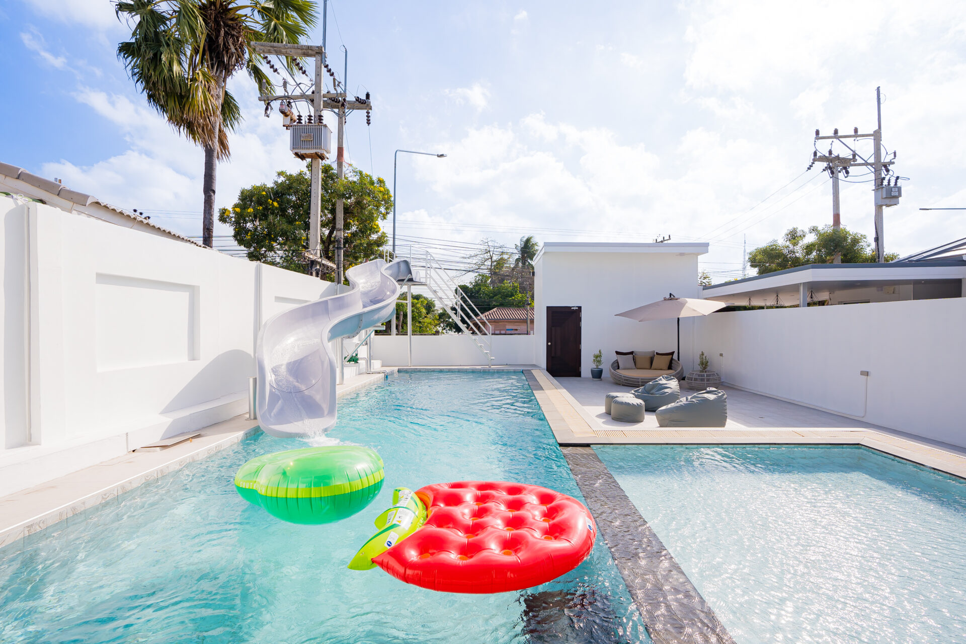 บ้านพักพูลวิลล่าหัวหินใกล้ทะเล บรรยากาศชิลล์สุดๆ เดินเพียง 200 เมตรถึงชายหาด ตกแต่งสไตล์มินิมอลโทนสีขาวสบายตา พร้อมมุมถ่ายรูปสวยๆ เหมาะสำหรับครอบครัวและกลุ่มเพื่อนที่อยากพักผ่อนในบรรยากาศส่วนตัว ใจกลางเมืองหัวหิน