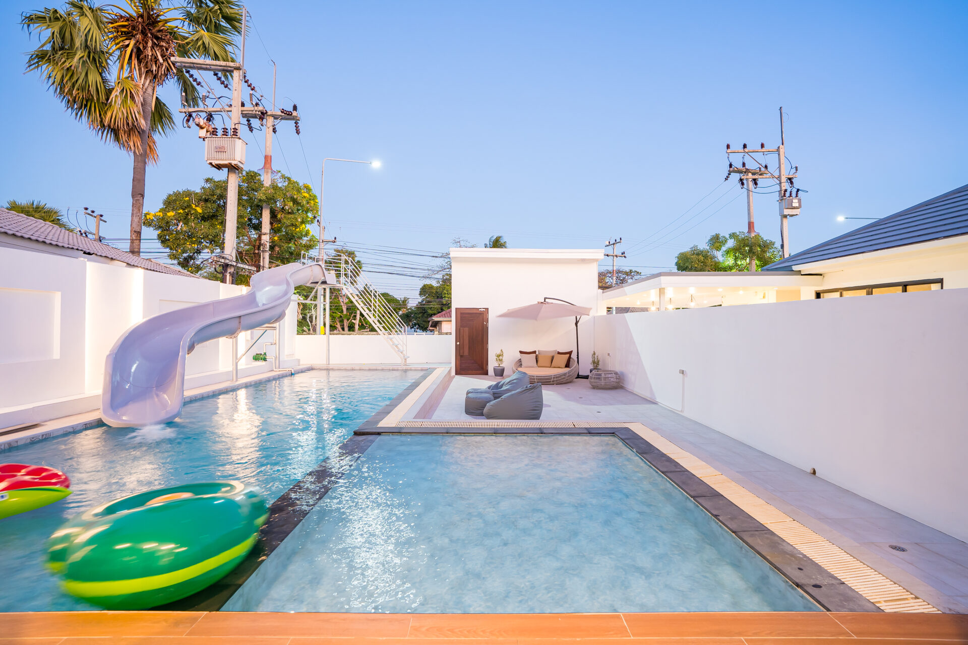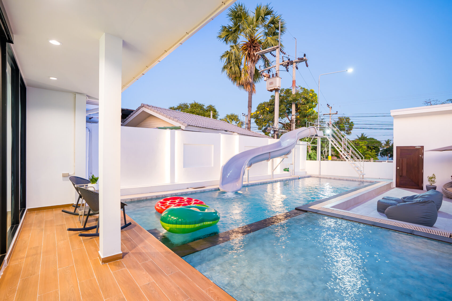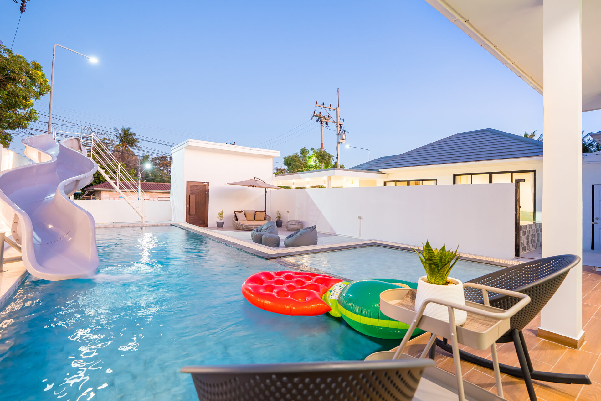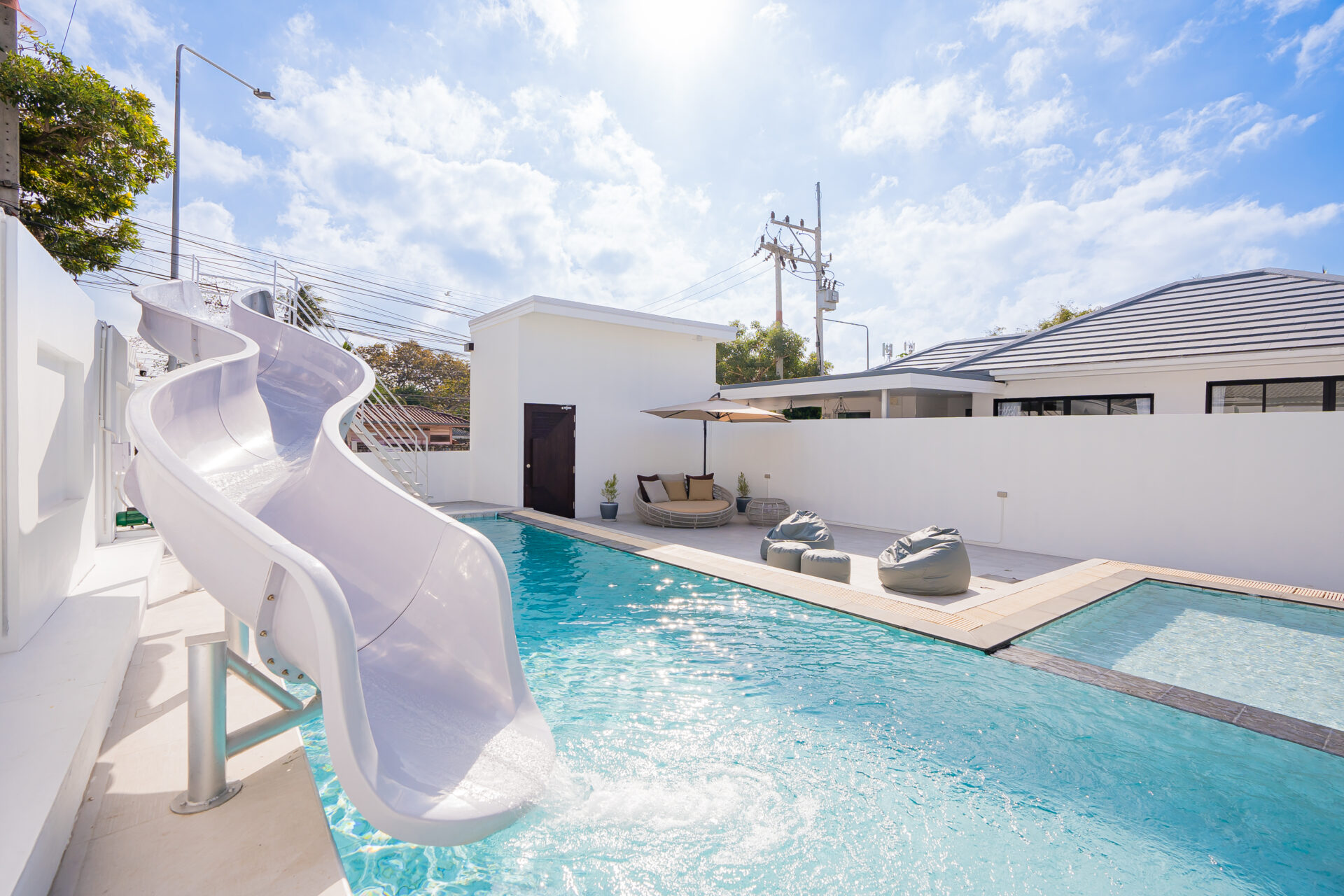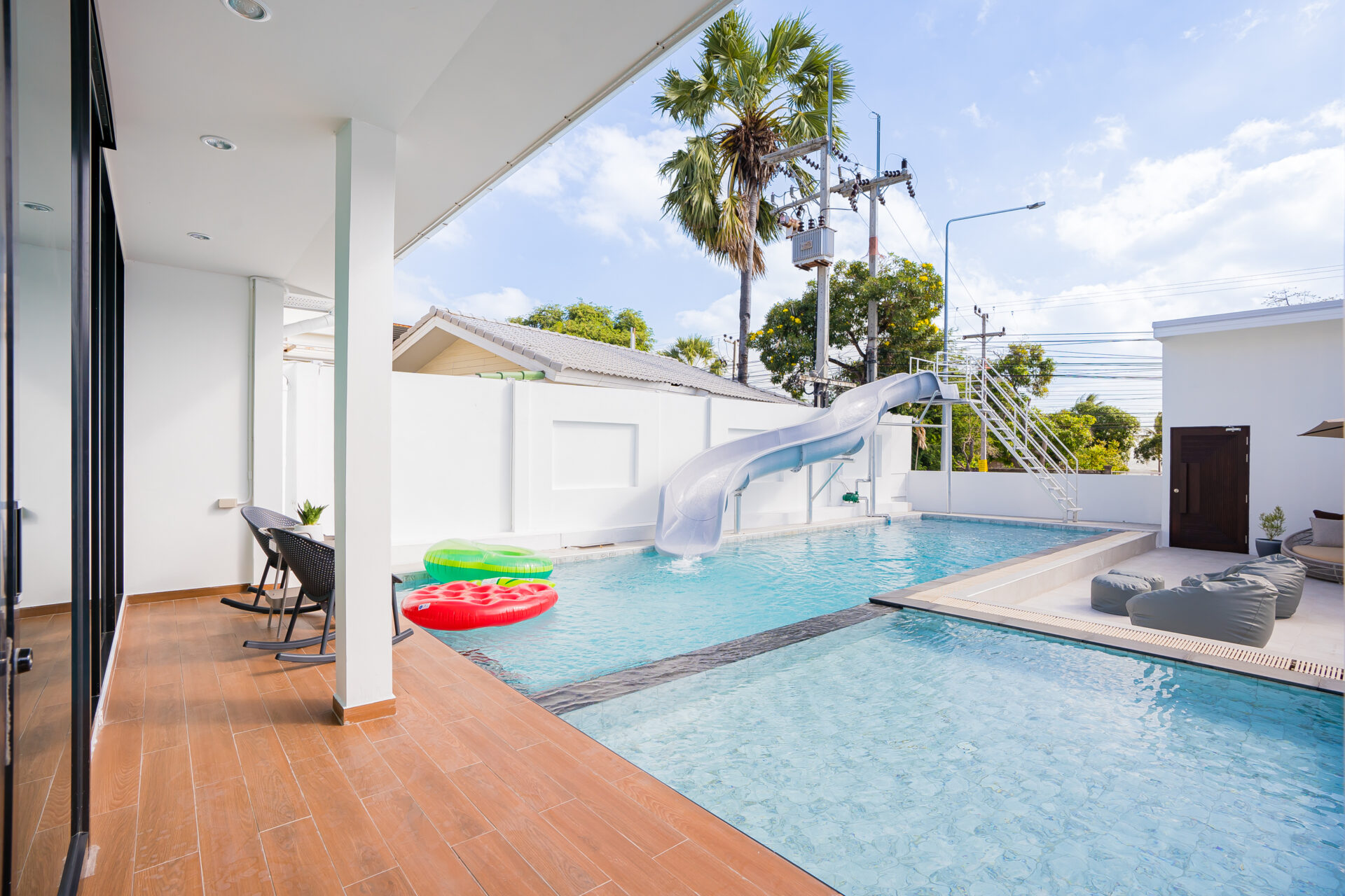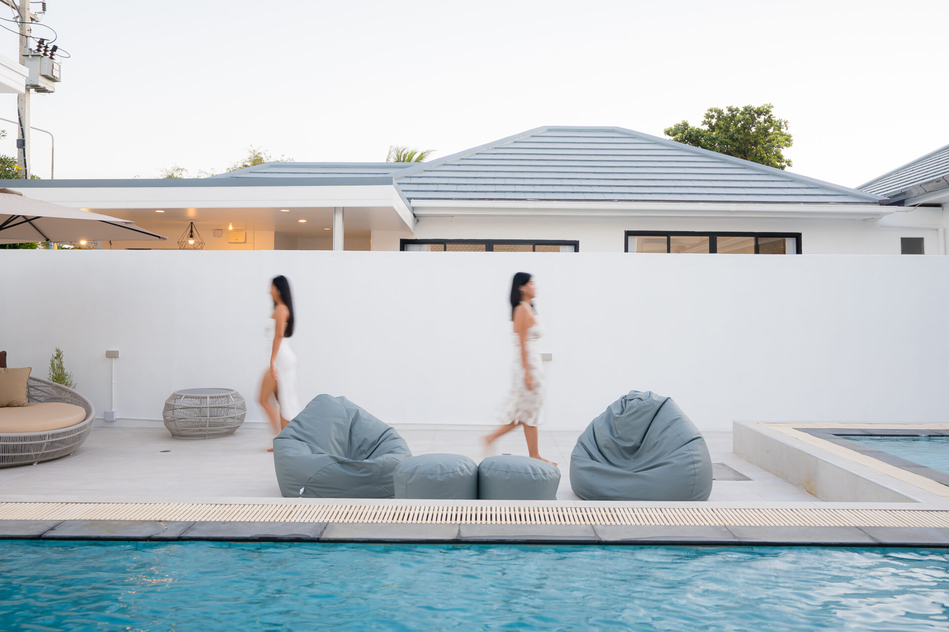 บ้านพักพูลวิลล่าหัวหินใกล้ทะเล บรรยากาศชิลล์สุดๆ เดินเพียง 200 เมตรถึงชายหาด ตกแต่งสไตล์มินิมอลโทนสีขาวสบายตา พร้อมมุมถ่ายรูปสวยๆ เหมาะสำหรับครอบครัวและกลุ่มเพื่อนที่อยากพักผ่อนในบรรยากาศส่วนตัว ใจกลางเมืองหัวหิน