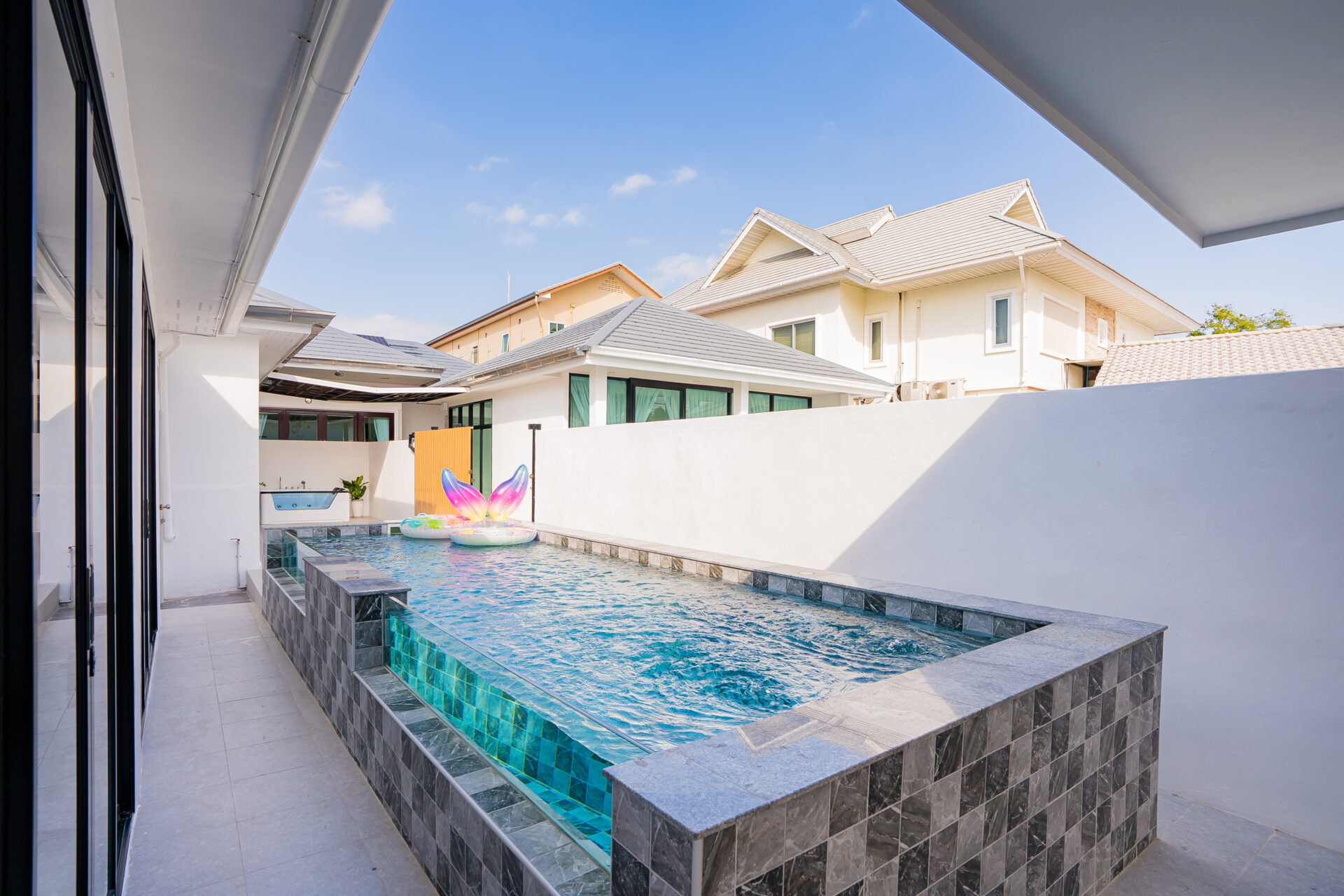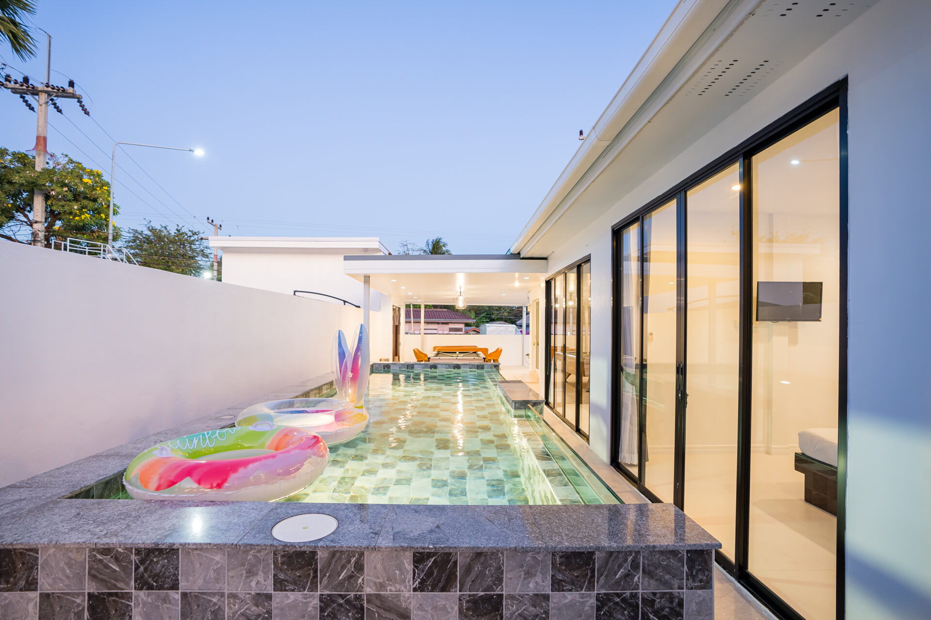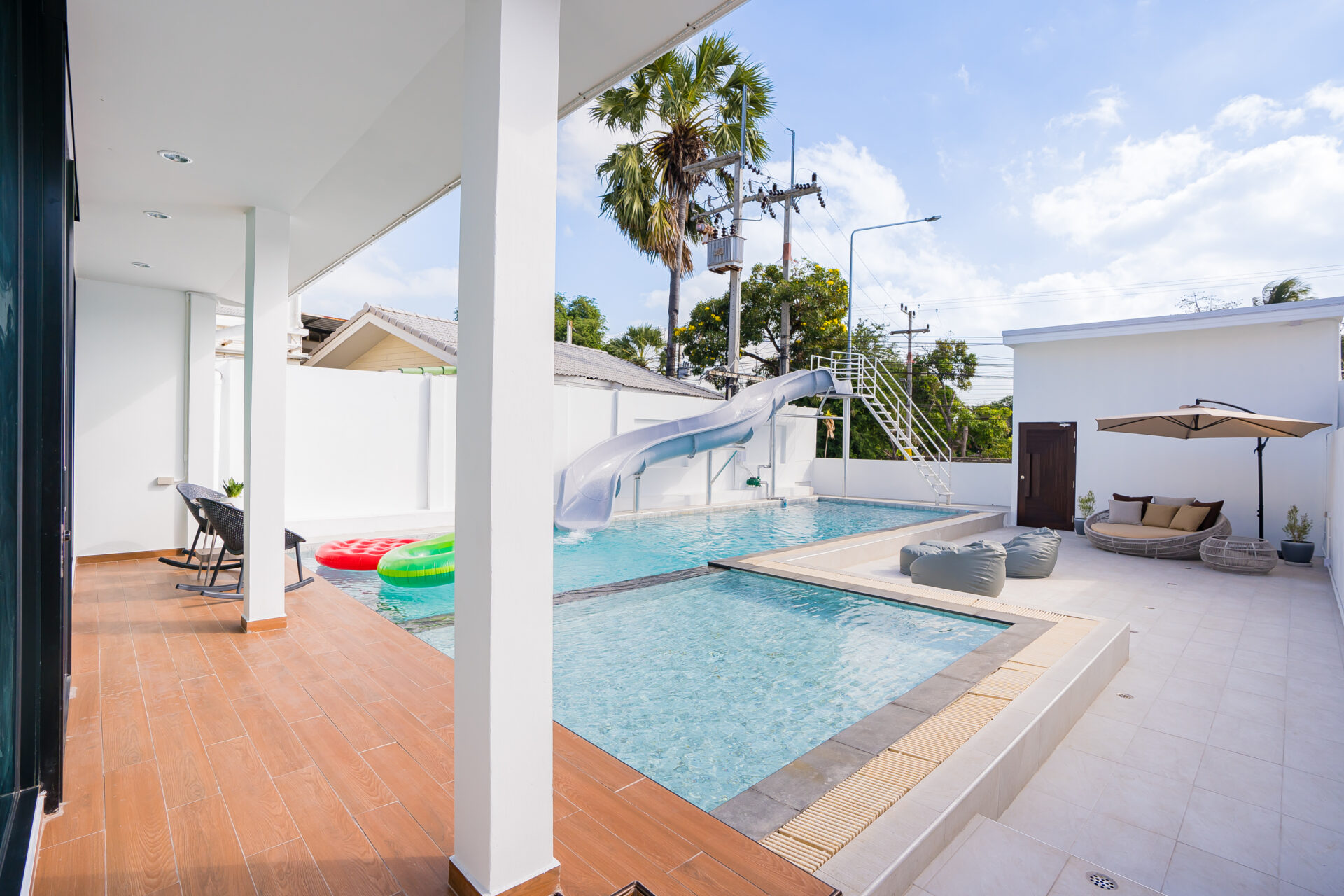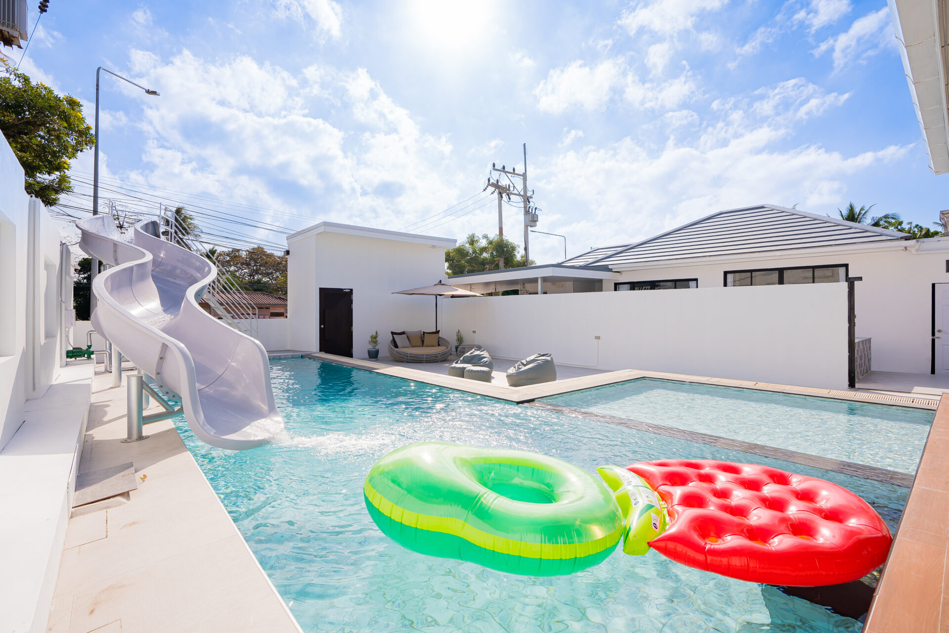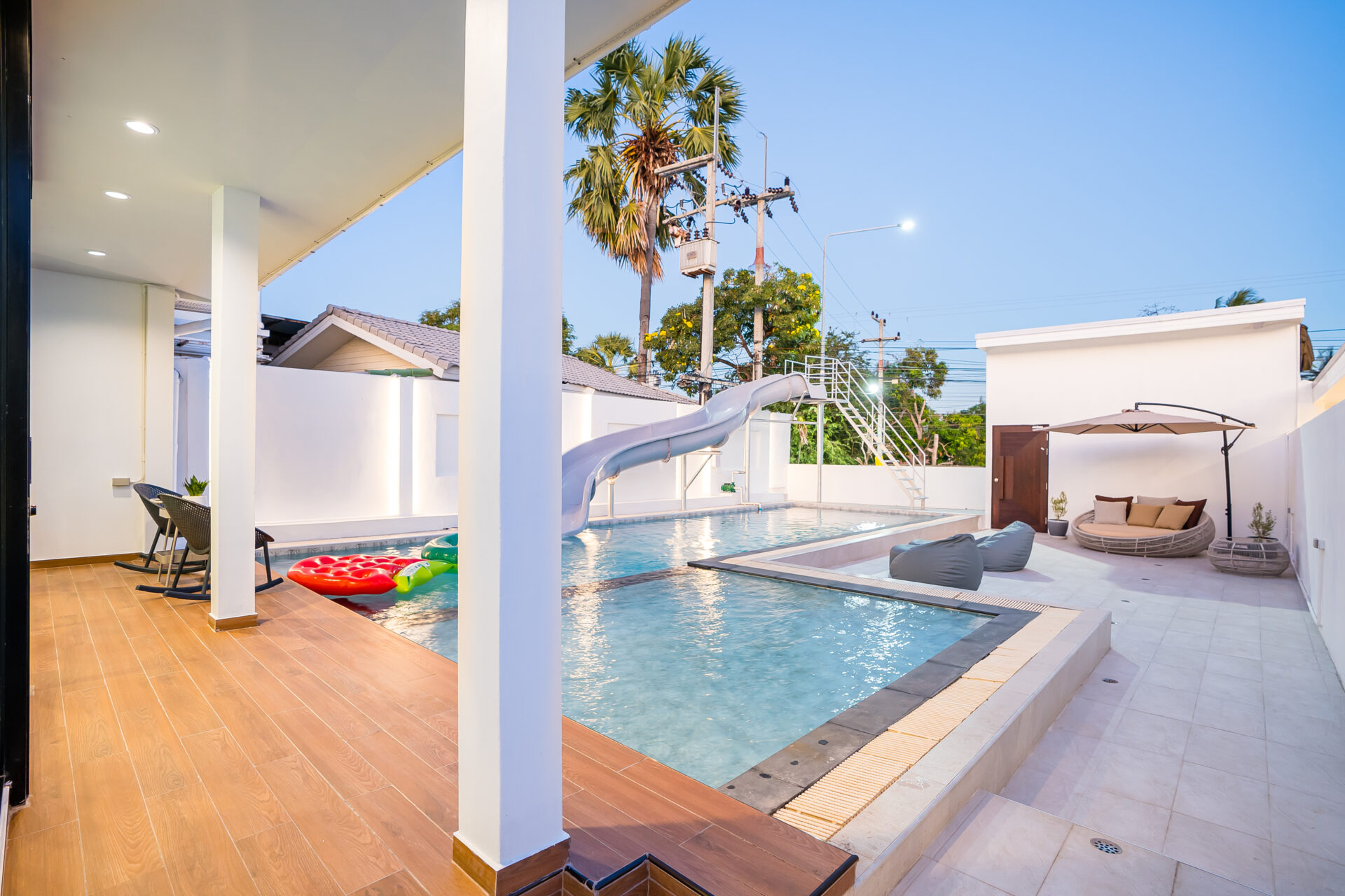 บ้านพักพูลวิลล่าหัวหินใกล้ทะเล บรรยากาศชิลล์สุดๆ เดินเพียง 200 เมตรถึงชายหาด ตกแต่งสไตล์มินิมอลโทนสีขาวสบายตา พร้อมมุมถ่ายรูปสวยๆ เหมาะสำหรับครอบครัวและกลุ่มเพื่อนที่อยากพักผ่อนในบรรยากาศส่วนตัว ใจกลางเมืองหัวหิน