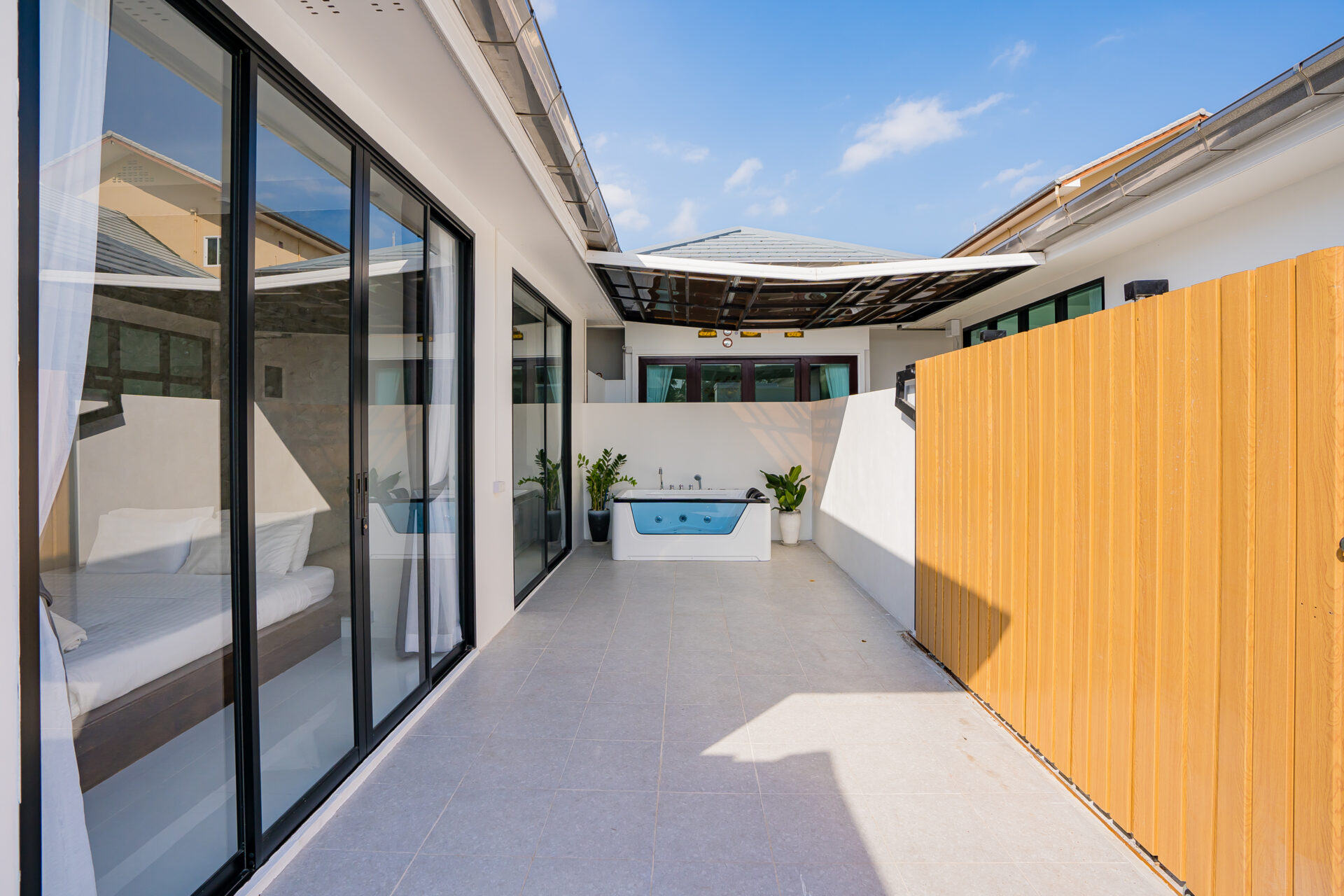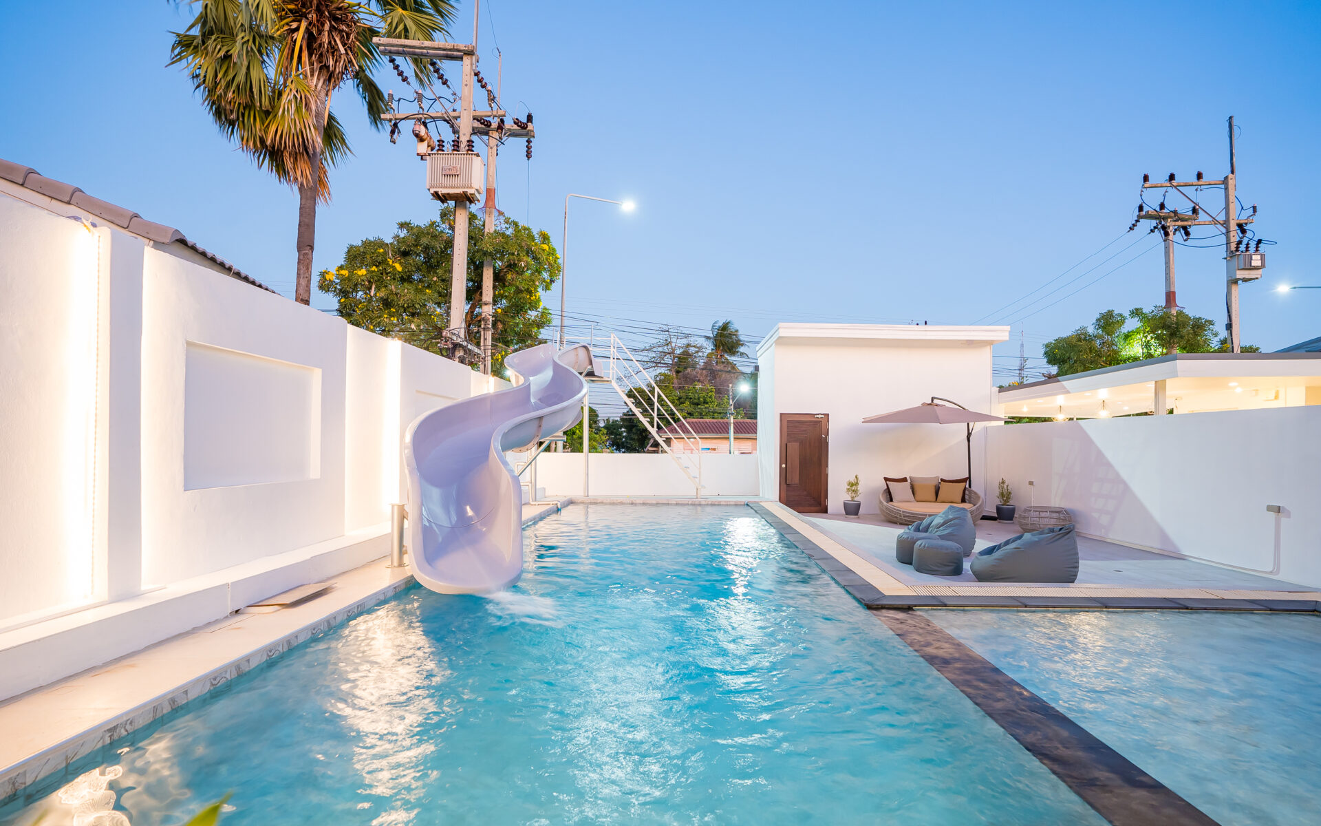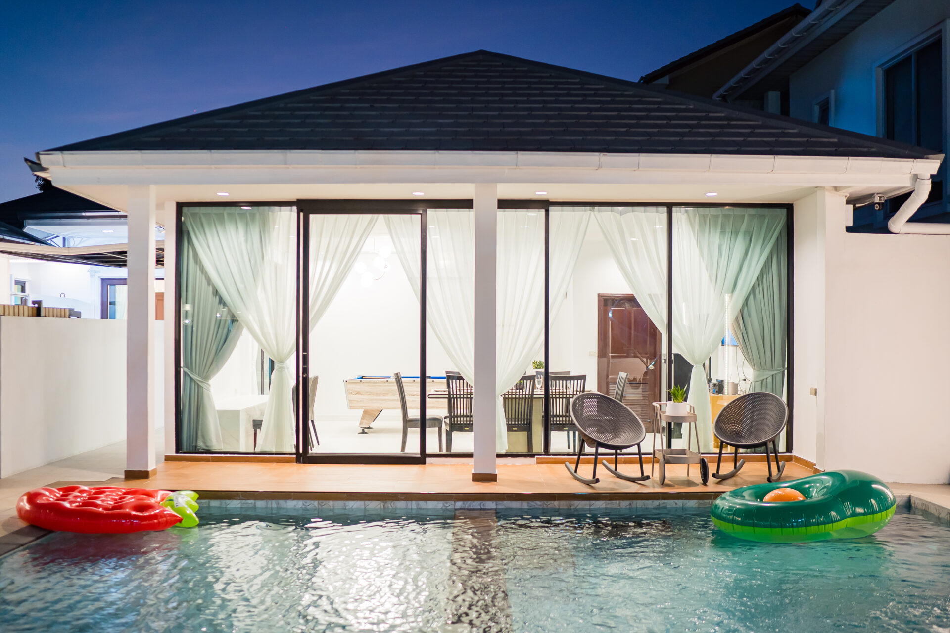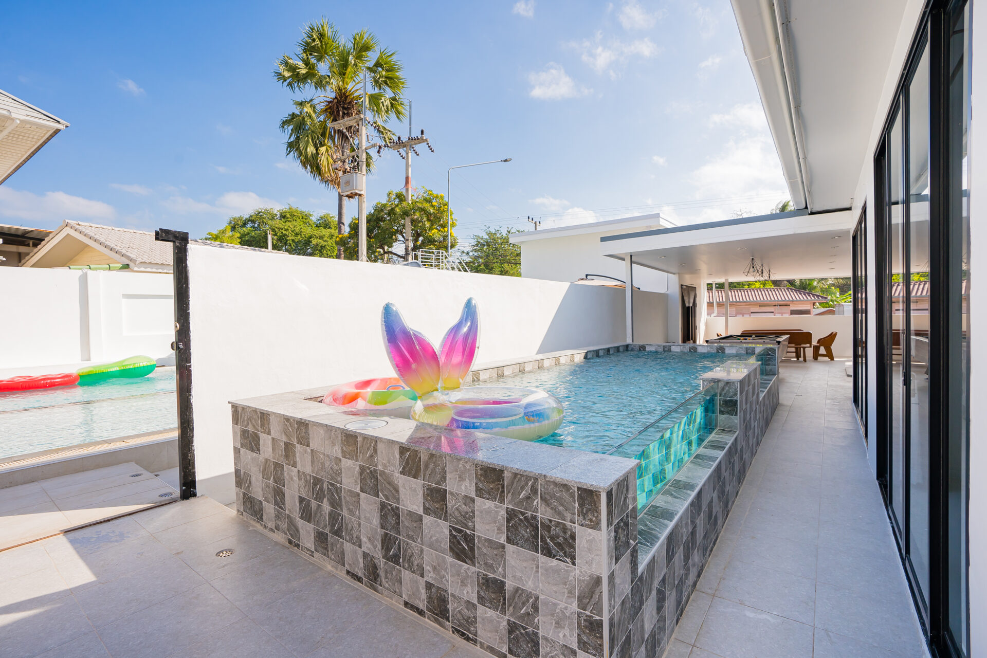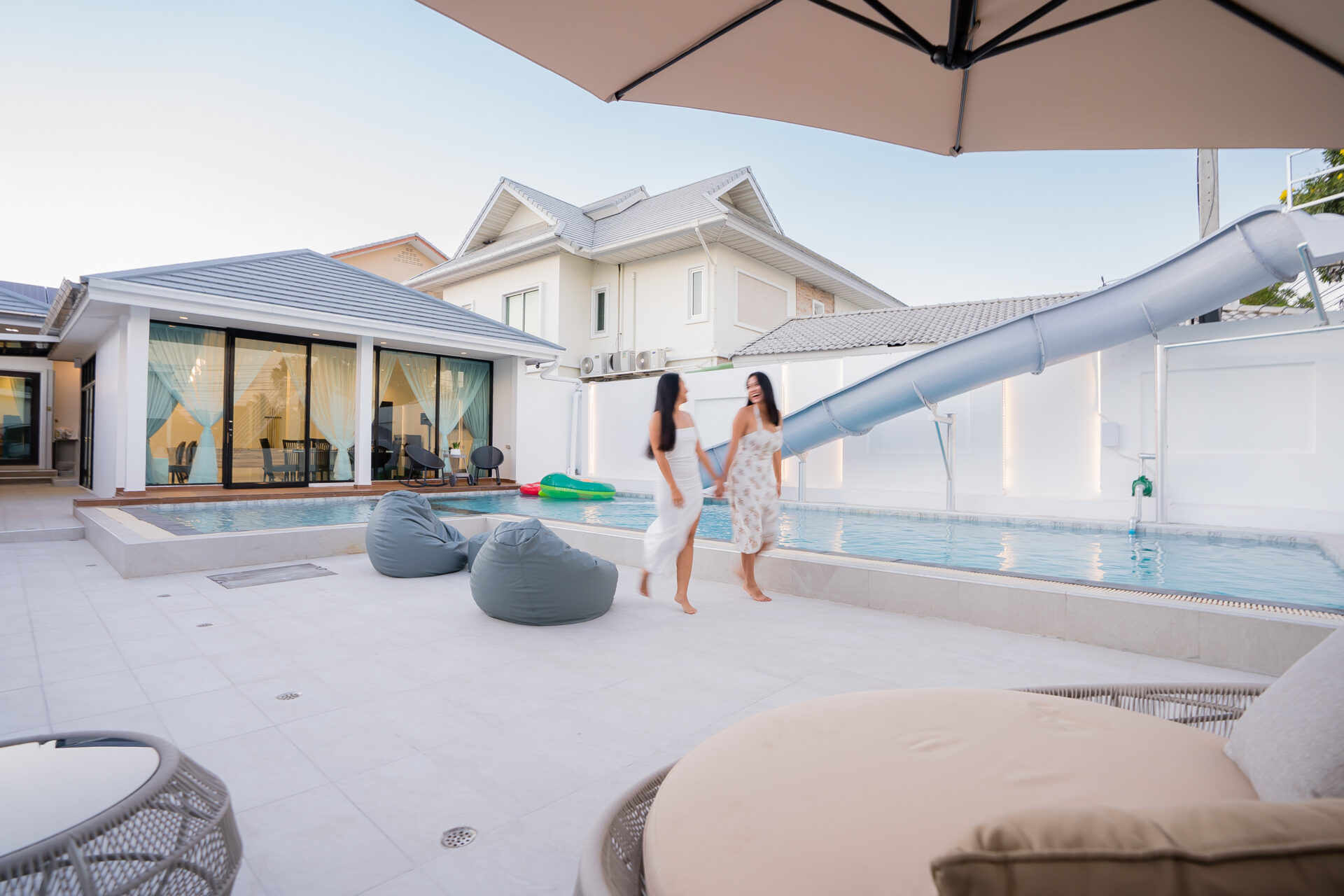 บ้านพักพูลวิลล่าหัวหินใกล้ทะเล บรรยากาศชิลล์สุดๆ เดินเพียง 200 เมตรถึงชายหาด ตกแต่งสไตล์มินิมอลโทนสีขาวสบายตา พร้อมมุมถ่ายรูปสวยๆ เหมาะสำหรับครอบครัวและกลุ่มเพื่อนที่อยากพักผ่อนในบรรยากาศส่วนตัว ใจกลางเมืองหัวหิน
