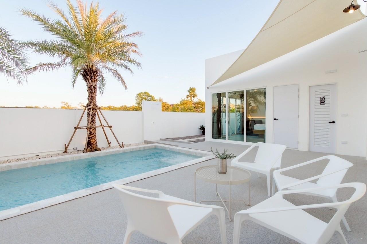 บ้านพักพูลวิลล่าชะอำ สไตล์ Minimal Cafe เรียบง่ายแต่โดดเด่น ใกล้ทะเลเพียง 300 เมตร!