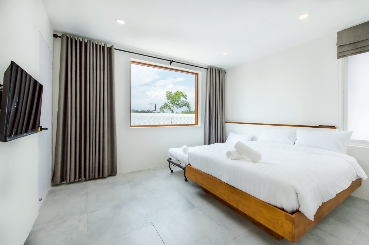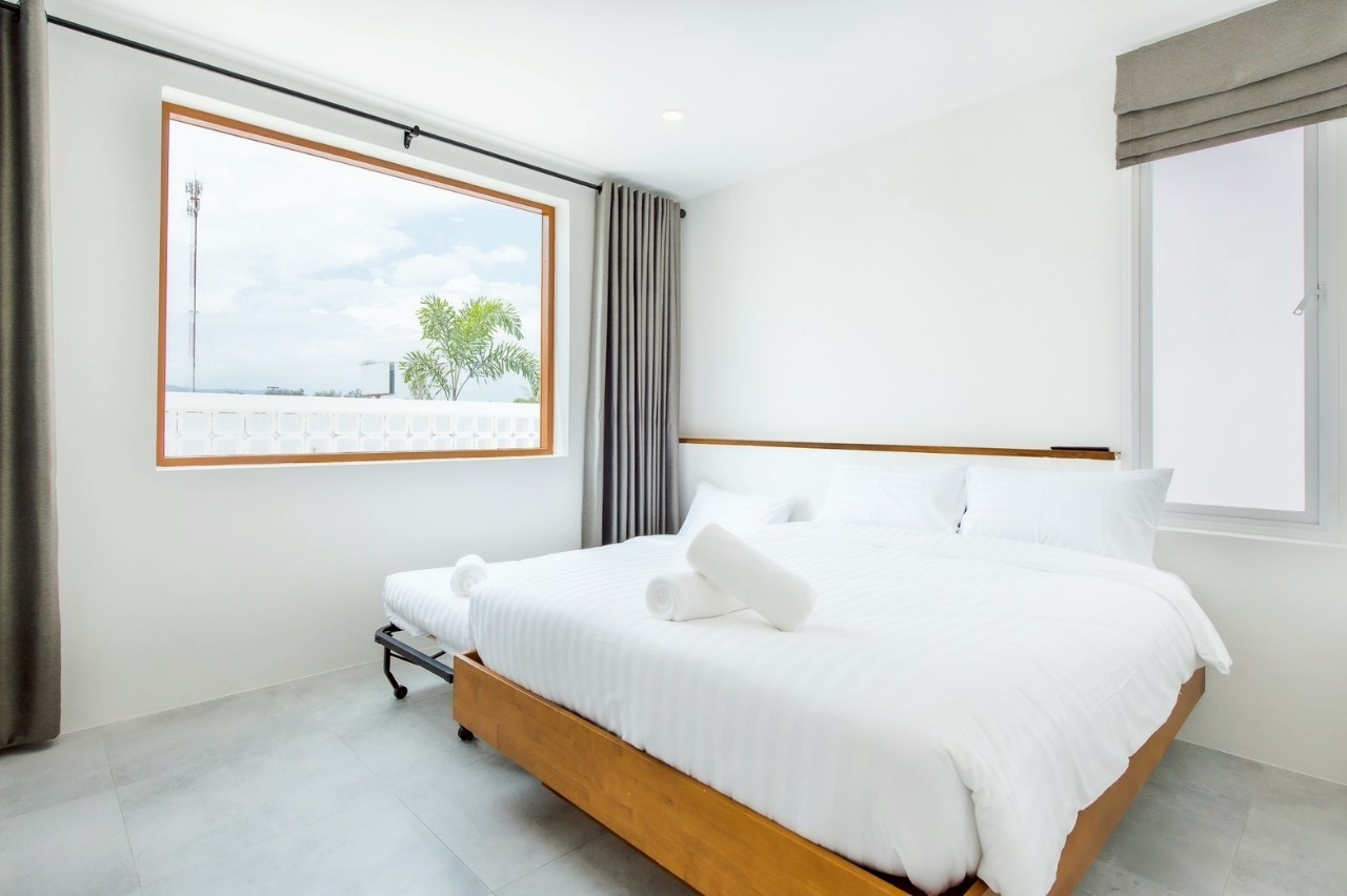 - ห้องนอน 2: เตียงใหญ่ 1 เตียงเล็ก (โซฟาเบด) วิวสระว่ายน้ำ