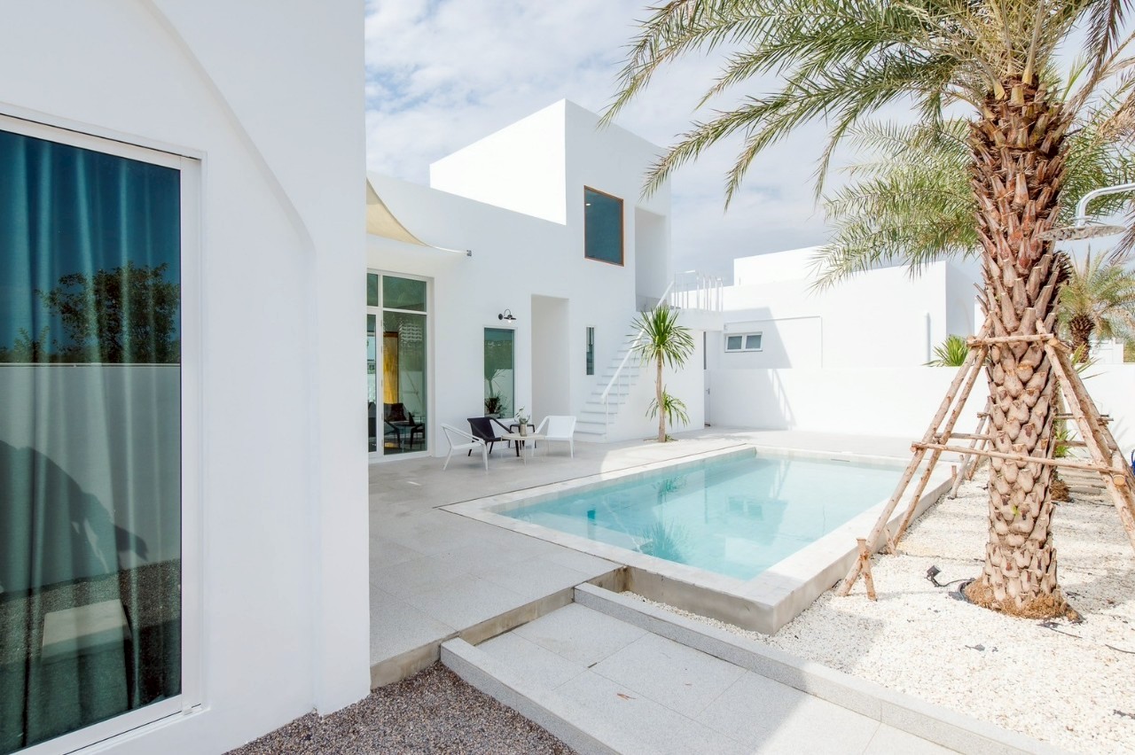บ้านพักพูลวิลล่าชะอำ สไตล์ Minimal Cafe เรียบง่าย แต่มีเอกลักษณ์โดดเด่น ด้วยดีไซน์เรขาคณิตสุดเท่ ห่างจากชายหาดชะอำเพียง 300 เมตร