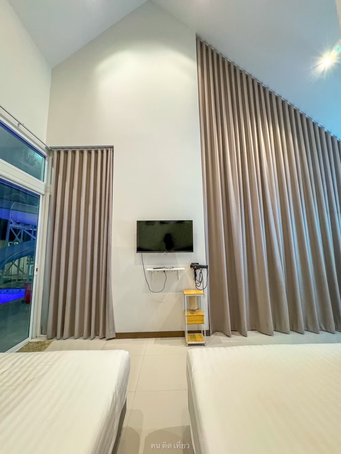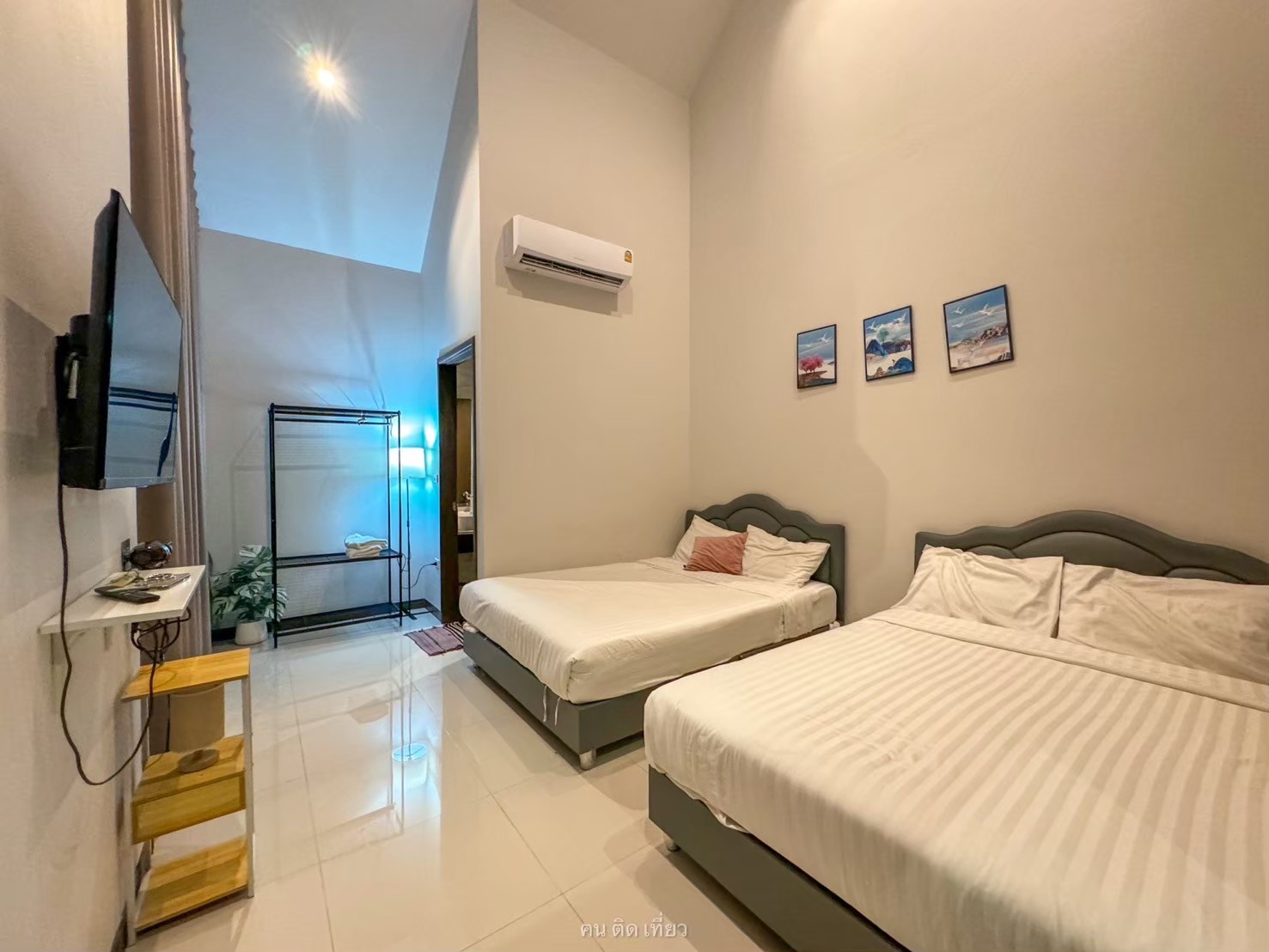 - ห้องที่ 2: เตียง 5 ฟุต + 3.5 ฟุต (พักได้ 3 ท่าน)