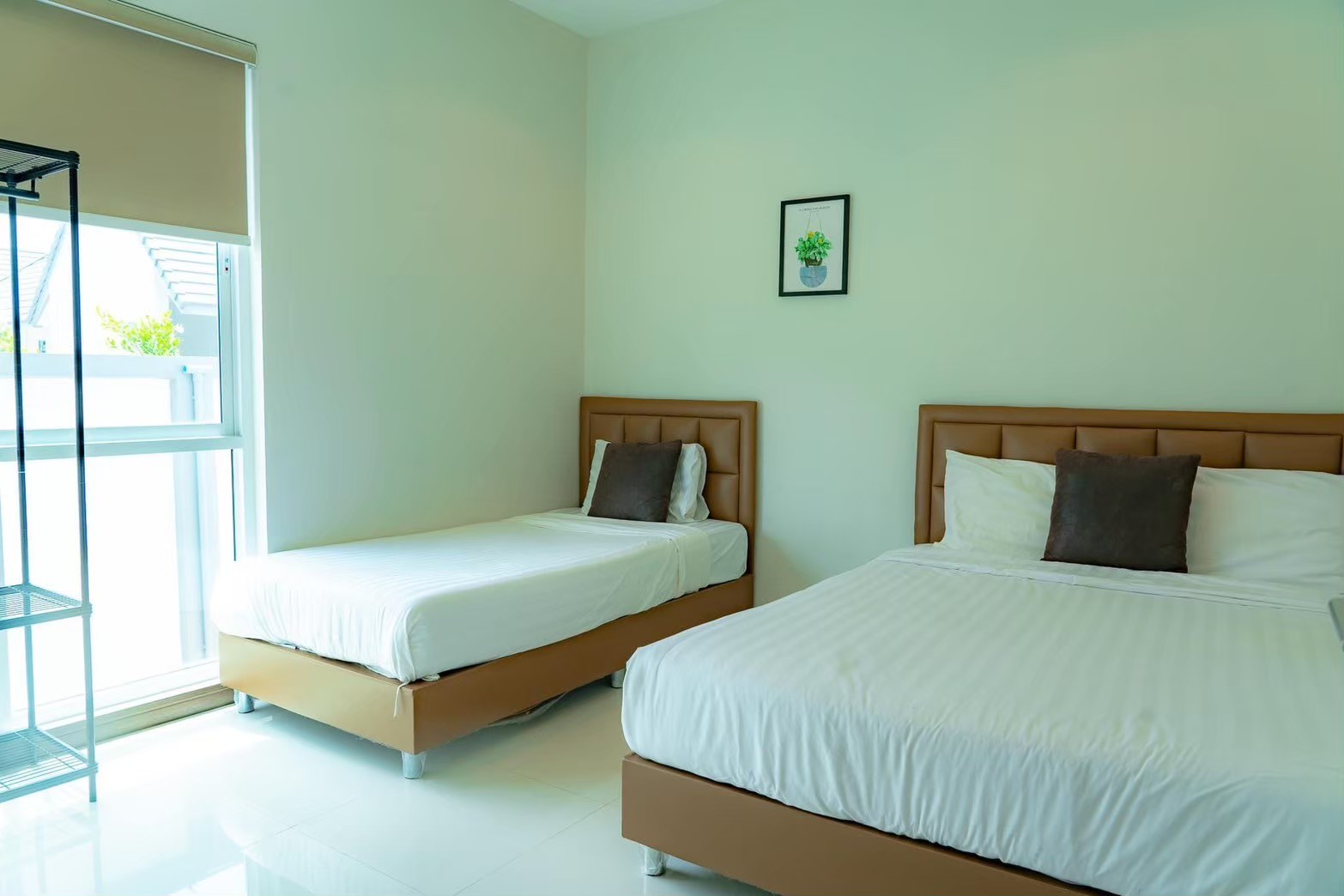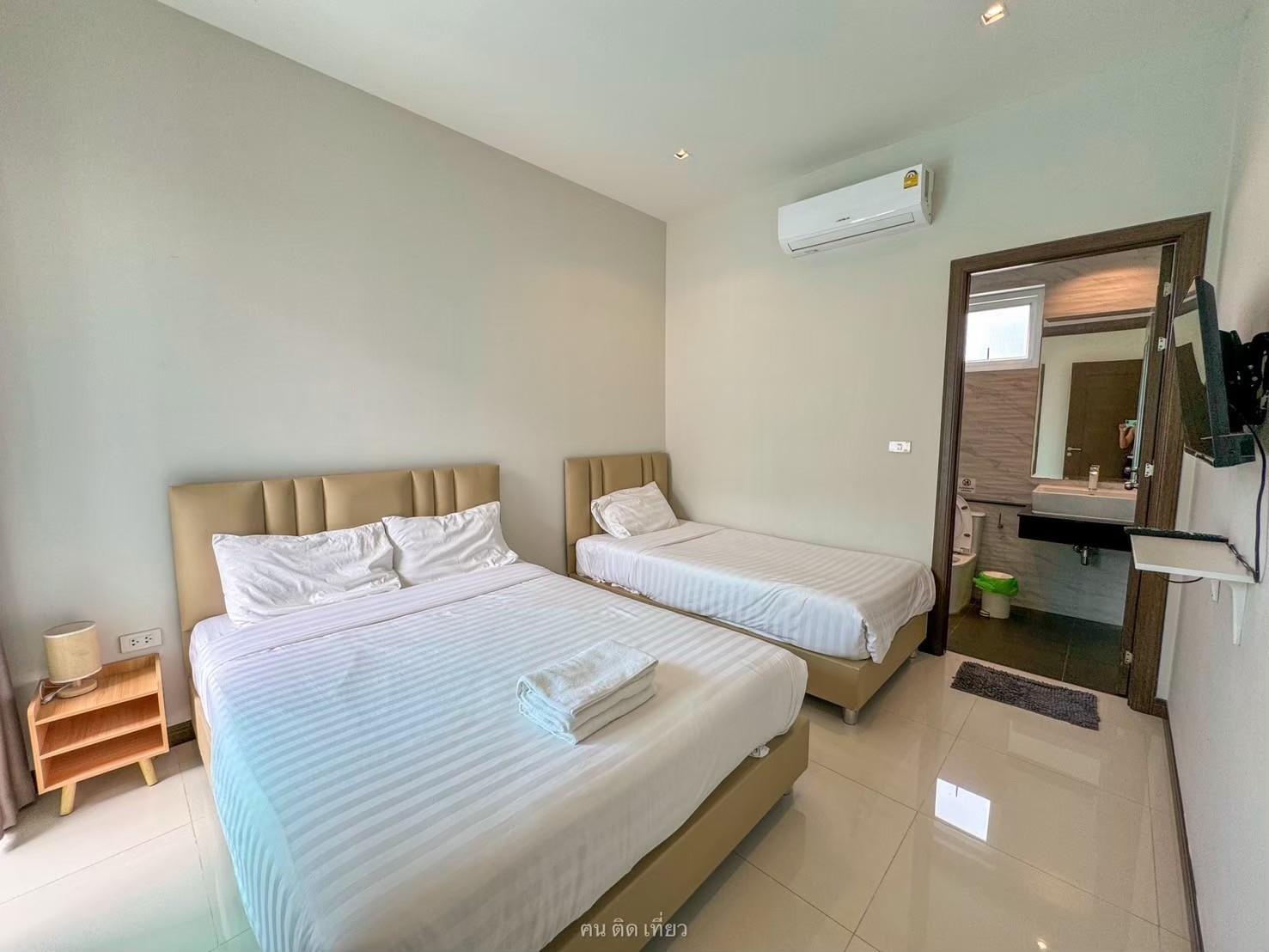 - ห้องที่ 3: เตียง 5 ฟุต + 3.5 ฟุต + โซฟาเบด (พักได้ 3 ท่าน)