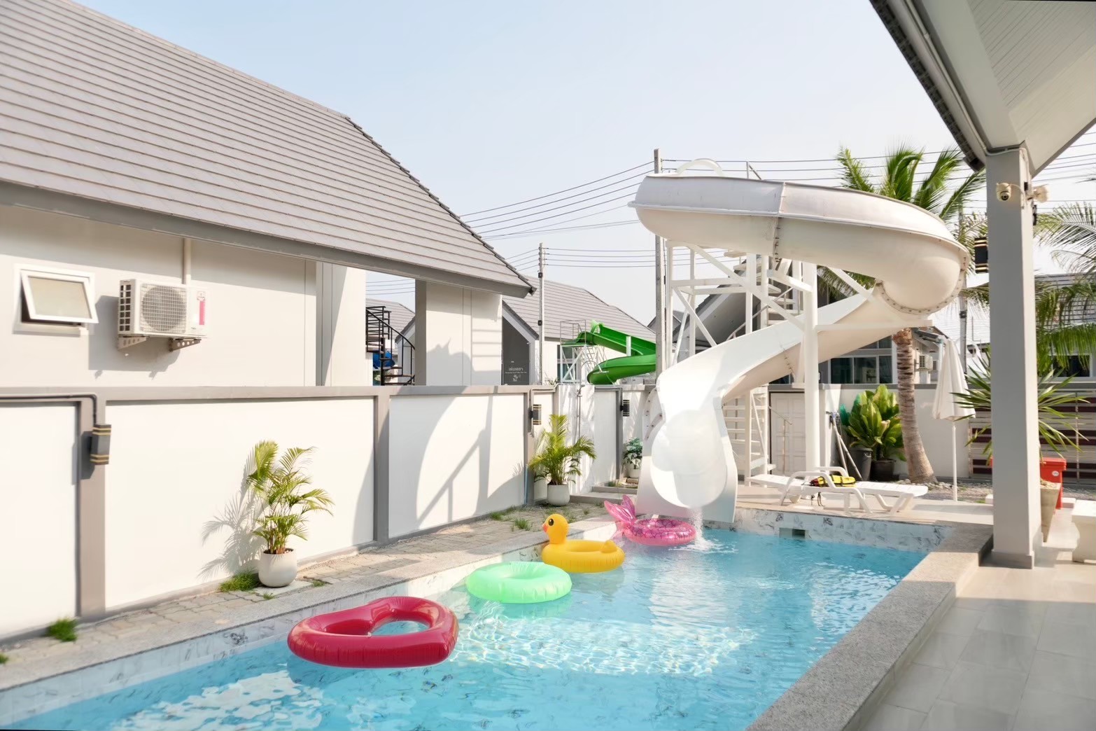 - บ้านพักส่วนตัวพร้อม สระว่ายน้ำส่วนตัวขนาด 3 × 9 เมตร