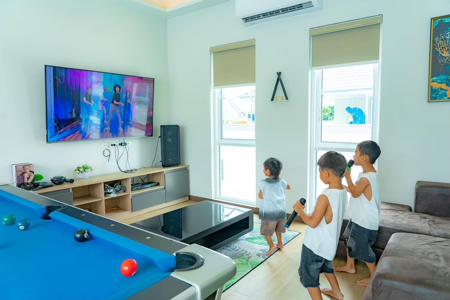 - 📺 Smart TV 70 นิ้ว จอยักษ์ในห้องกลาง + Smart TV ทุกห้องนอน