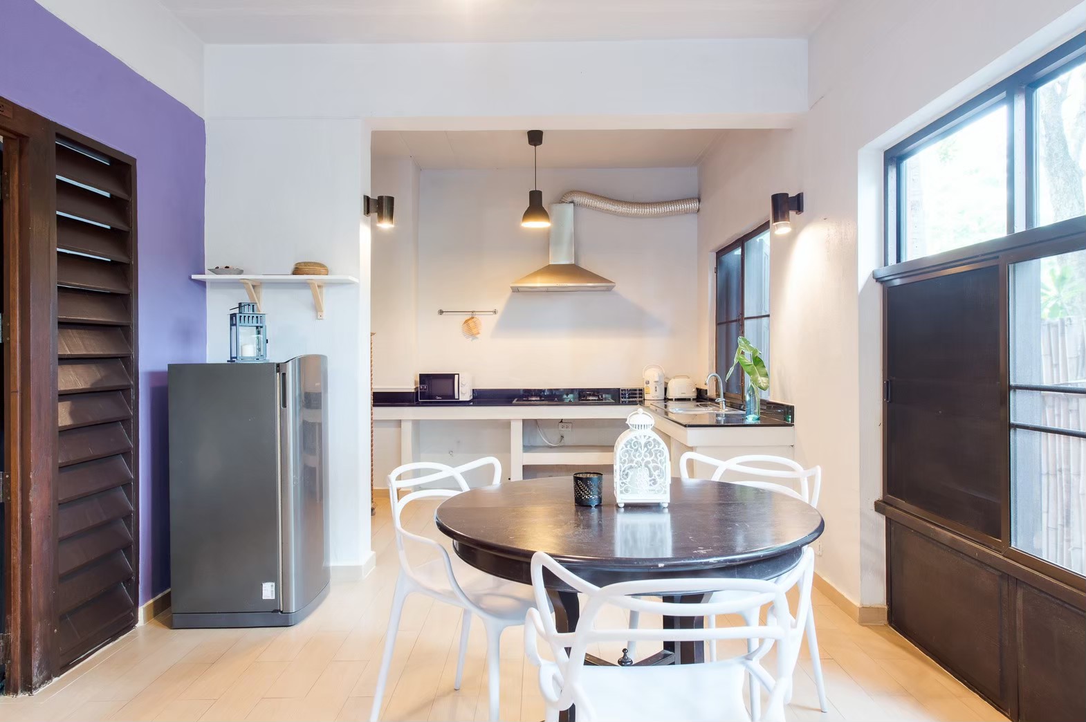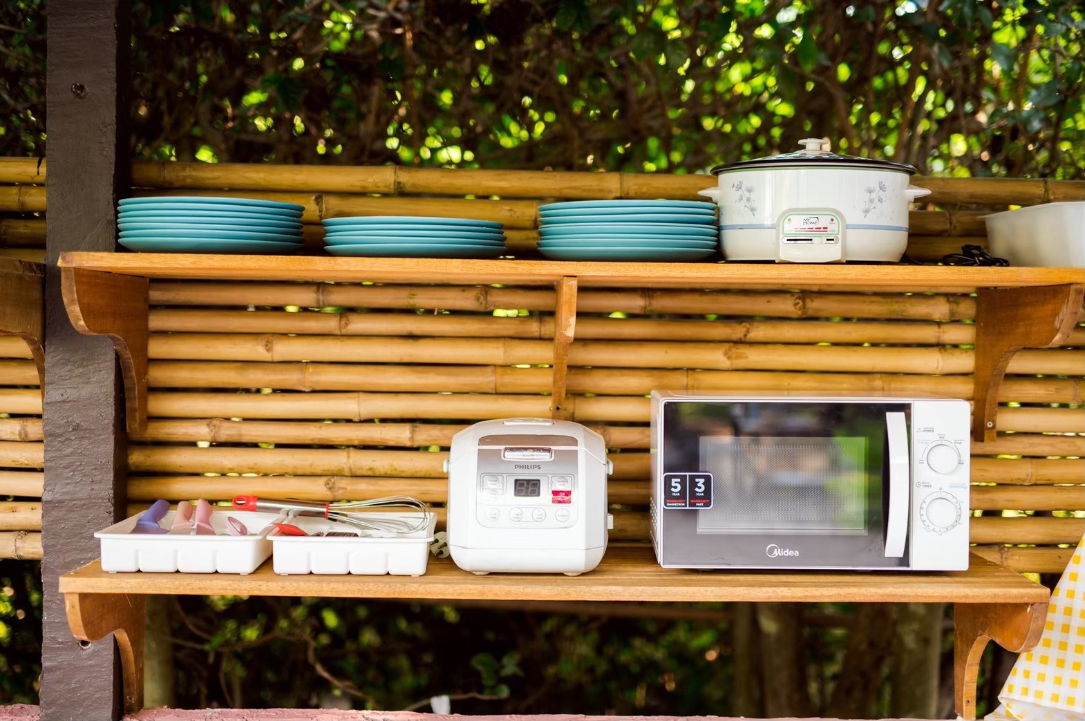 - ครัวพร้อมอุปกรณ์ครบ: เตาแก๊ส, ไมโครเวฟ, หม้อหุงข้าว, กระติกน้ำร้อน, จานชาม ฯลฯ