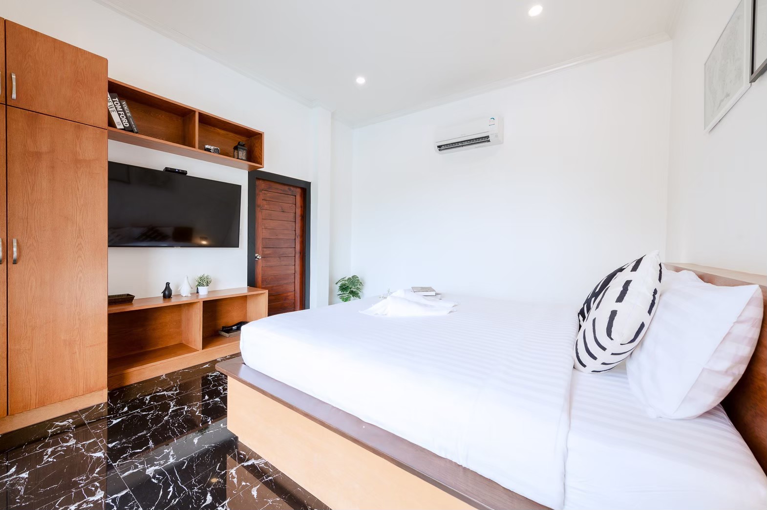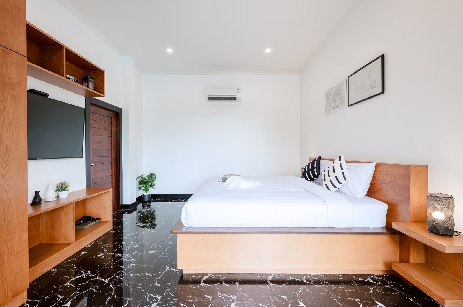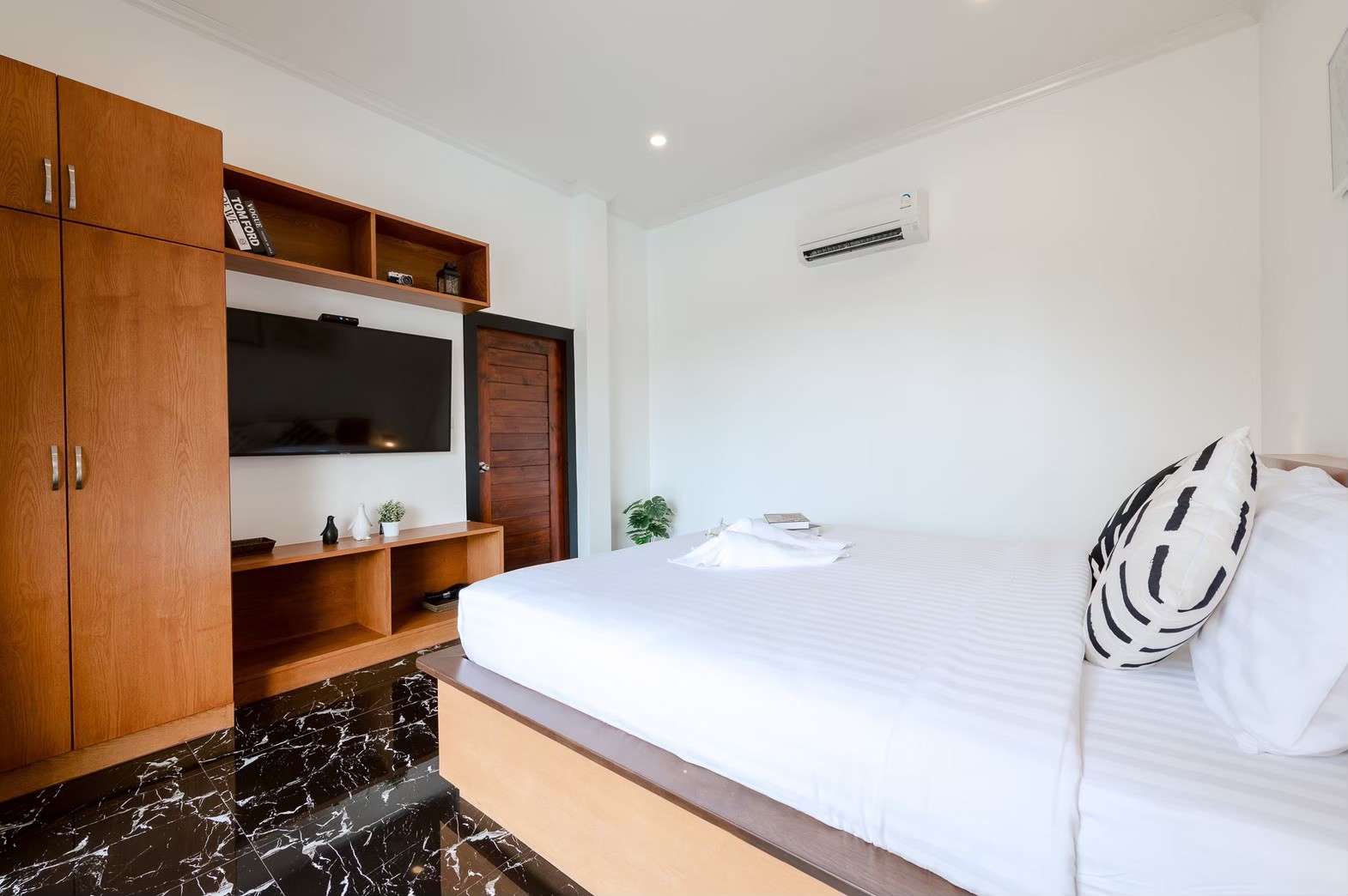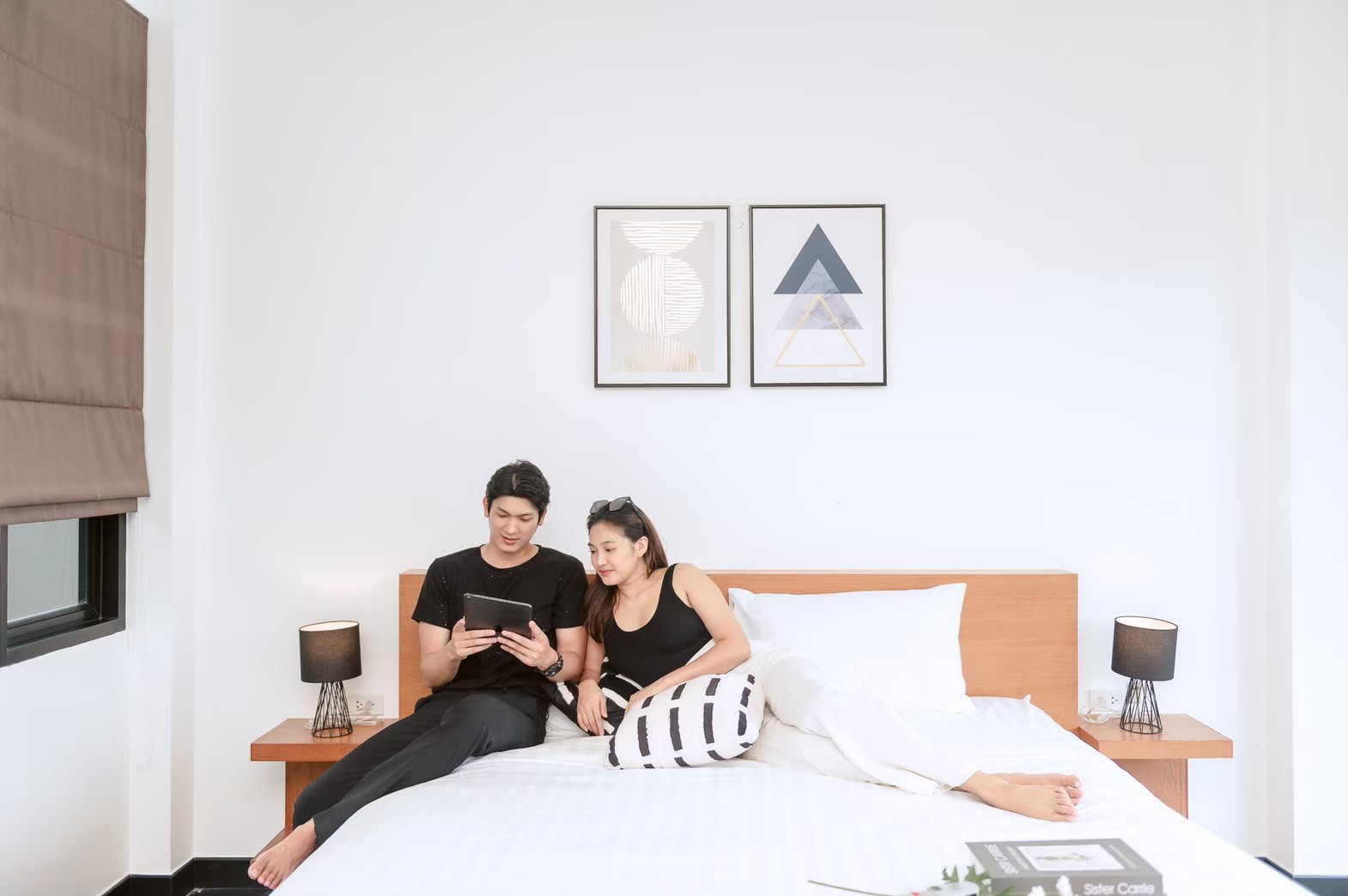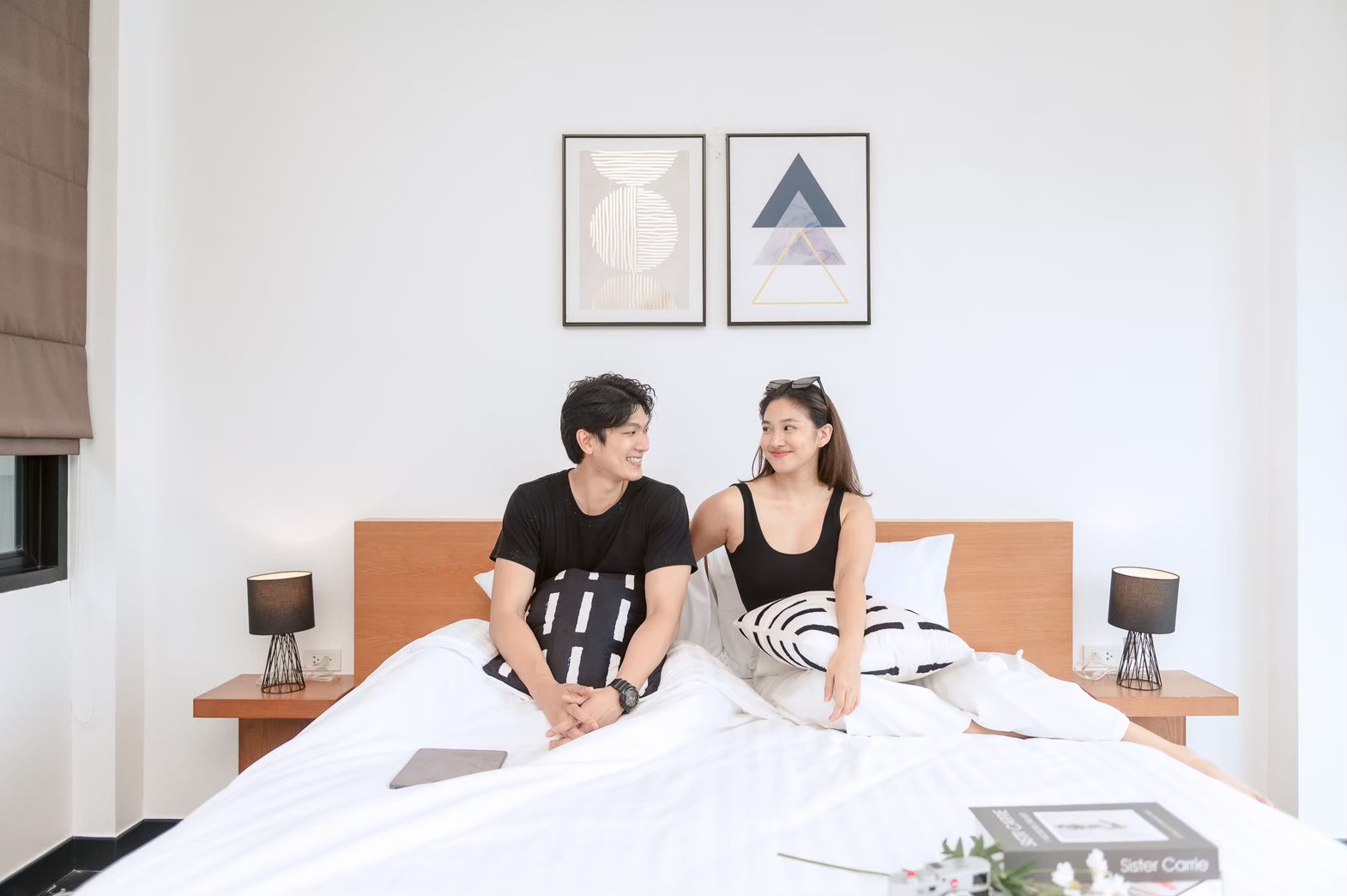 - ห้องนอน 1: เตียง 6 ฟุต + ฟูกเสริม 2 ท่าน