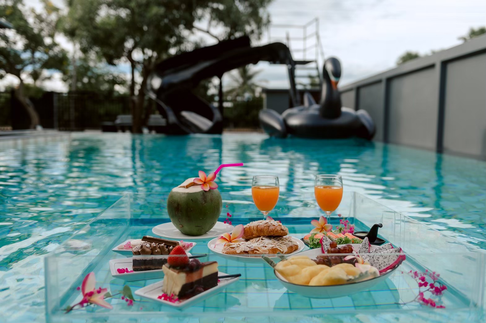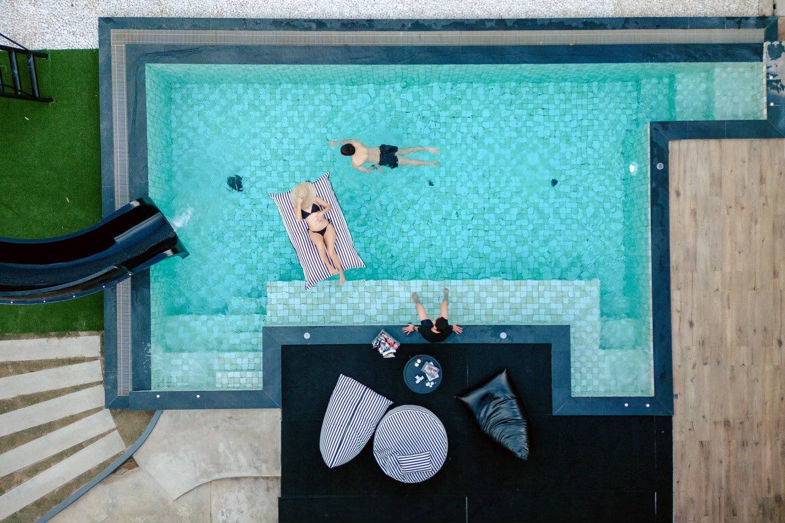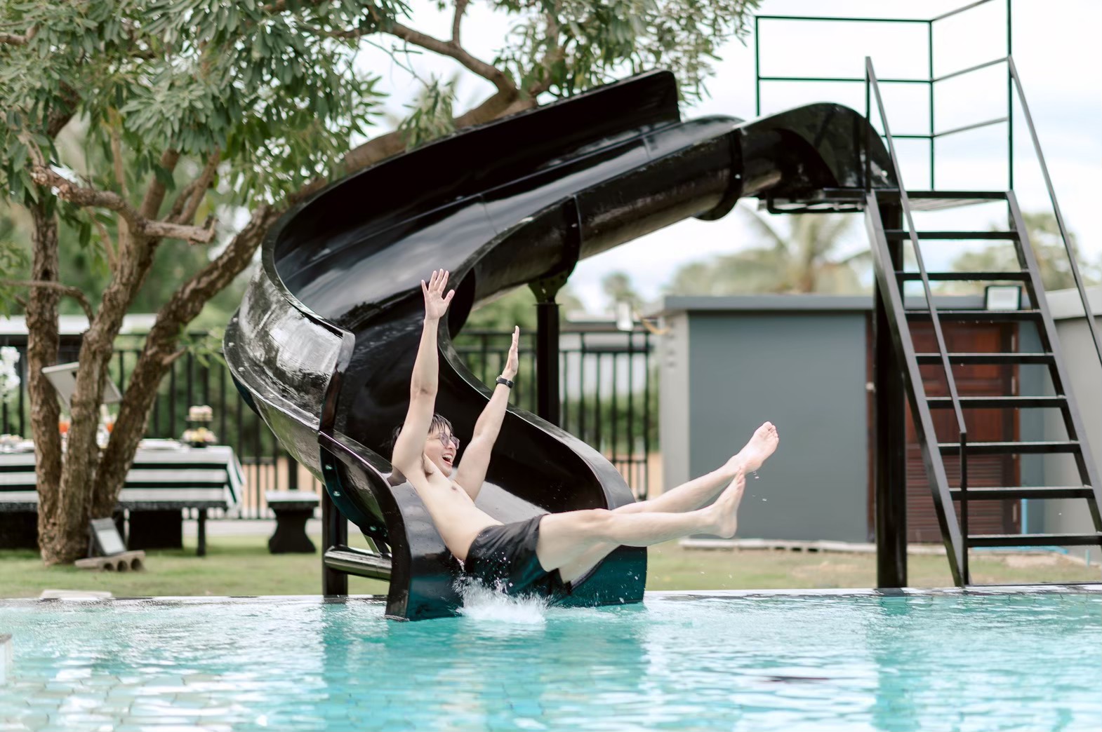 - ต้องใส่ชุดว่ายน้ำหรือชุดที่สีไม่ตกลงสระ ฝ่าฝืนปรับท่านละ 600 บาท