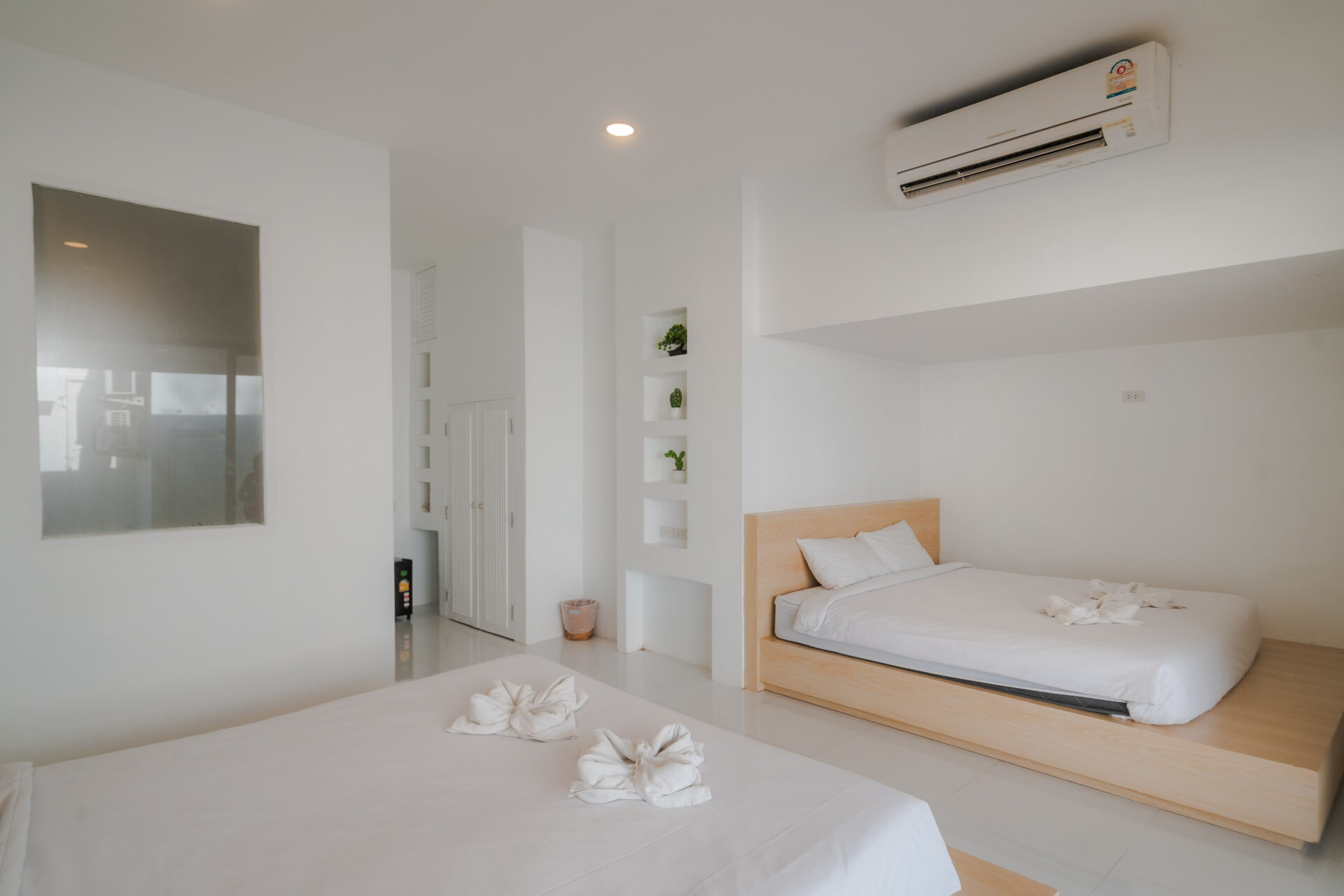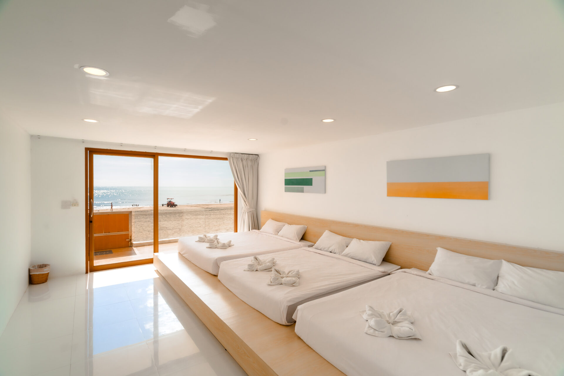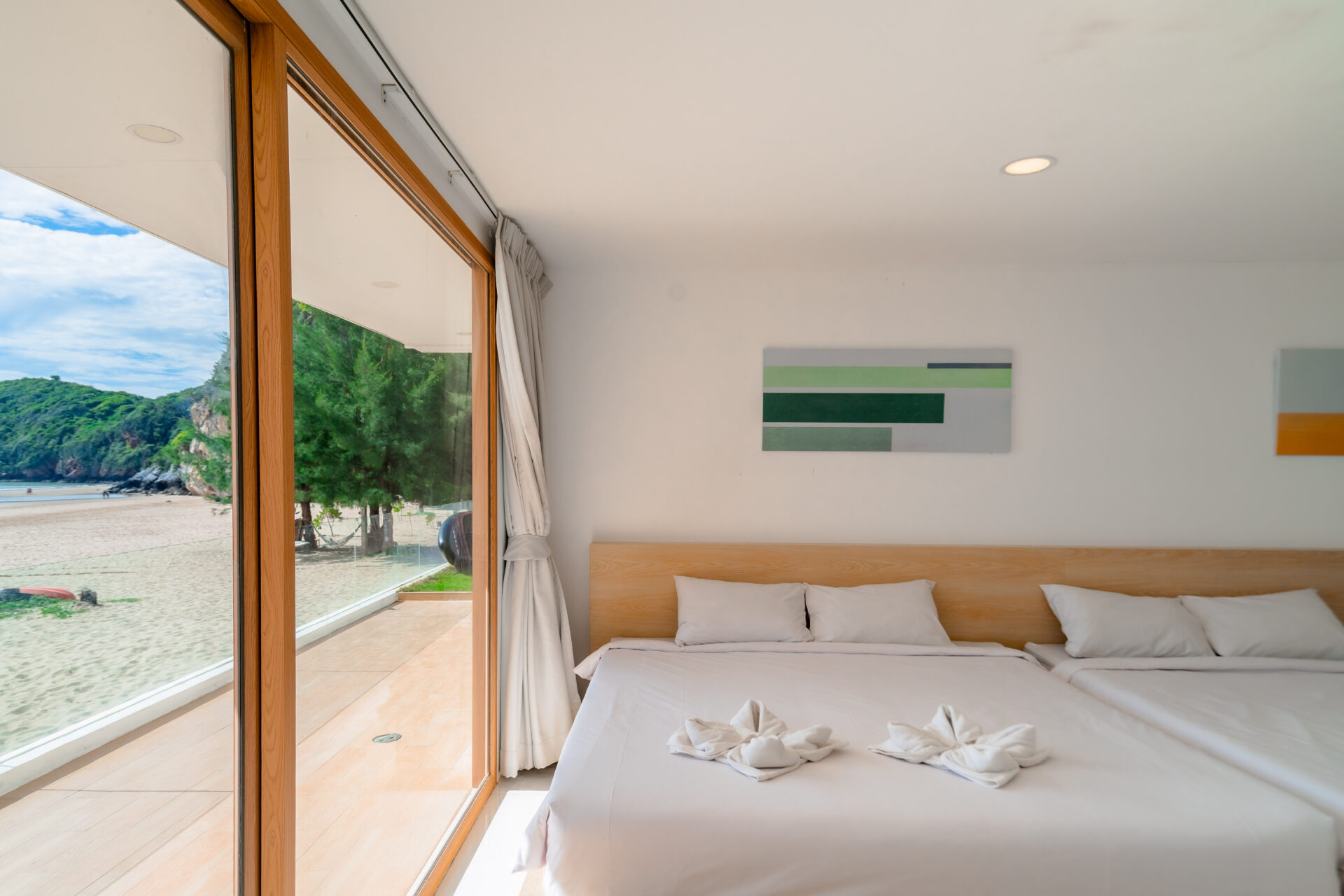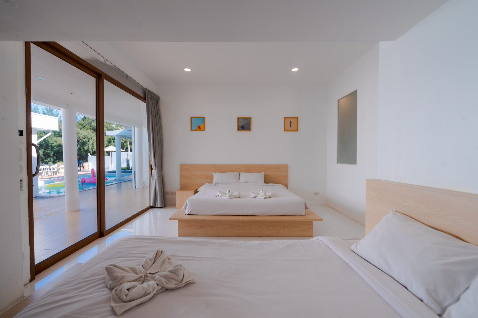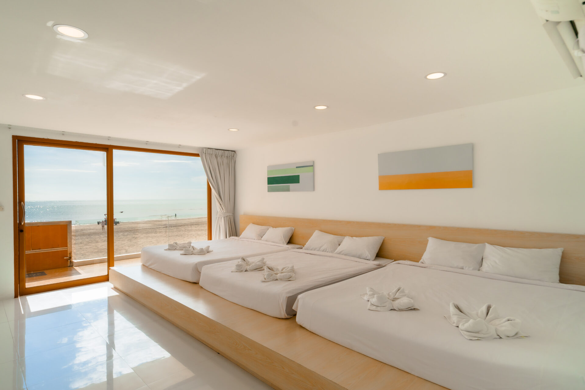- ห้องนอนที่ 6: 🏝️ วิวทะเล / เตียง 6 ฟุต 2 เตียง + เตียง 5 ฟุต 1 เตียง / มีห้องน้ำในตัว