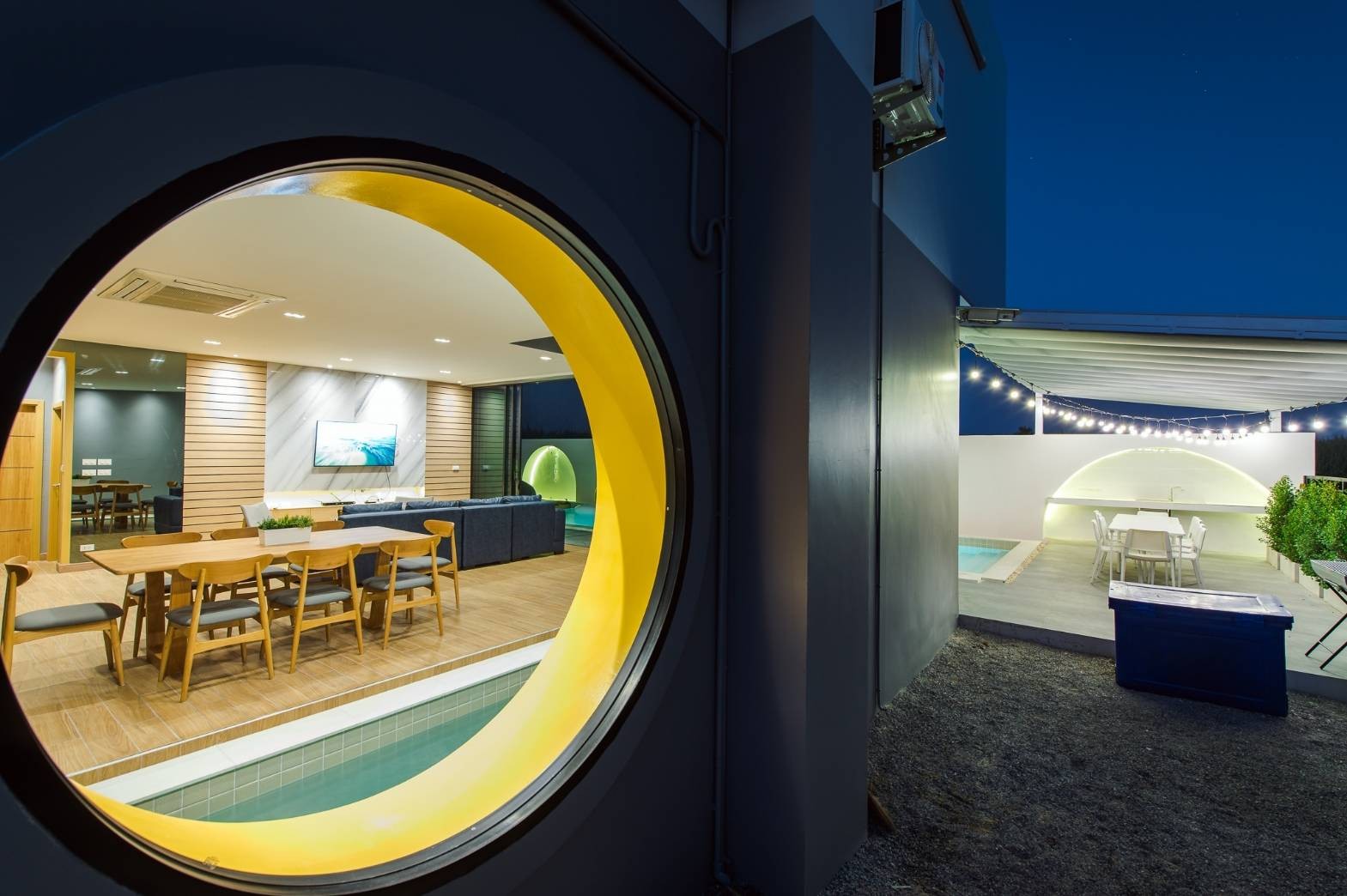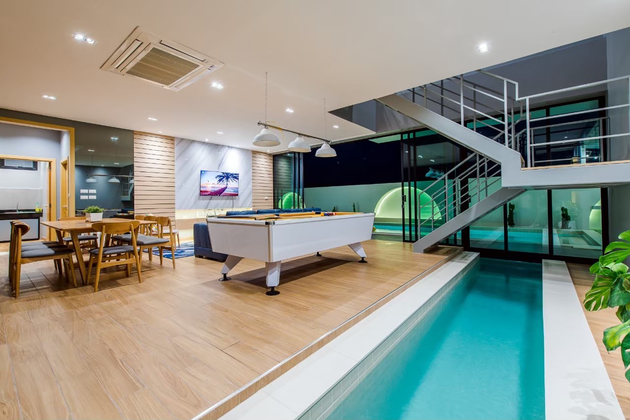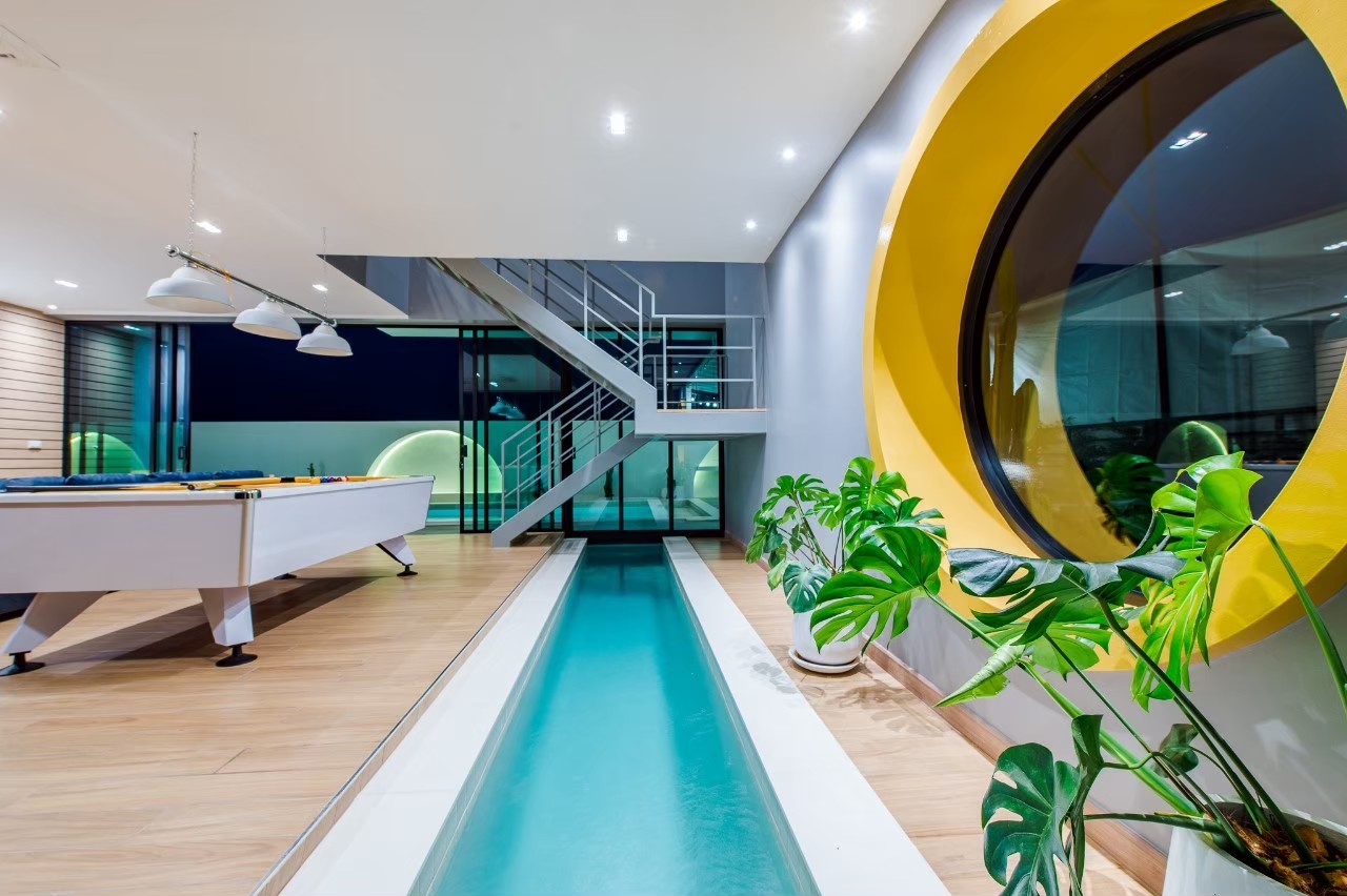 - สระว่ายน้ำในตัวบ้าน พร้อมอุโมงค์ยาว 2 เมตร เชื่อมต่อสระนอกบ้าน (มีหลังเดียวในโครงการ)