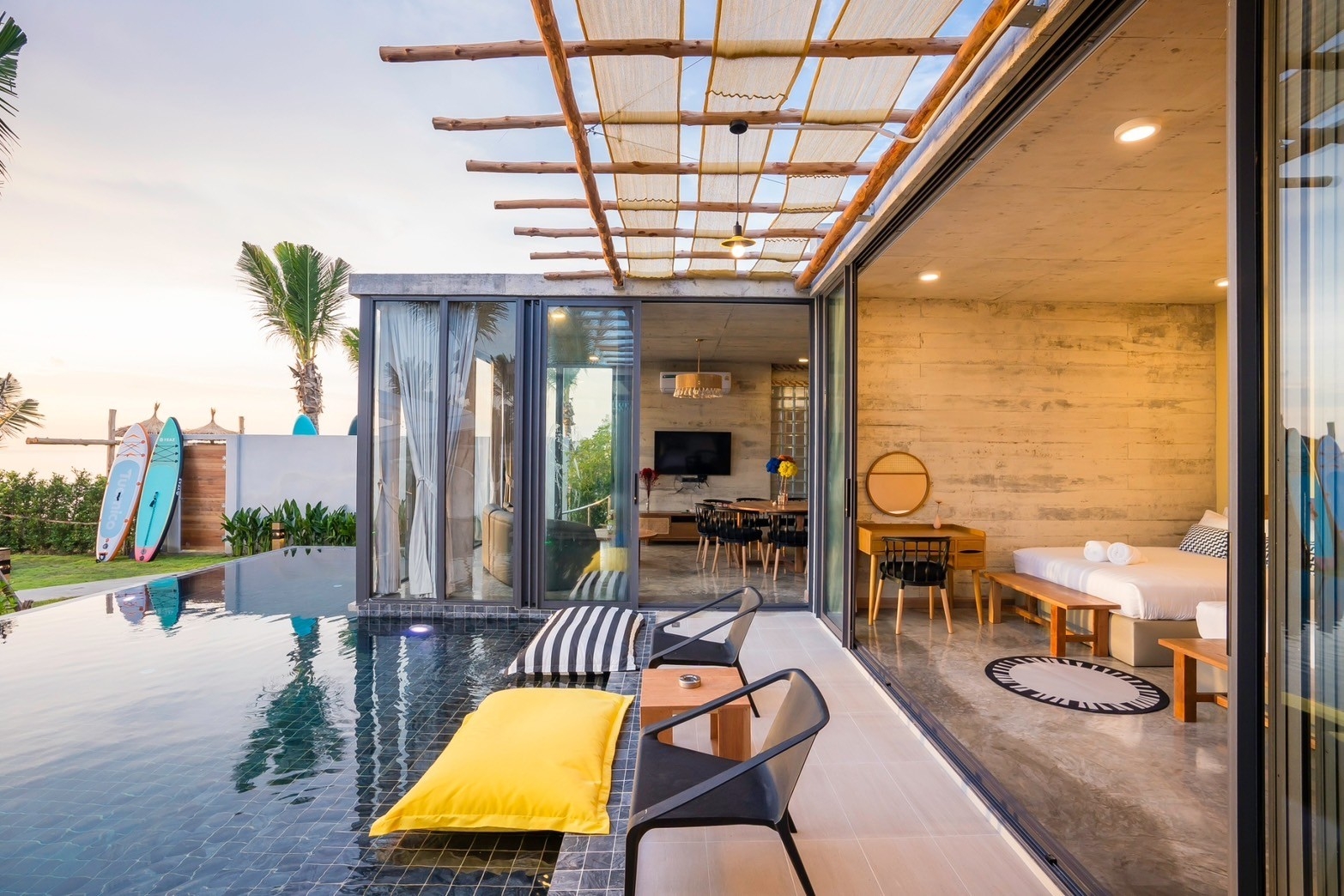 AMORE’A Beachfront chaamPool Villa ตั้งอยู่ริมชายหาดปึกเตียน – ชะอำ เดินลงทะเลได้จากหน้าบ้าน