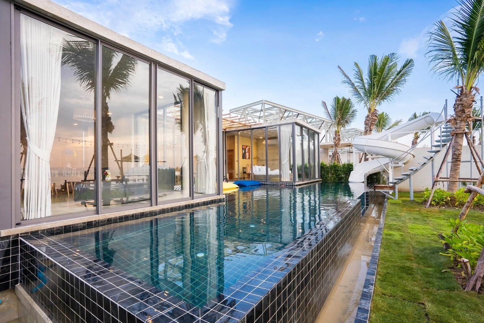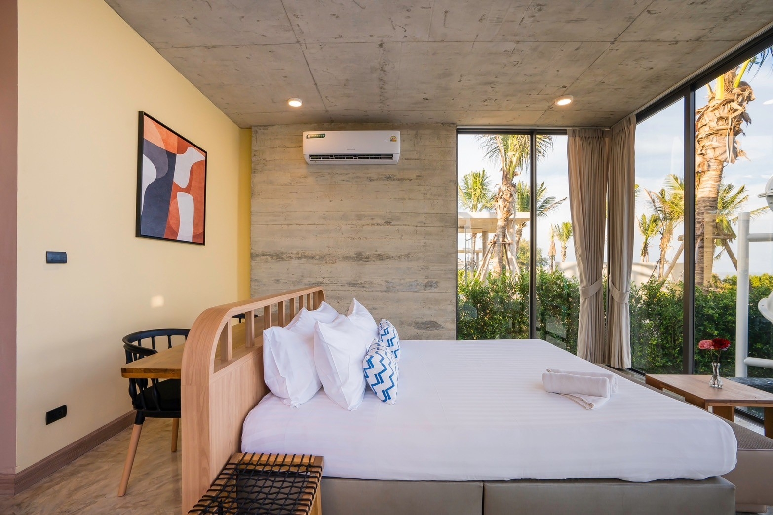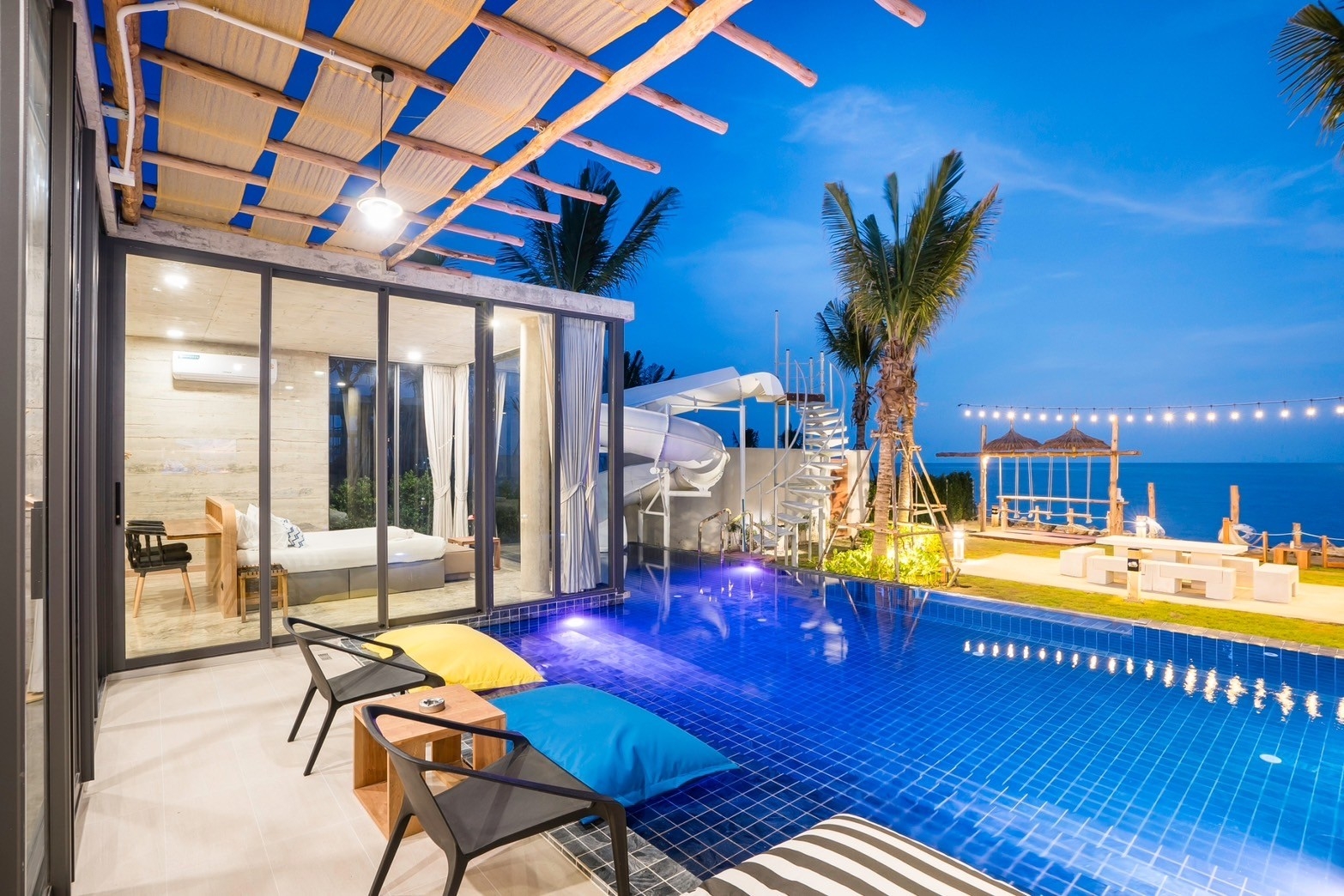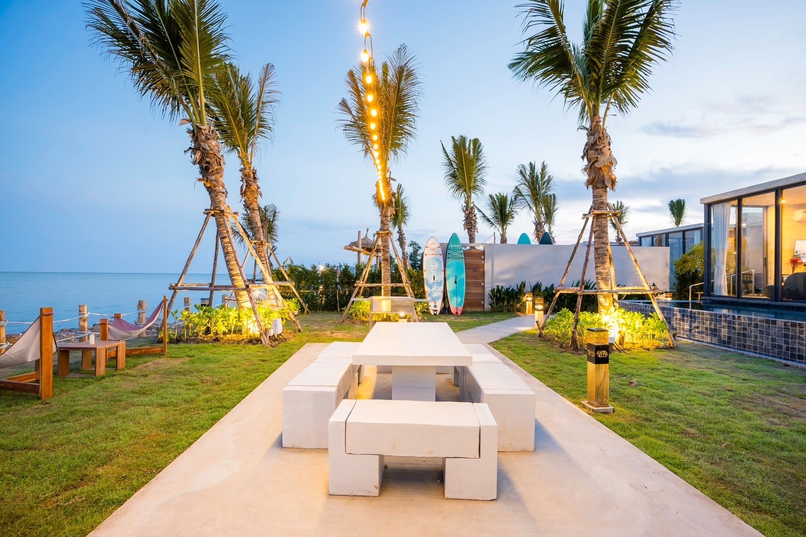 บ้านพักพูลวิลล่าติดทะเลชะอำ สุดหรูริมชายหาดปึกเตียน วิลล่าส่วนตัวดีไซน์ Tropical Style บรรยากาศธรรมชาติ ร่มรื่นและเงียบสงบ เหมาะสำหรับการพักผ่อนกับครอบครัวและกลุ่มเพื่อน พร้อมสระว่ายน้ำส่วนตัวขนาดใหญ่และวิวทะเลสวยแบบพาโนรามา