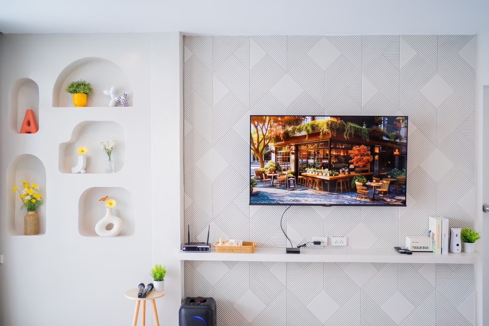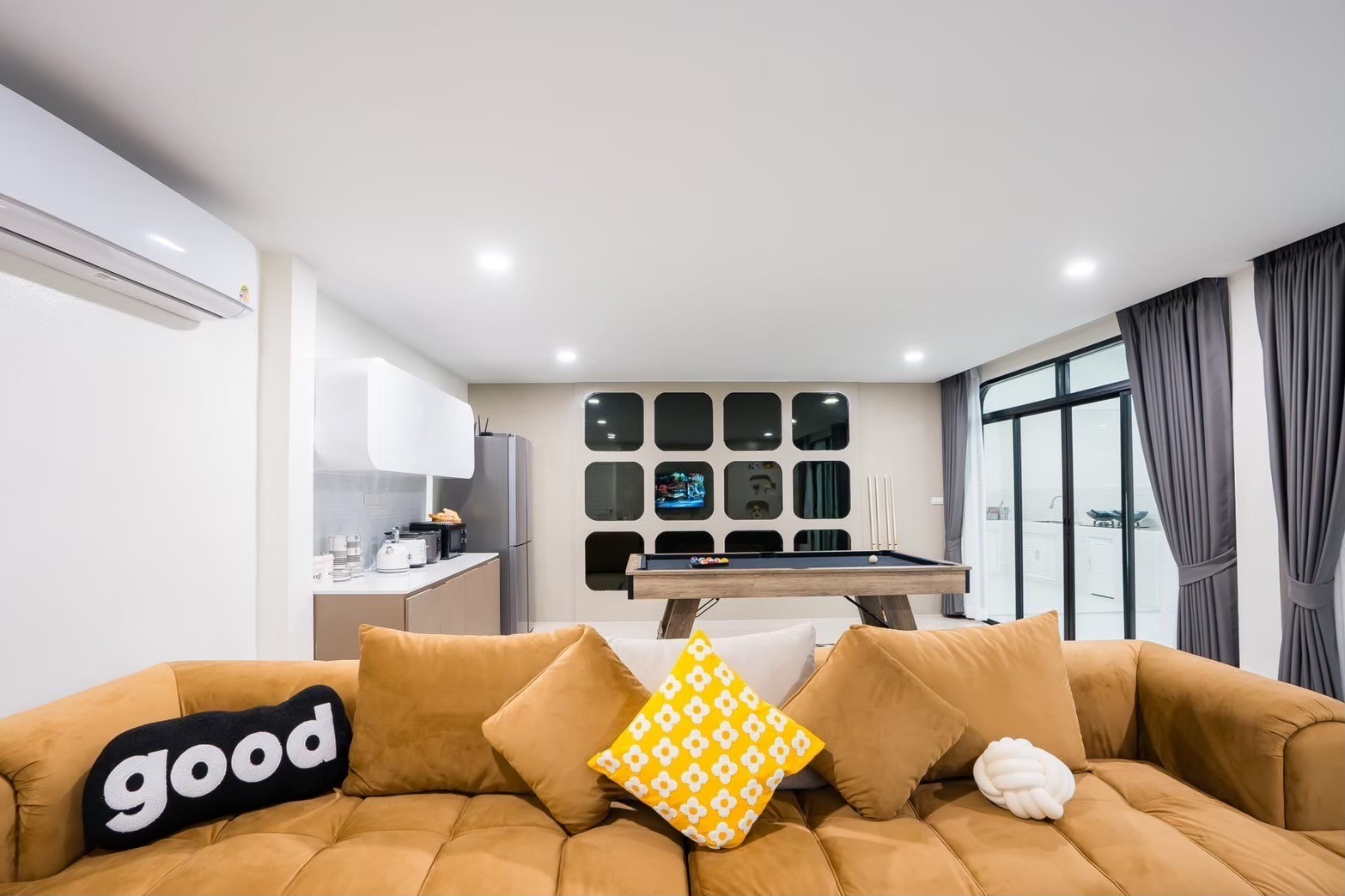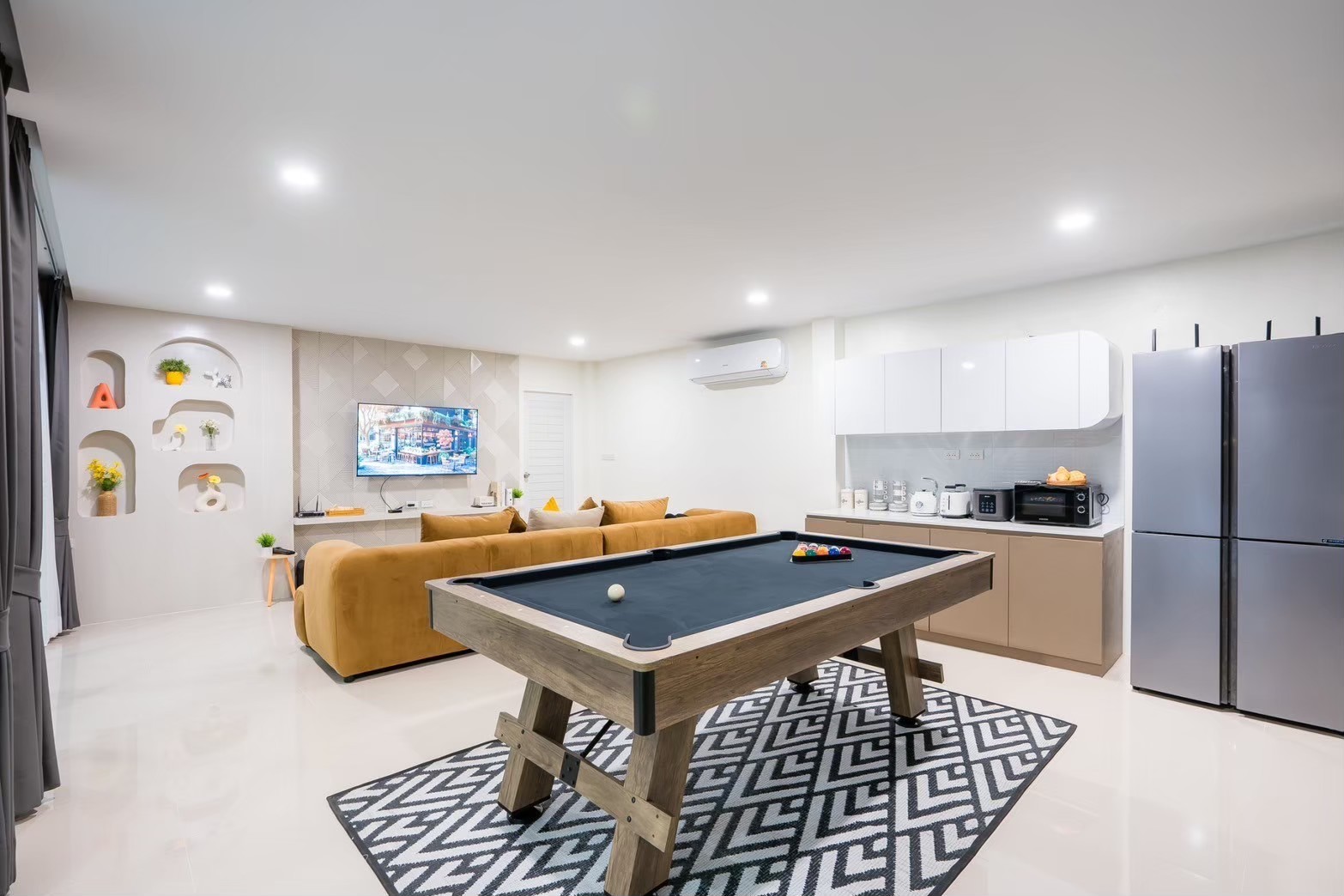 - ห้องนั่งเล่น พร้อมเครื่องเสียง JBL และคาราโอเกะ ไมค์ 2 ตัว