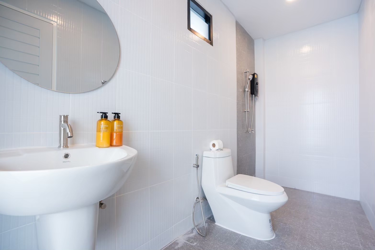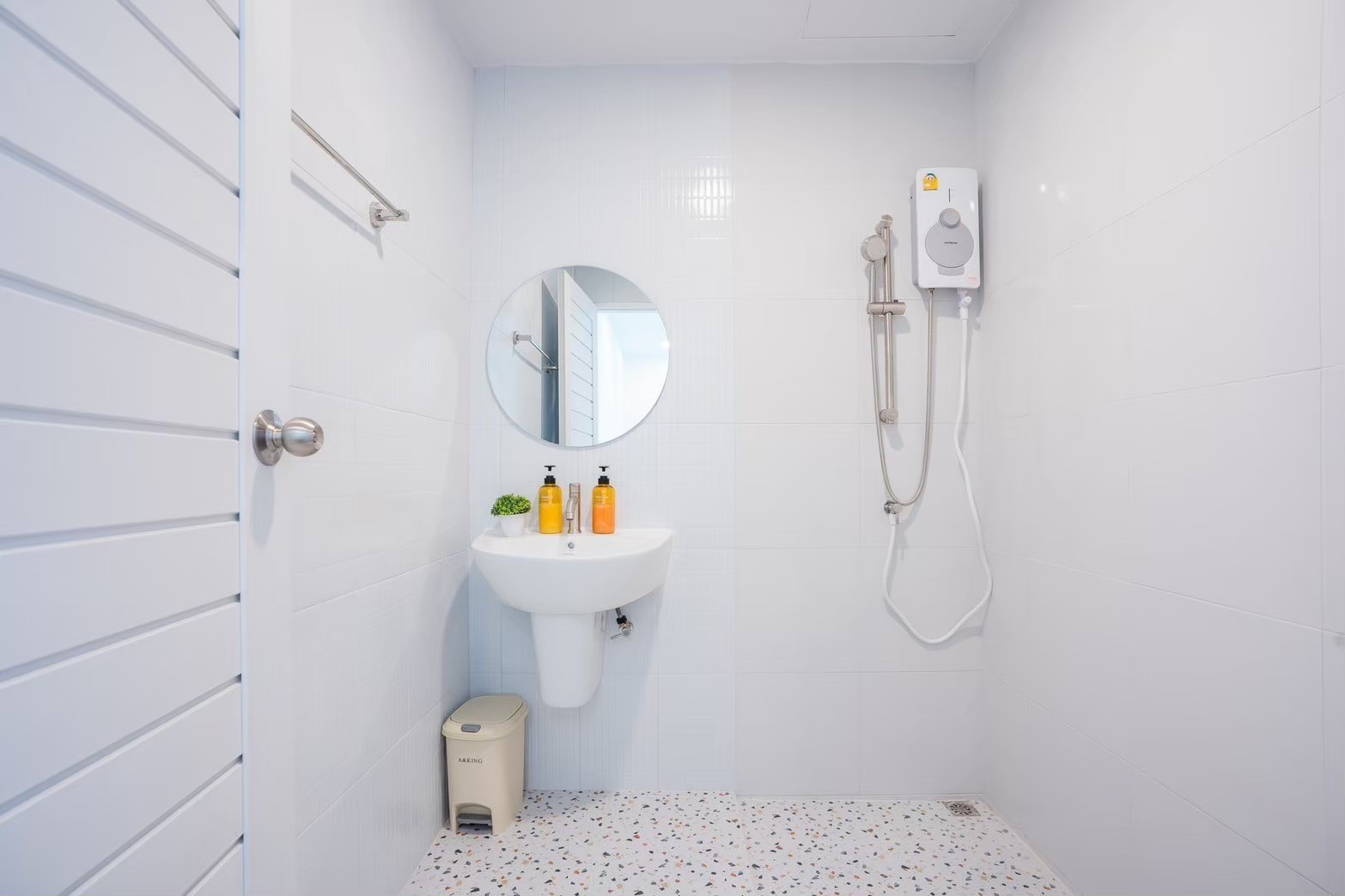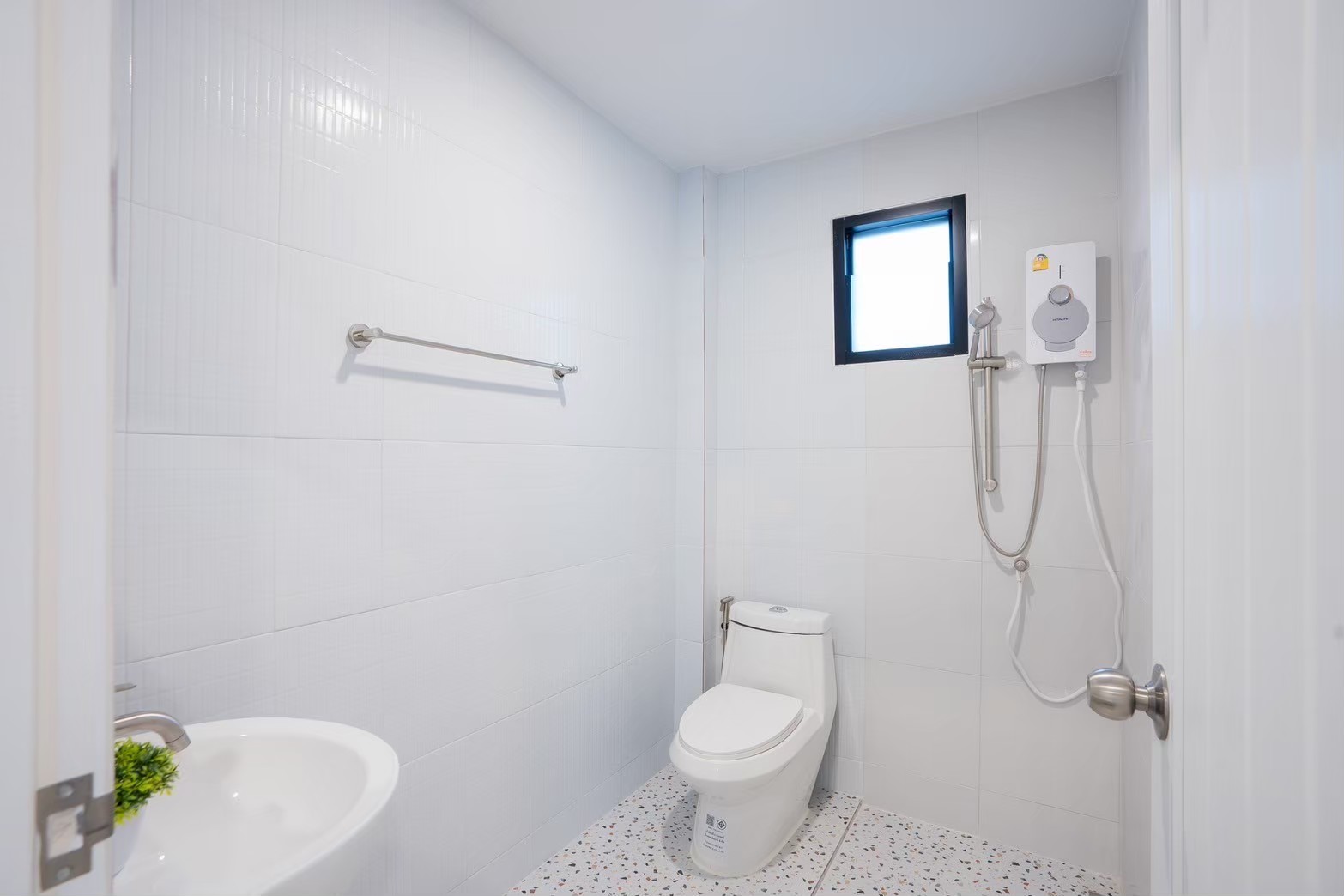 - เครื่องทำน้ำอุ่น, ครีมอาบน้ำ, แชมพู, ผ้าเช็ดตัว, ไดร์เป่าผม