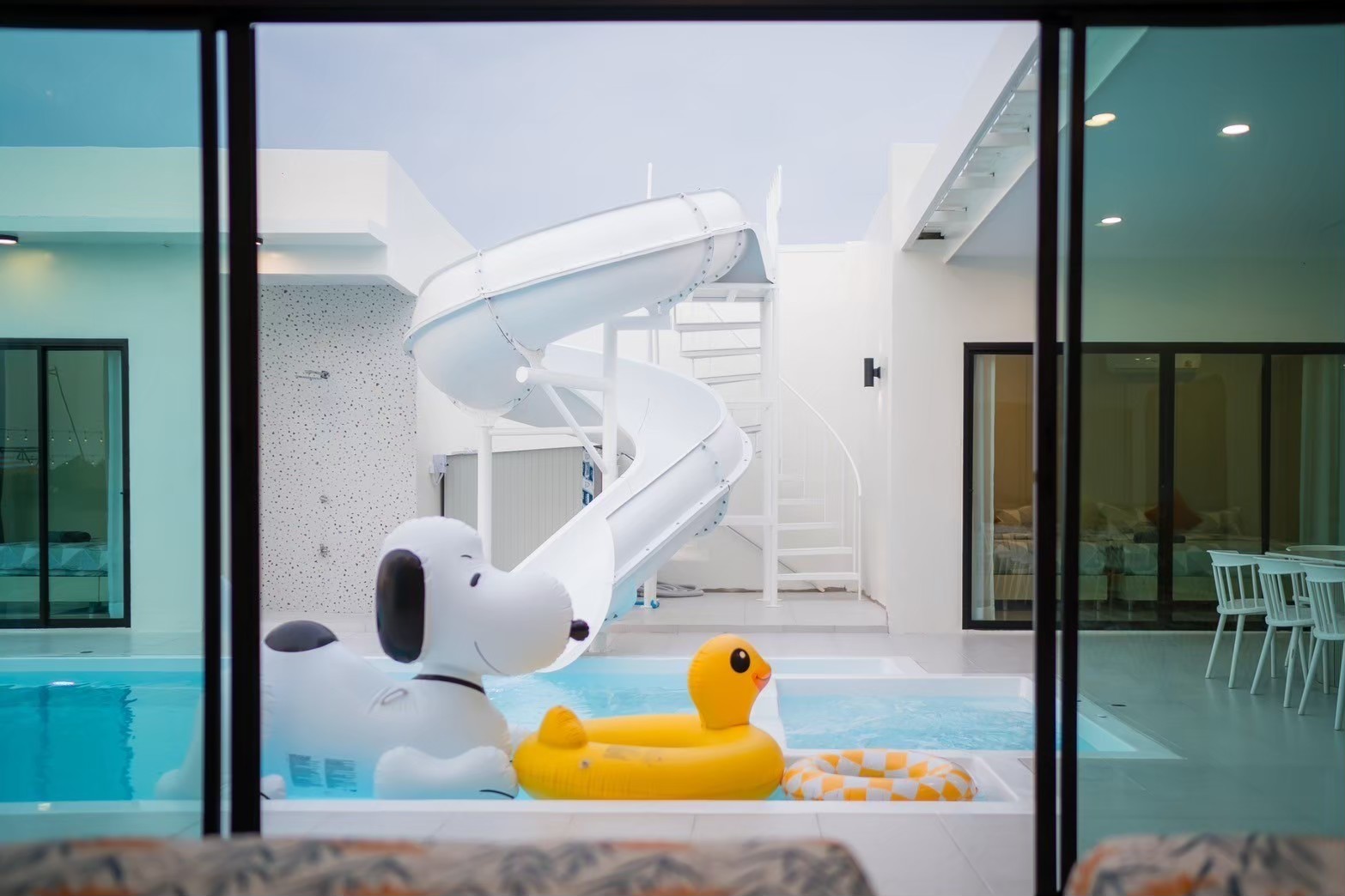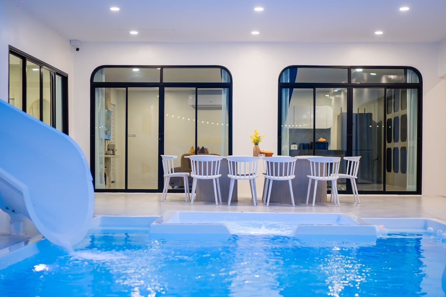 - สระว่ายน้ำพร้อมไฟเปลี่ยนสีและหัวพ่นสปาจากุชชี่