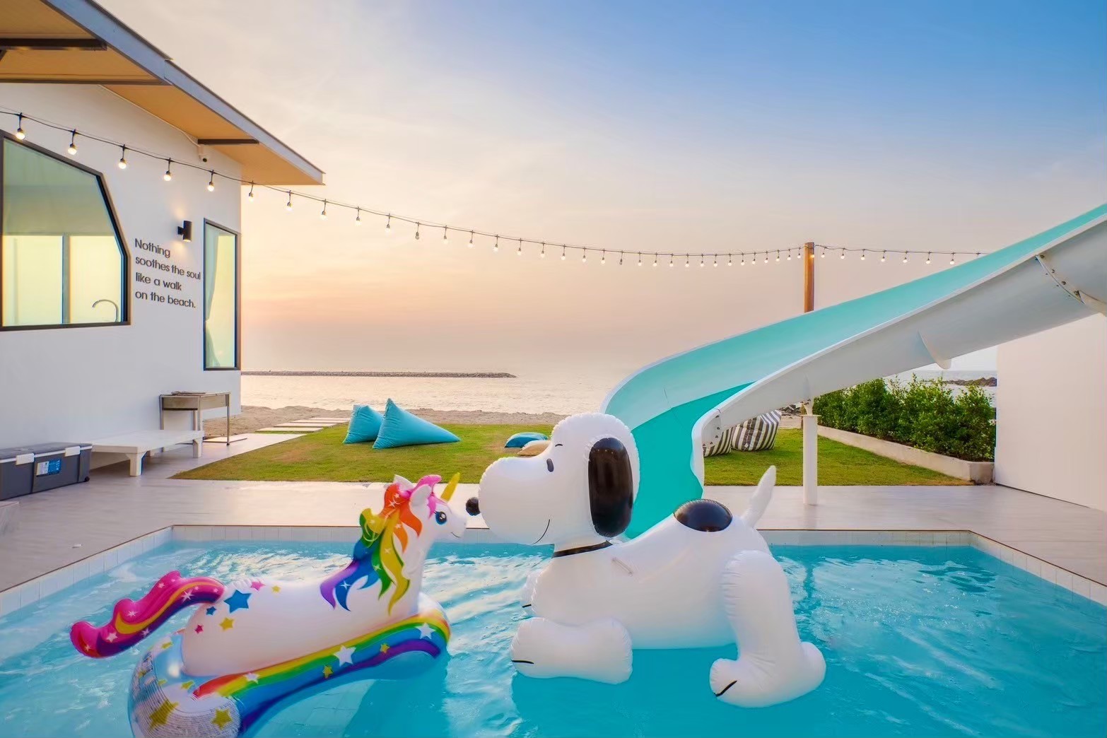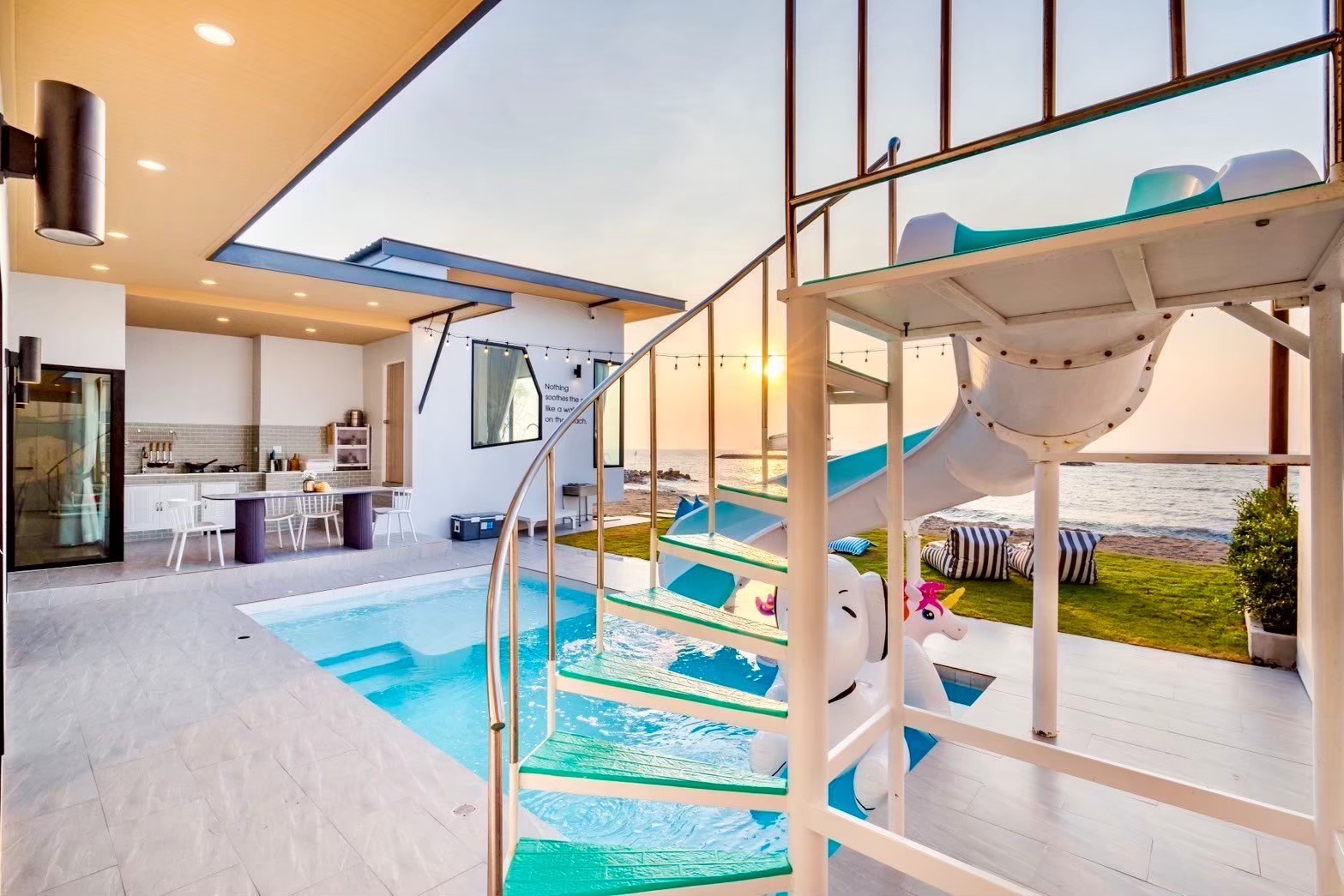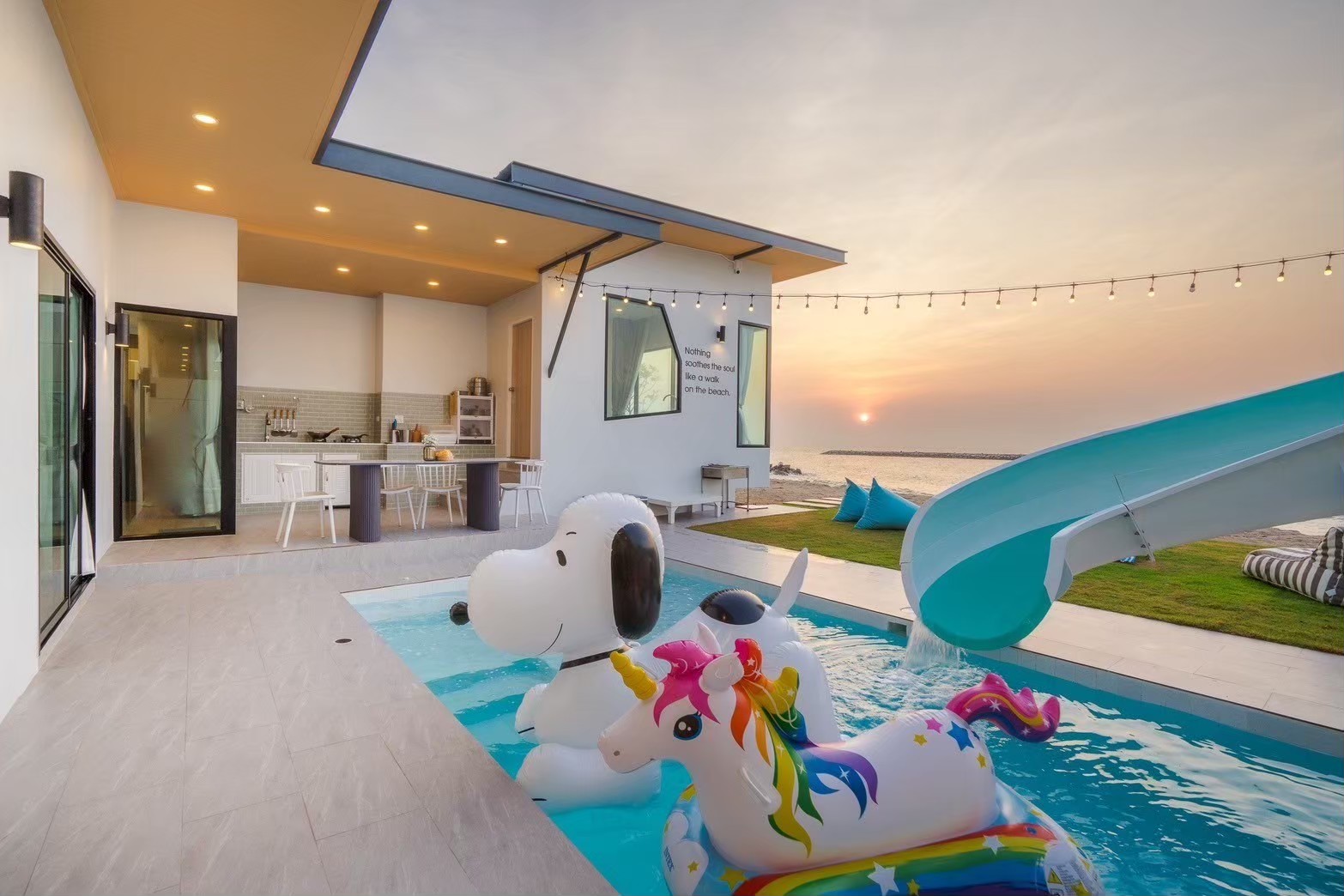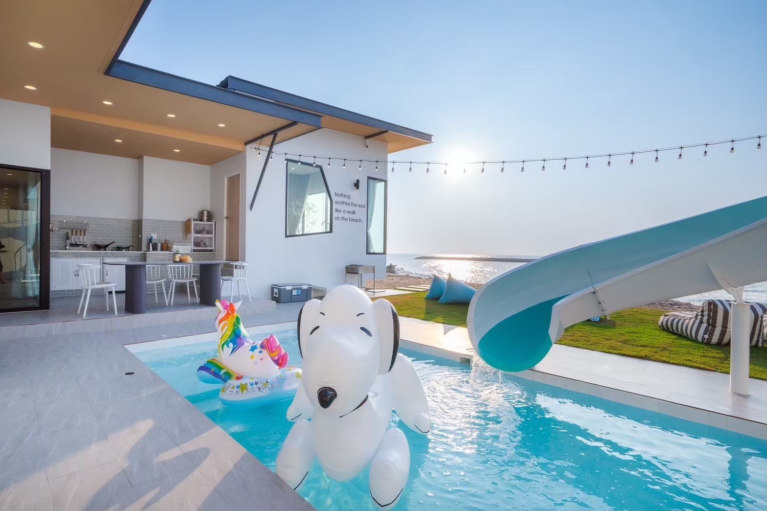 บ้านพักพูลวิลล่าริมหาด ที่มาพร้อมสิ่งอำนวยความสะดวกและกิจกรรมในบ้านครบครัน เหมาะกับสายถ่ายรูปและสายปาร์ตี้: