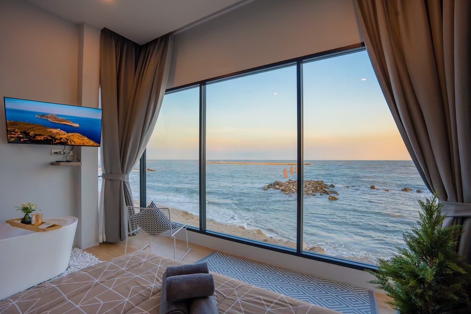 พูลวิลล่าติดหาดส่วนตัว บรรยากาศสุดชิล หาดเจ้าสำราญ พร้อมสิ่งอำนวยความสะดวกครบครัน เหมาะสำหรับการพักผ่อนกับครอบครัวและกลุ่มเพื่อน ในสไตล์ Minimal x Cozy ที่ยกระดับประสบการณ์การพักผ่อนริมทะเลอย่างเหนือระดับ