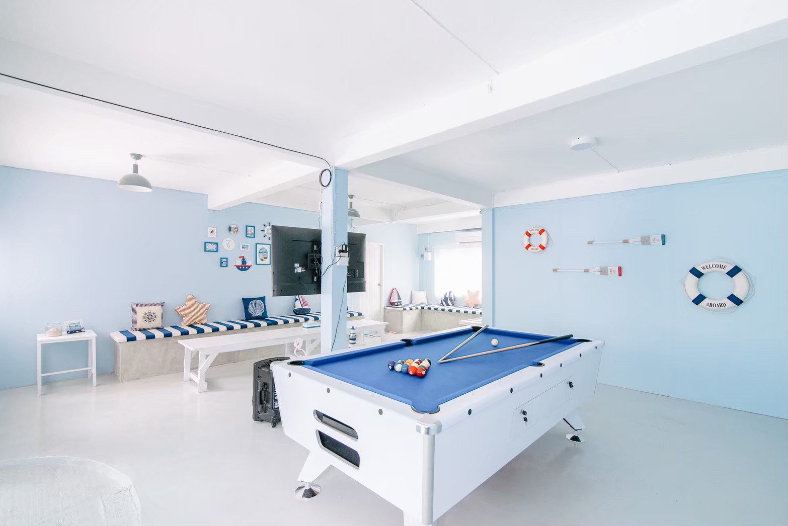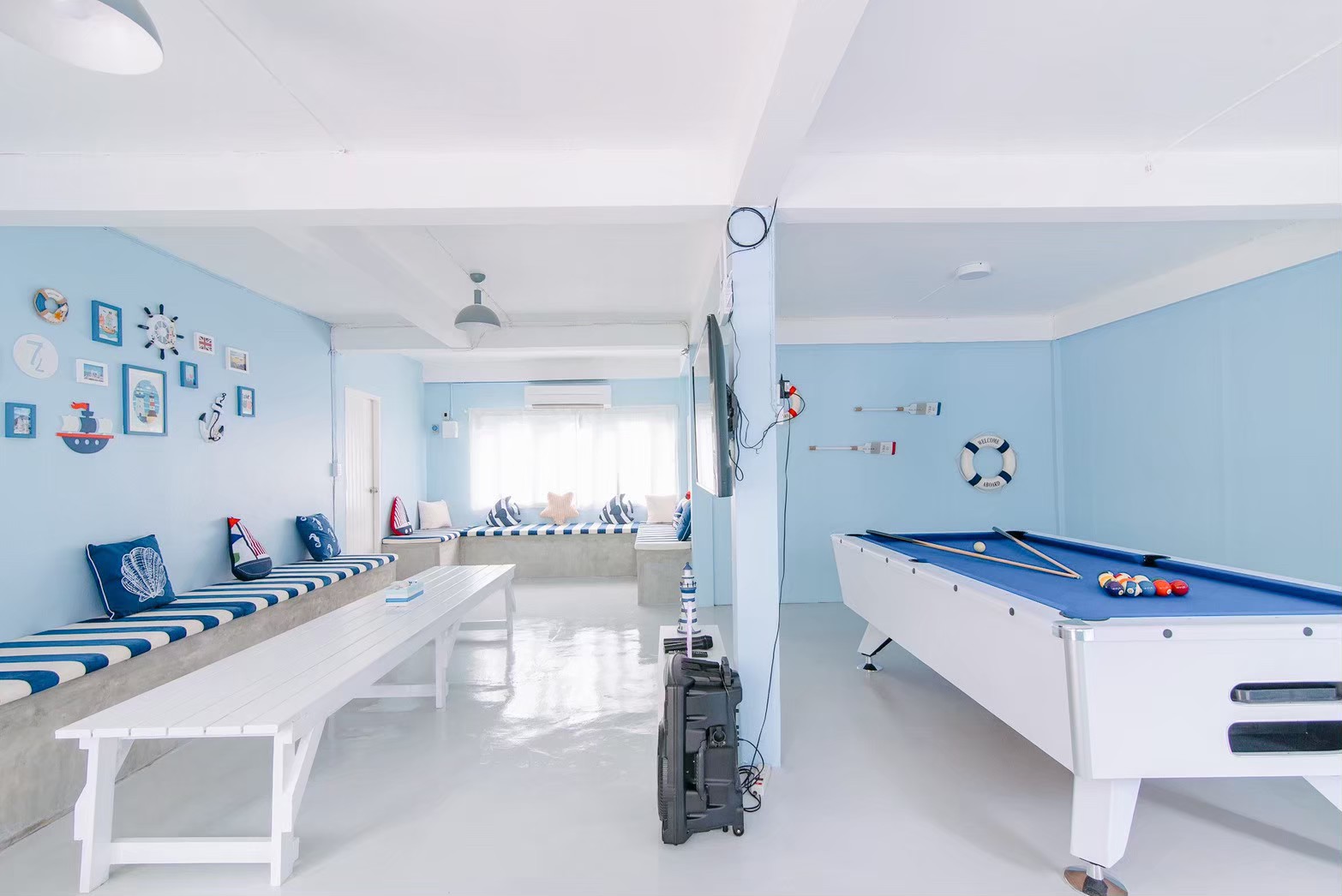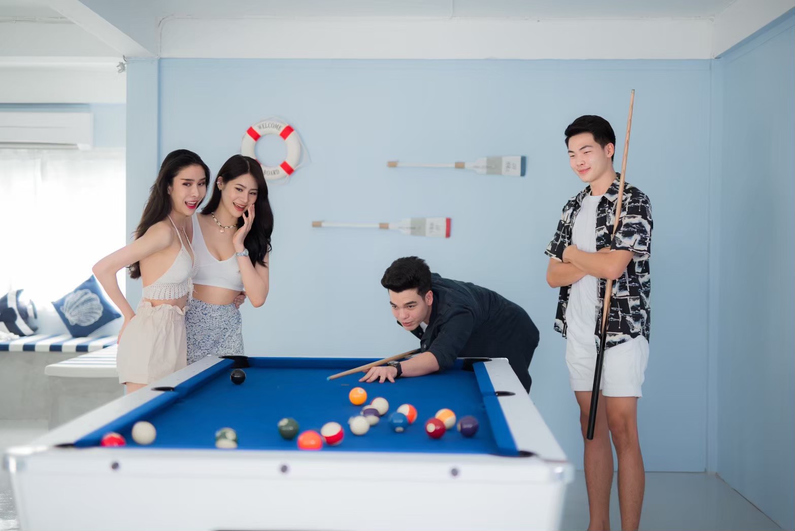 - เคาน์เตอร์บาร์ริมสระ โต๊ะพูล Smart TV + คาราโอเกะ YouTube
