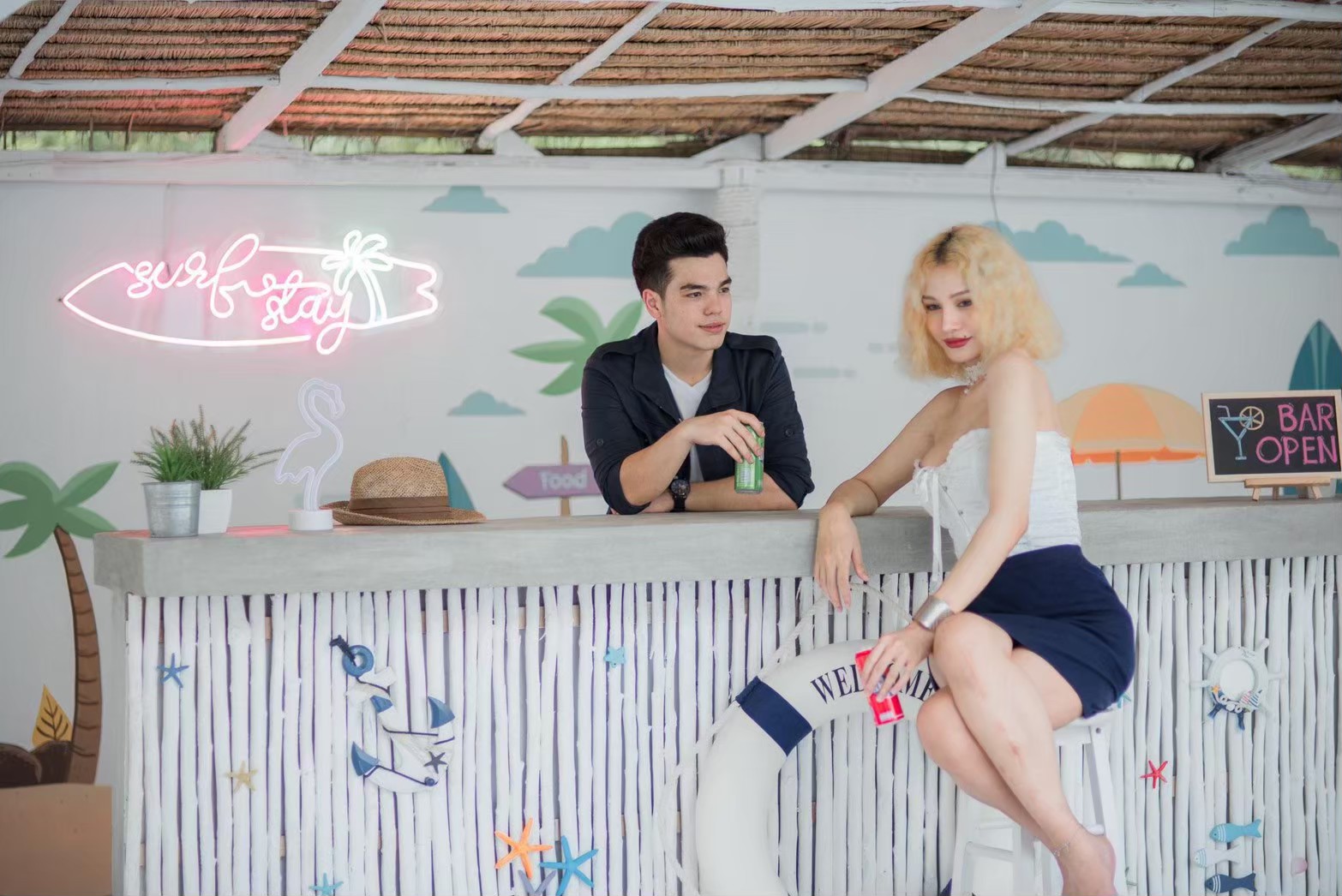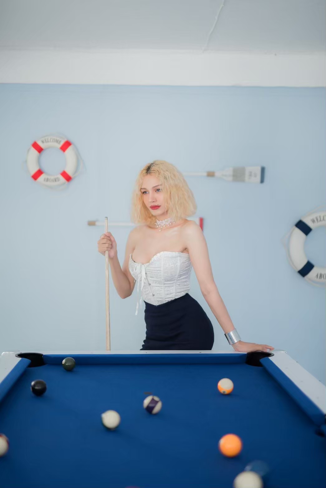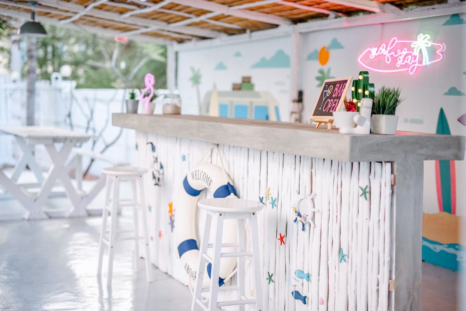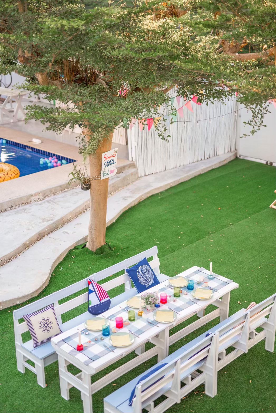 - เคาน์เตอร์บาร์ริมสระ โต๊ะพูล Smart TV + คาราโอเกะ YouTube