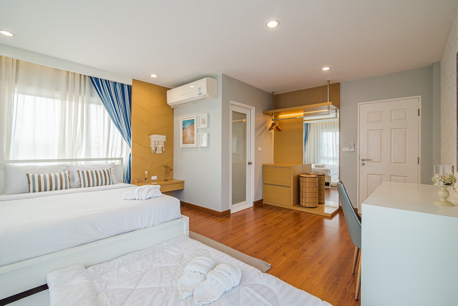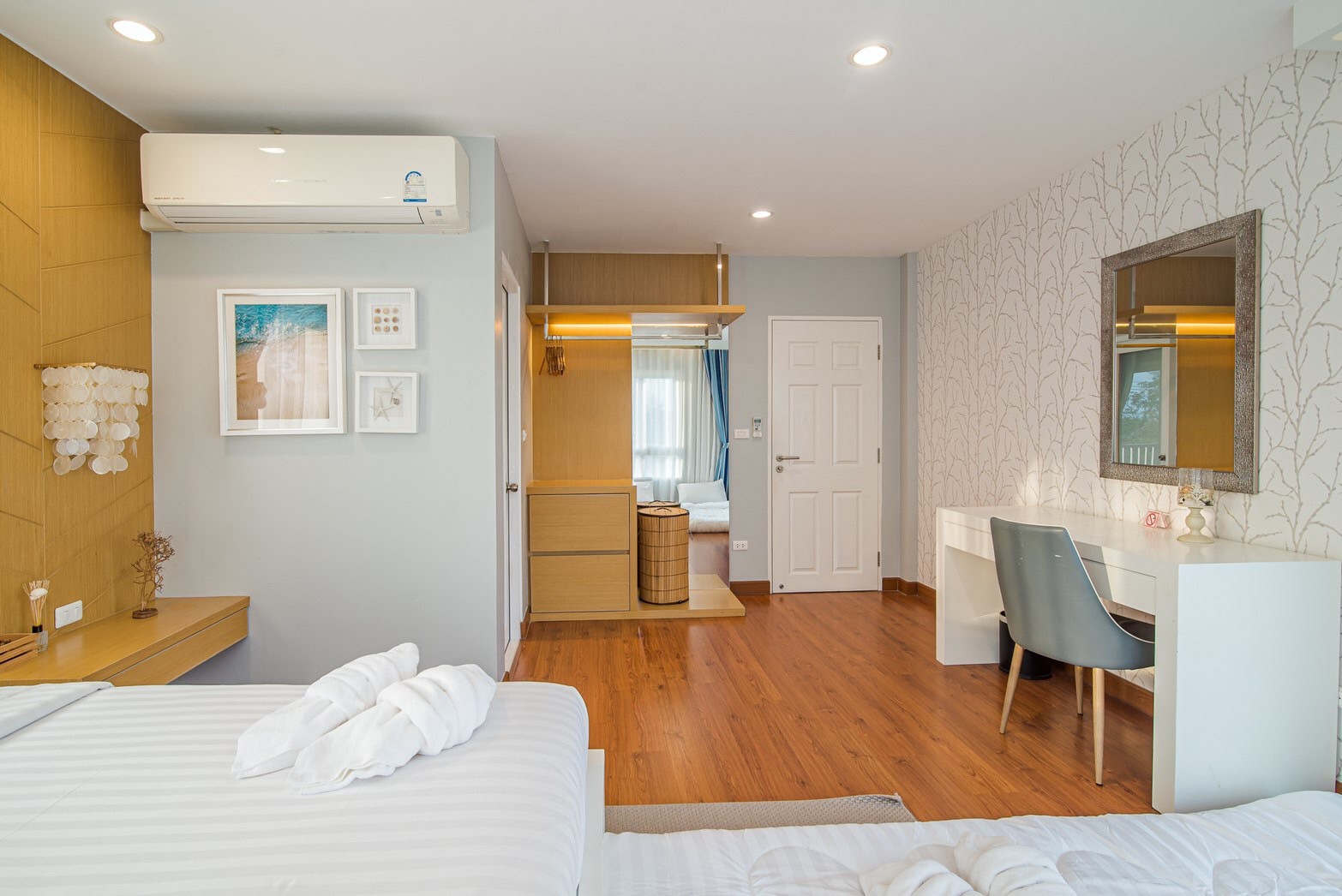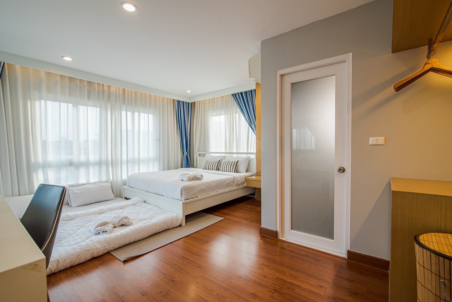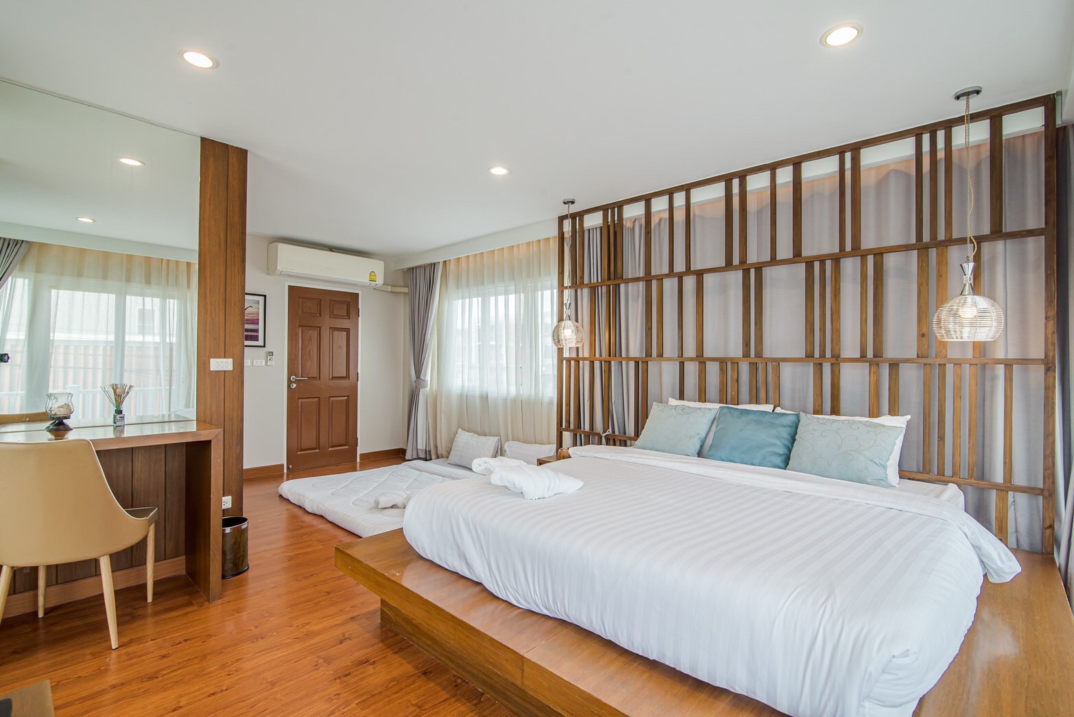 - ห้องที่ 4 : เตียง 6 ฟุต 1 เตียง + ฟูกเสริม 2 เตียง