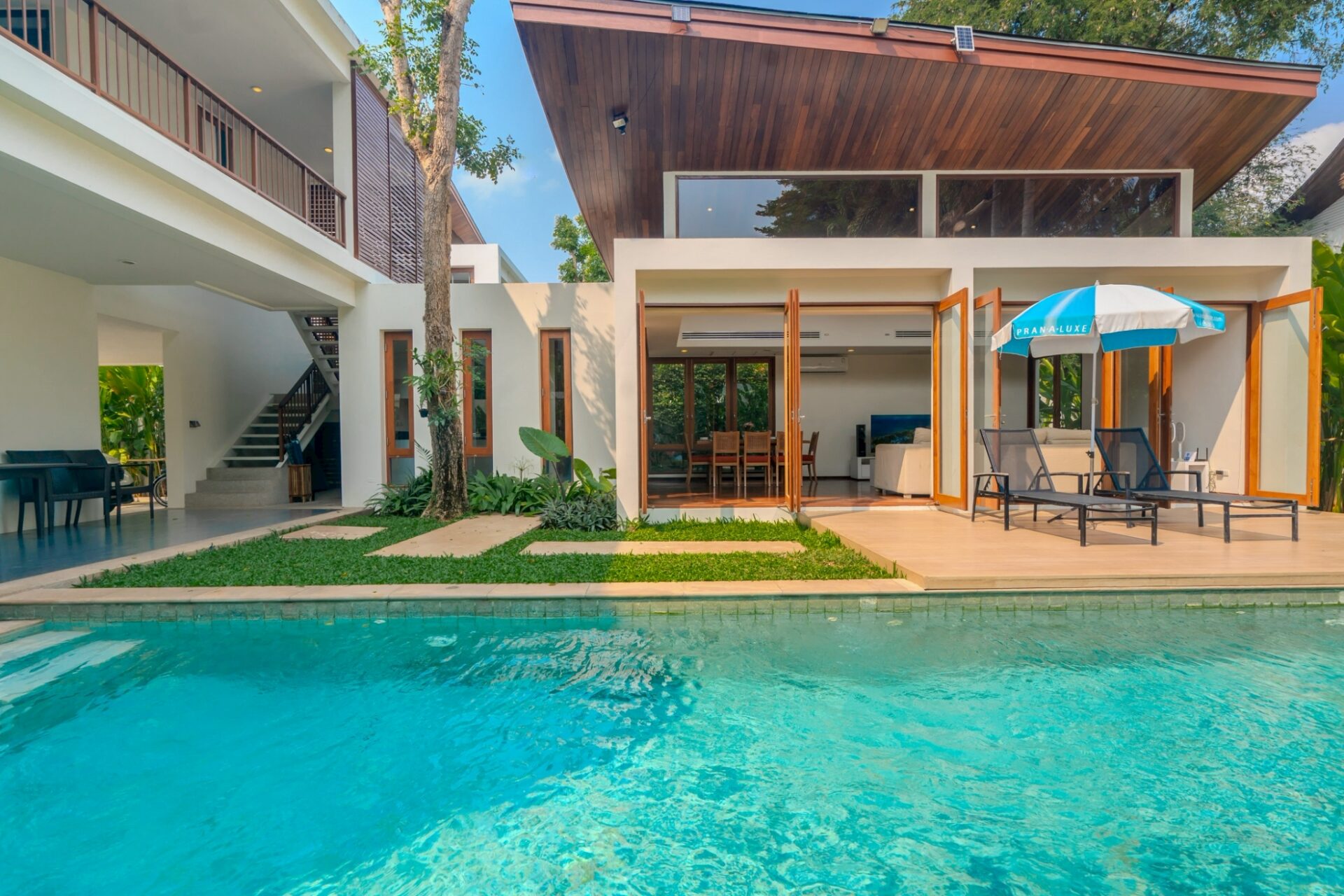 บ้านพักพูลวิลล่าปราณบุรีใกล้ทะเล สไตล์ทรอปิคอล บรรยากาศสงบ เป็นส่วนตัว พร้อมสระว่ายน้ำส่วนตัว และอาหารเช้า เสิร์ฟถึงที่ เหมาะกับครอบครัวหรือกลุ่มเพื่อนที่อยากพักผ่อนชิลๆ ริมชายหาดปากน้ำปราณ ห่างทะเลเพียง 170 เมตร