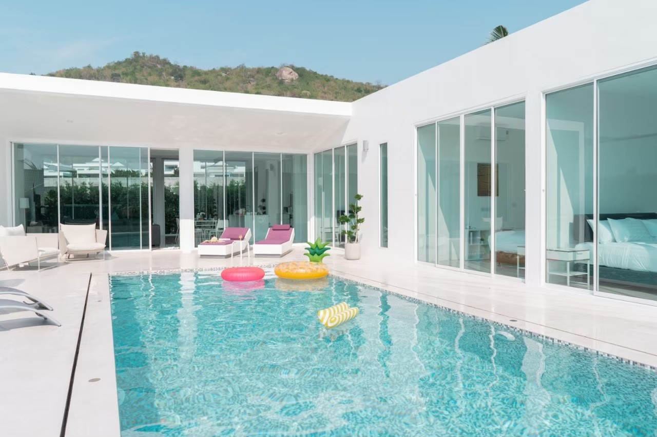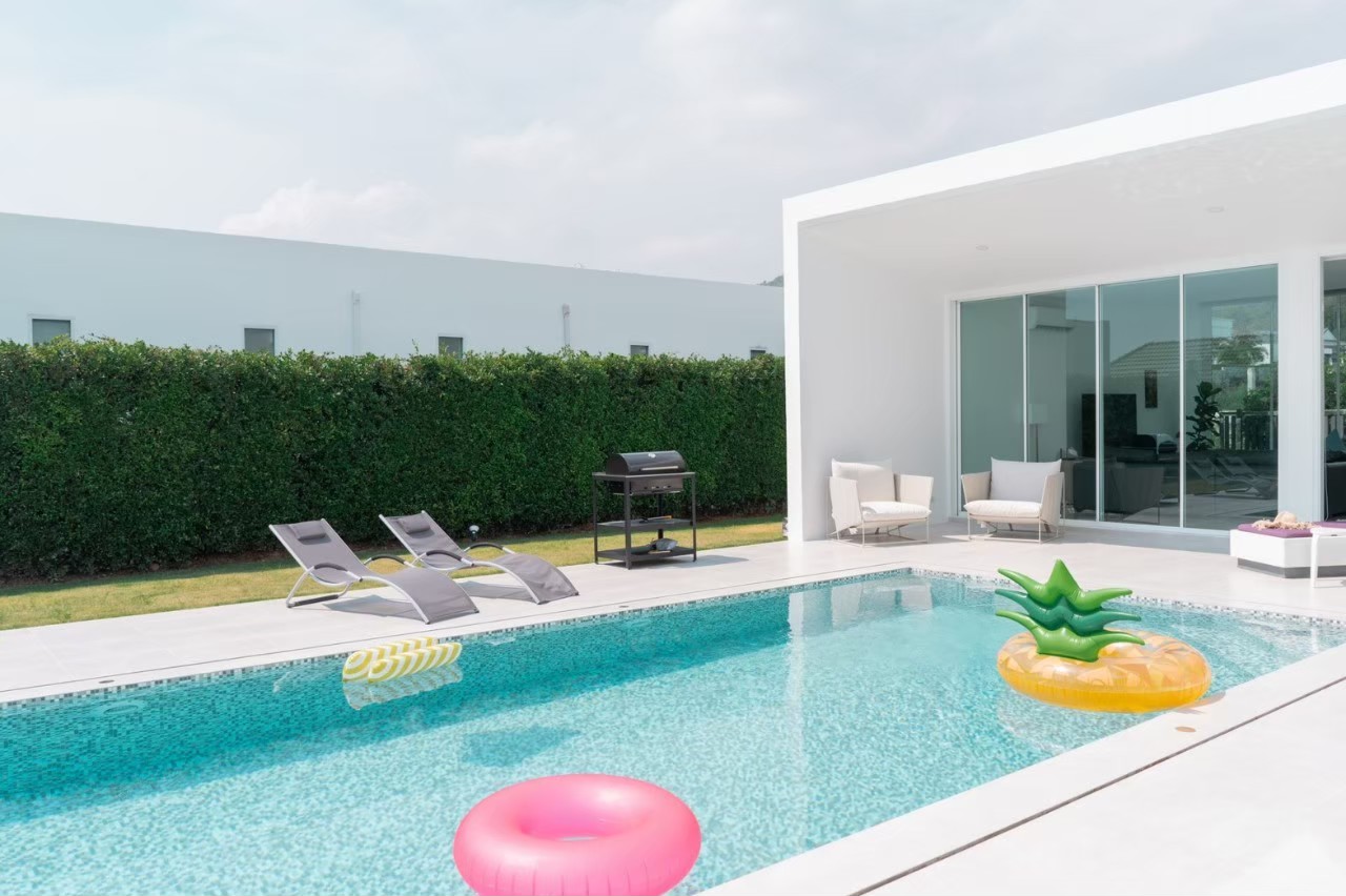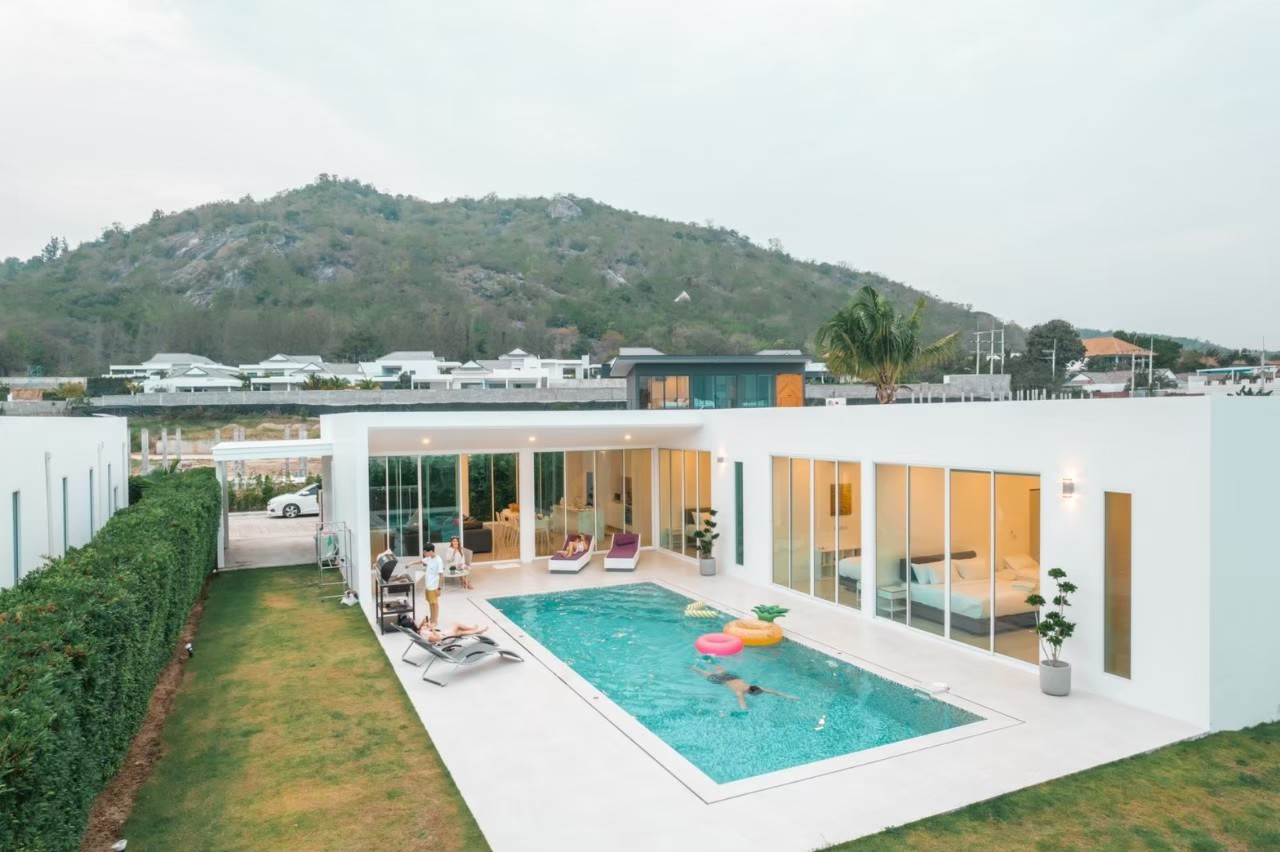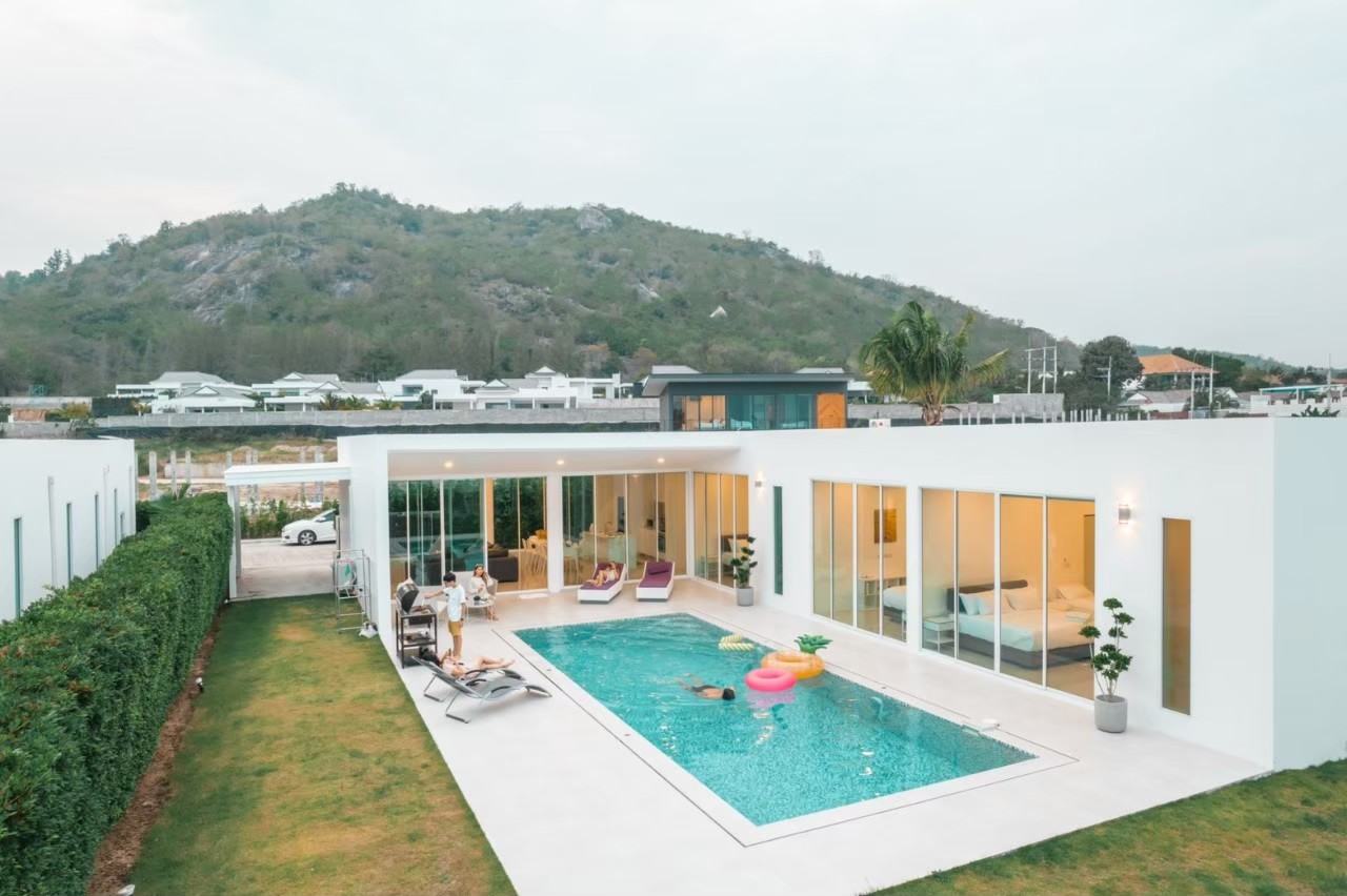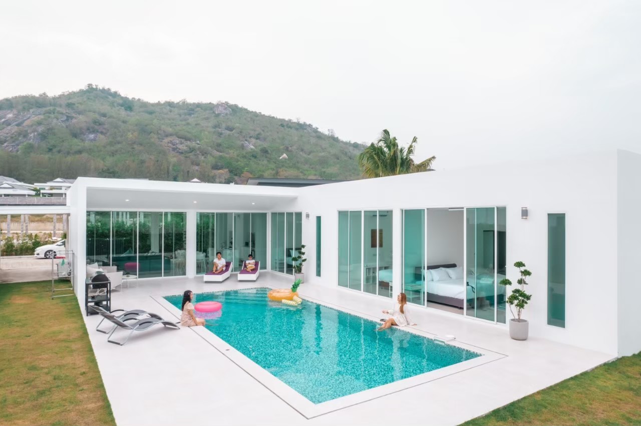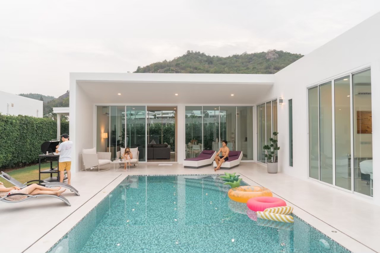 บ้านพักพูลวิลล่าหัวหิน สไตล์ Western Modern สำหรับวันพักผ่อนแสนสบายกับครอบครัวและกลุ่มเพื่อน ตั้งอยู่ในซอยหัวหิน 126 เดินทางสะดวก ใกล้สถานที่ท่องเที่ยวชื่อดังมากมาย มาพร้อมสระว่ายน้ำส่วนตัวขนาดใหญ่ และสิ่งอำนวยความสะดวกครบครัน