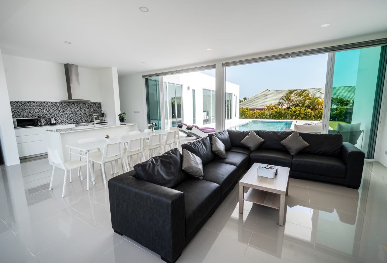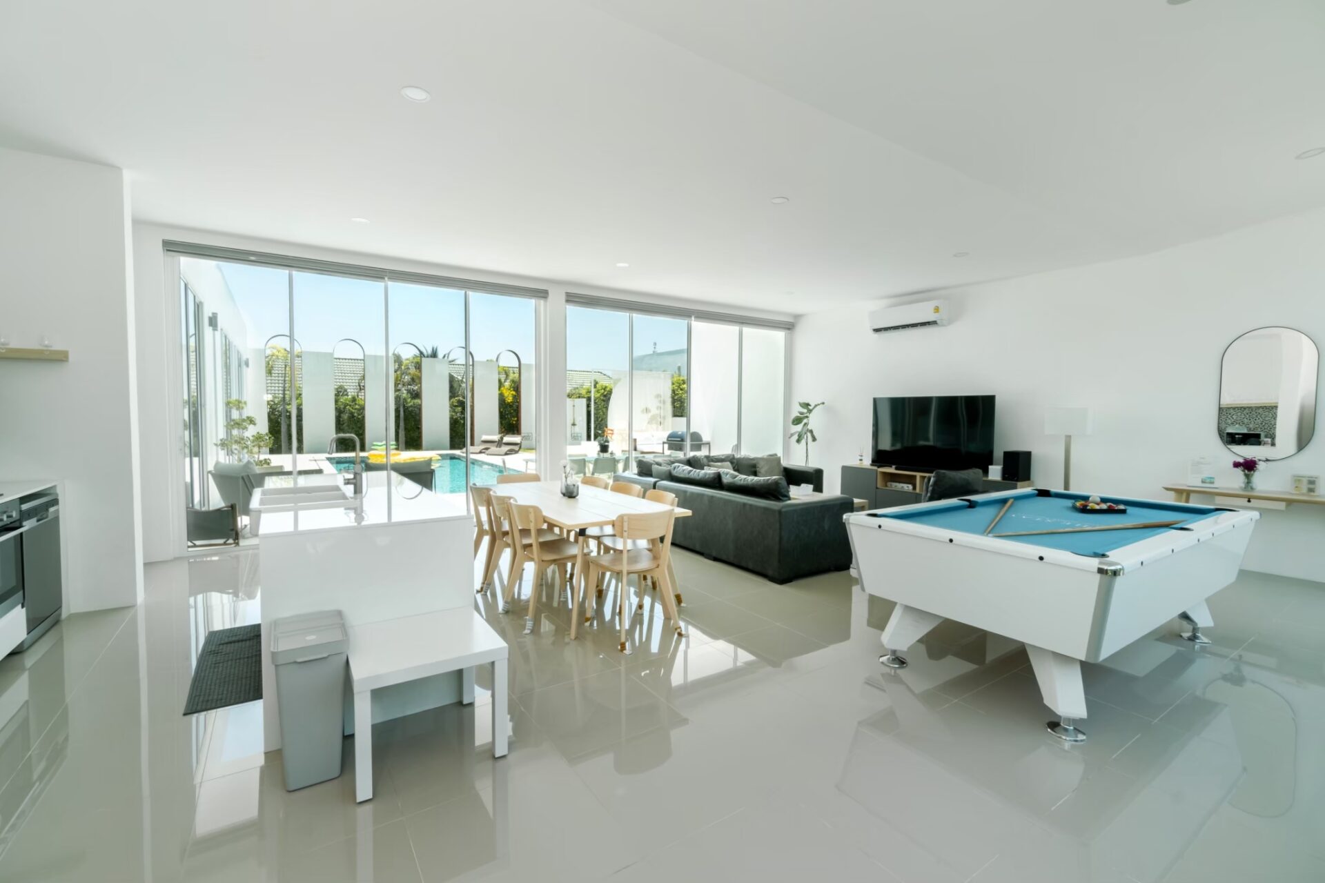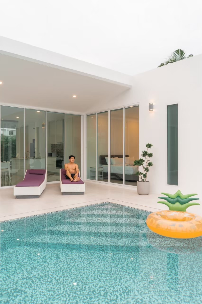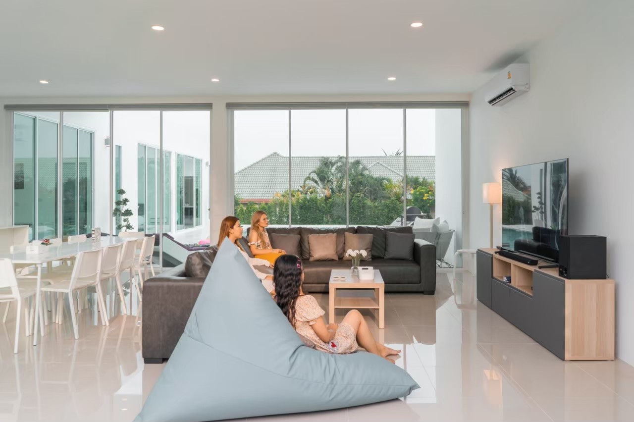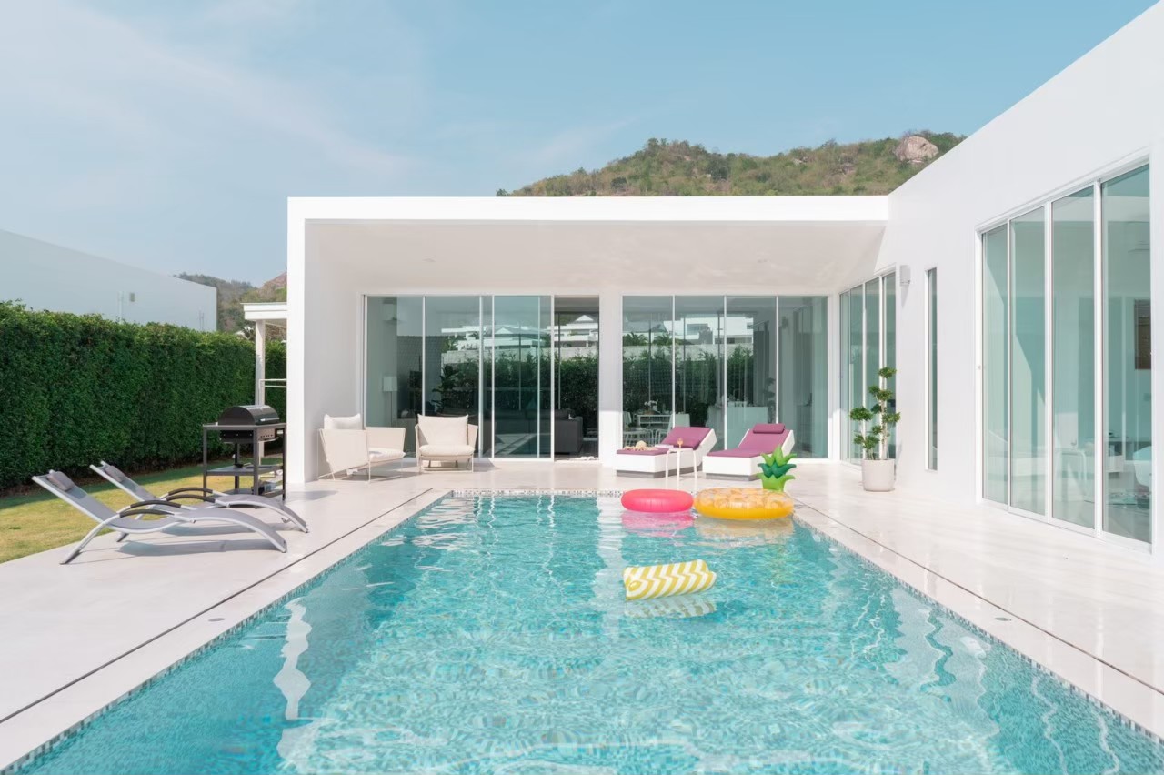 บ้านพักพูลวิลล่าหัวหิน สไตล์ Western Modern สำหรับวันพักผ่อนแสนสบายกับครอบครัวและกลุ่มเพื่อน ตั้งอยู่ในซอยหัวหิน 126 เดินทางสะดวก ใกล้สถานที่ท่องเที่ยวชื่อดังมากมาย มาพร้อมสระว่ายน้ำส่วนตัวขนาดใหญ่ และสิ่งอำนวยความสะดวกครบครัน