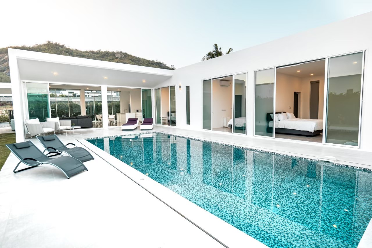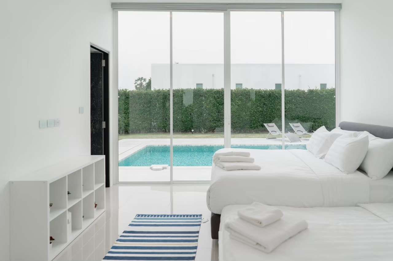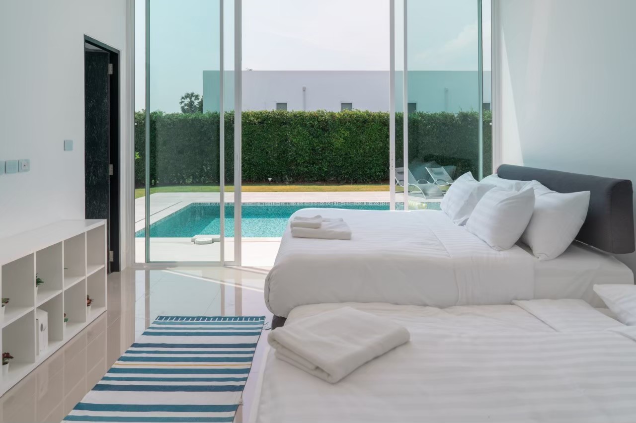 บ้านพักพูลวิลล่าหัวหินขนาด 4 ห้องนอน 4 ห้องน้ำ (ทุกห้องมีห้องน้ำในตัว) พร้อมสระว่ายน้ำส่วนตัวระบบเกลือขนาด 10 x 4 เมตร