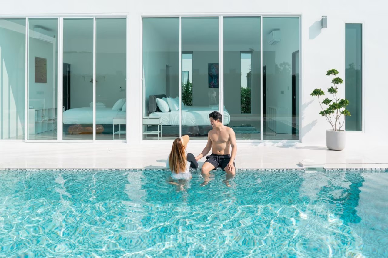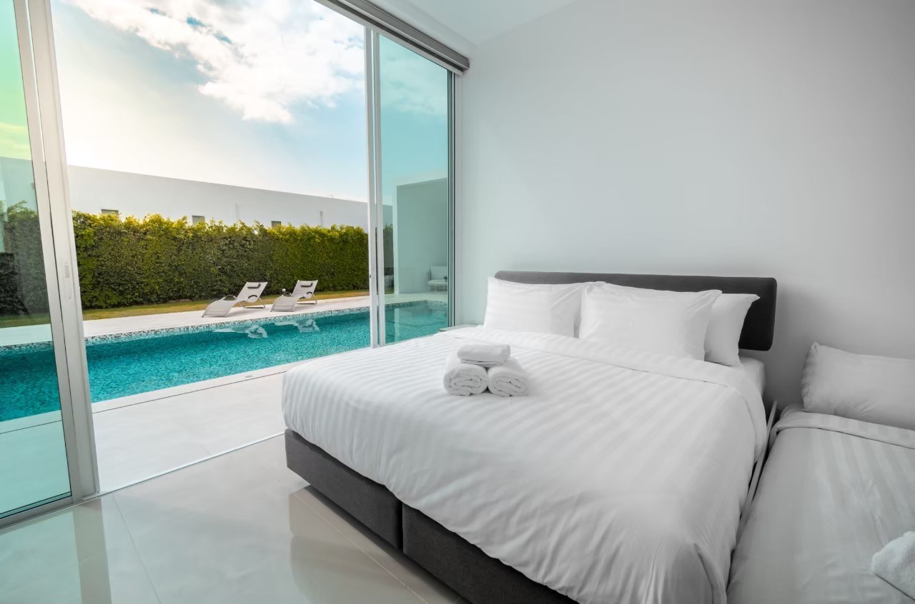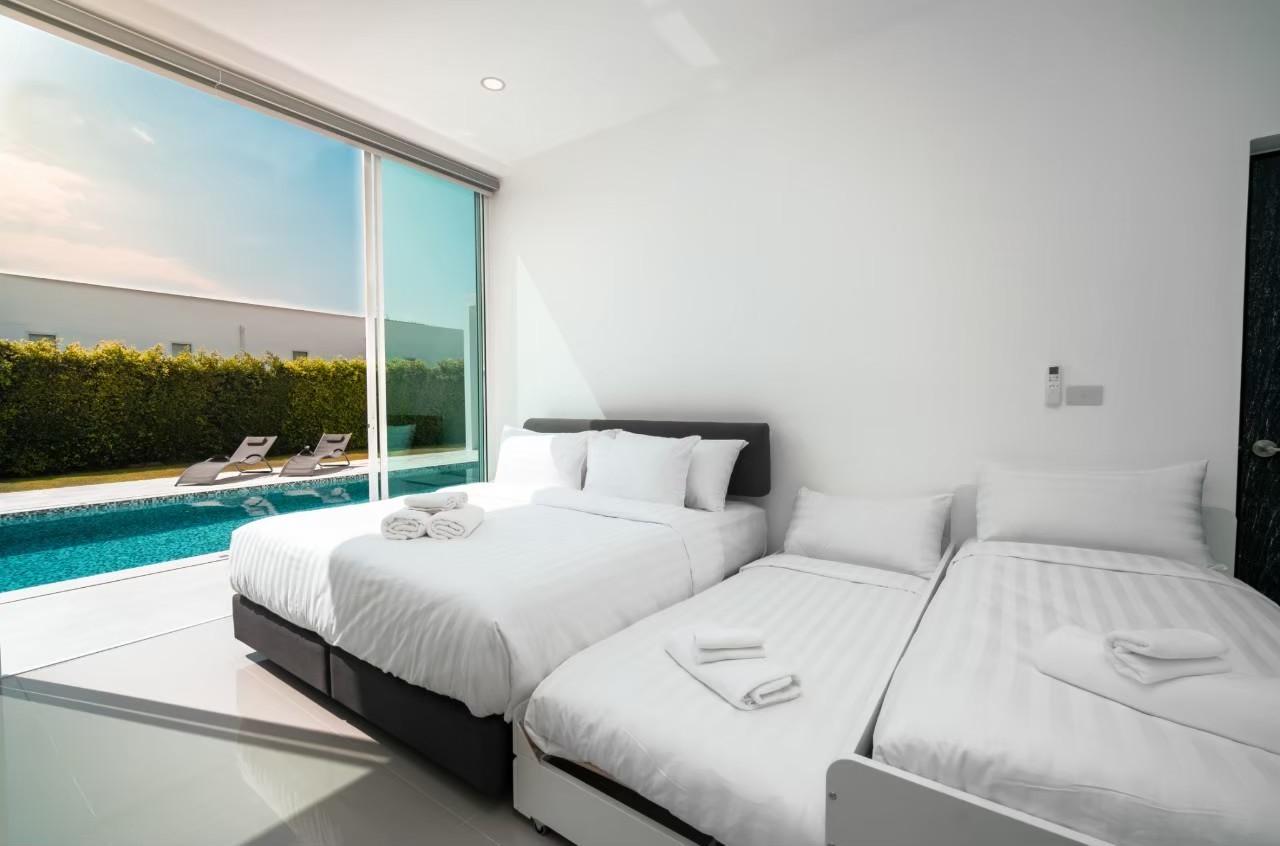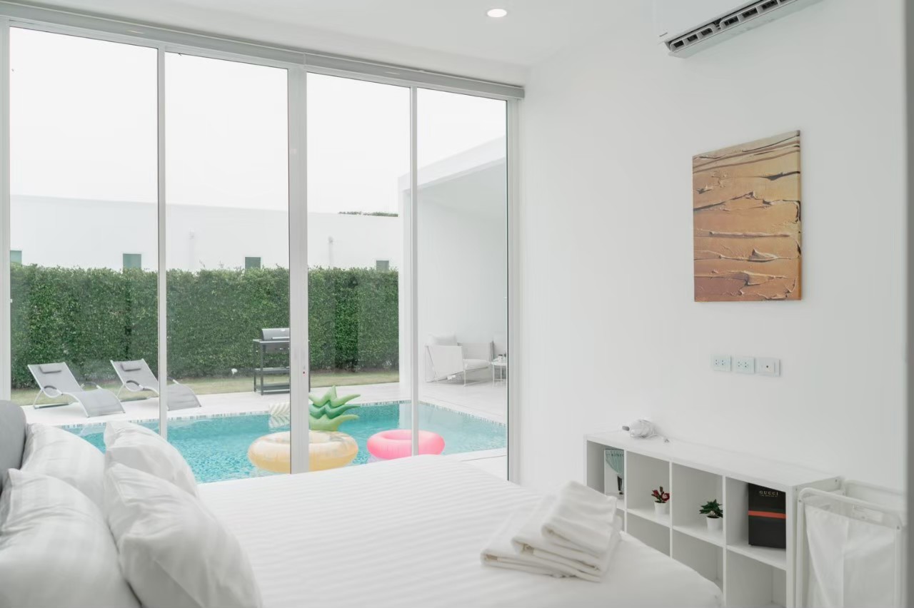 บ้านพักพูลวิลล่าหัวหินขนาด 4 ห้องนอน 4 ห้องน้ำ (ทุกห้องมีห้องน้ำในตัว) พร้อมสระว่ายน้ำส่วนตัวระบบเกลือขนาด 10 x 4 เมตร