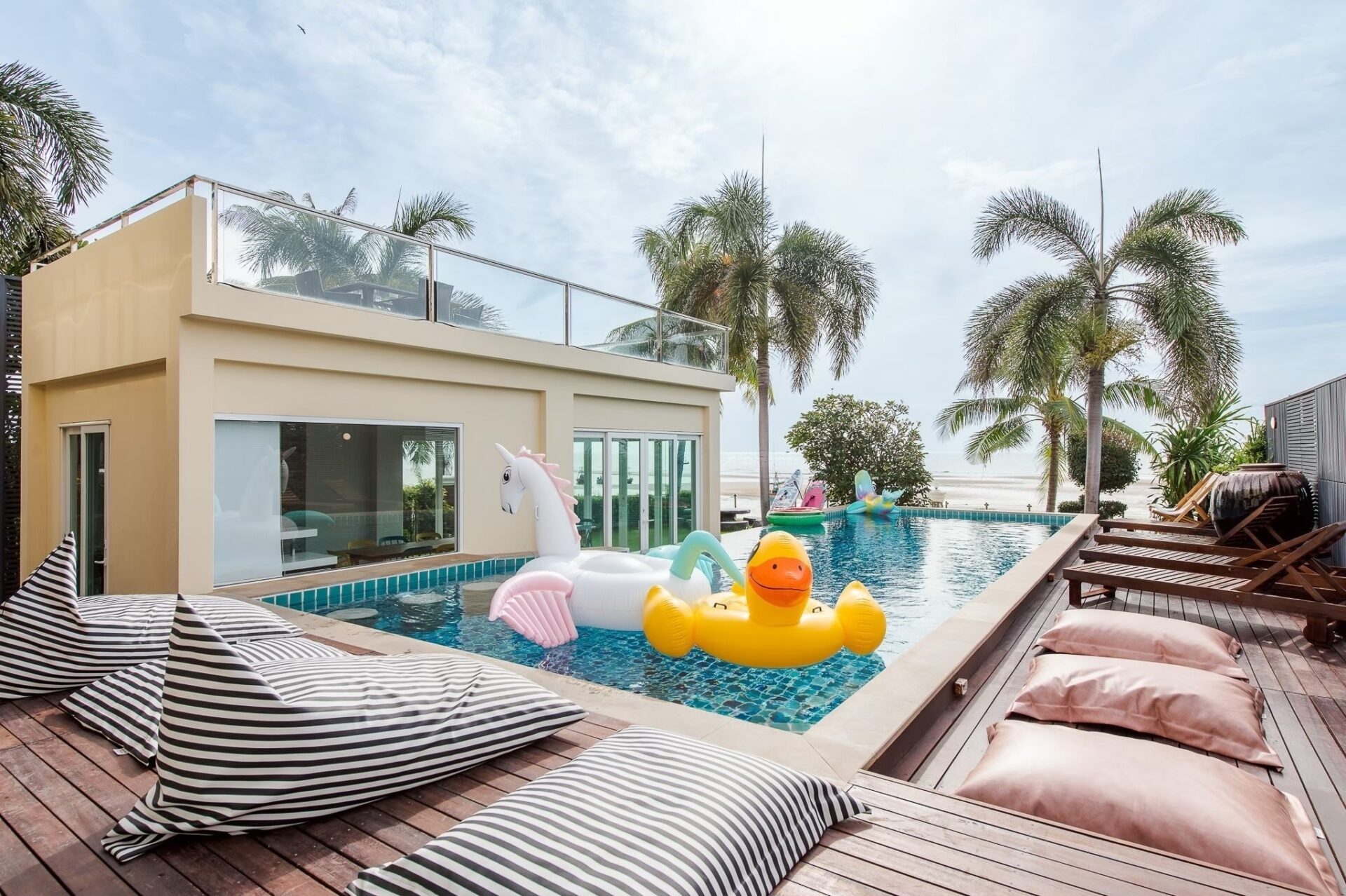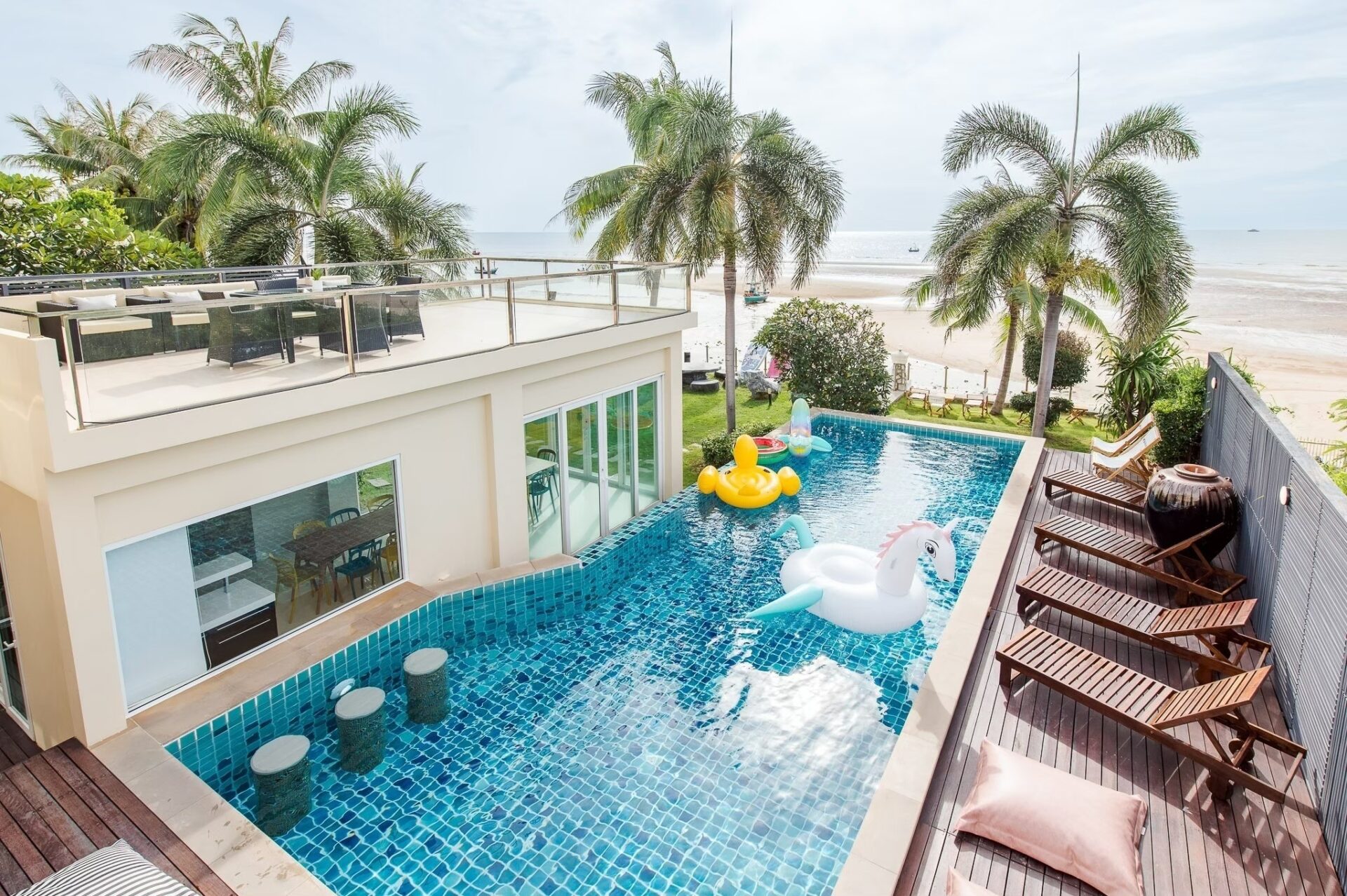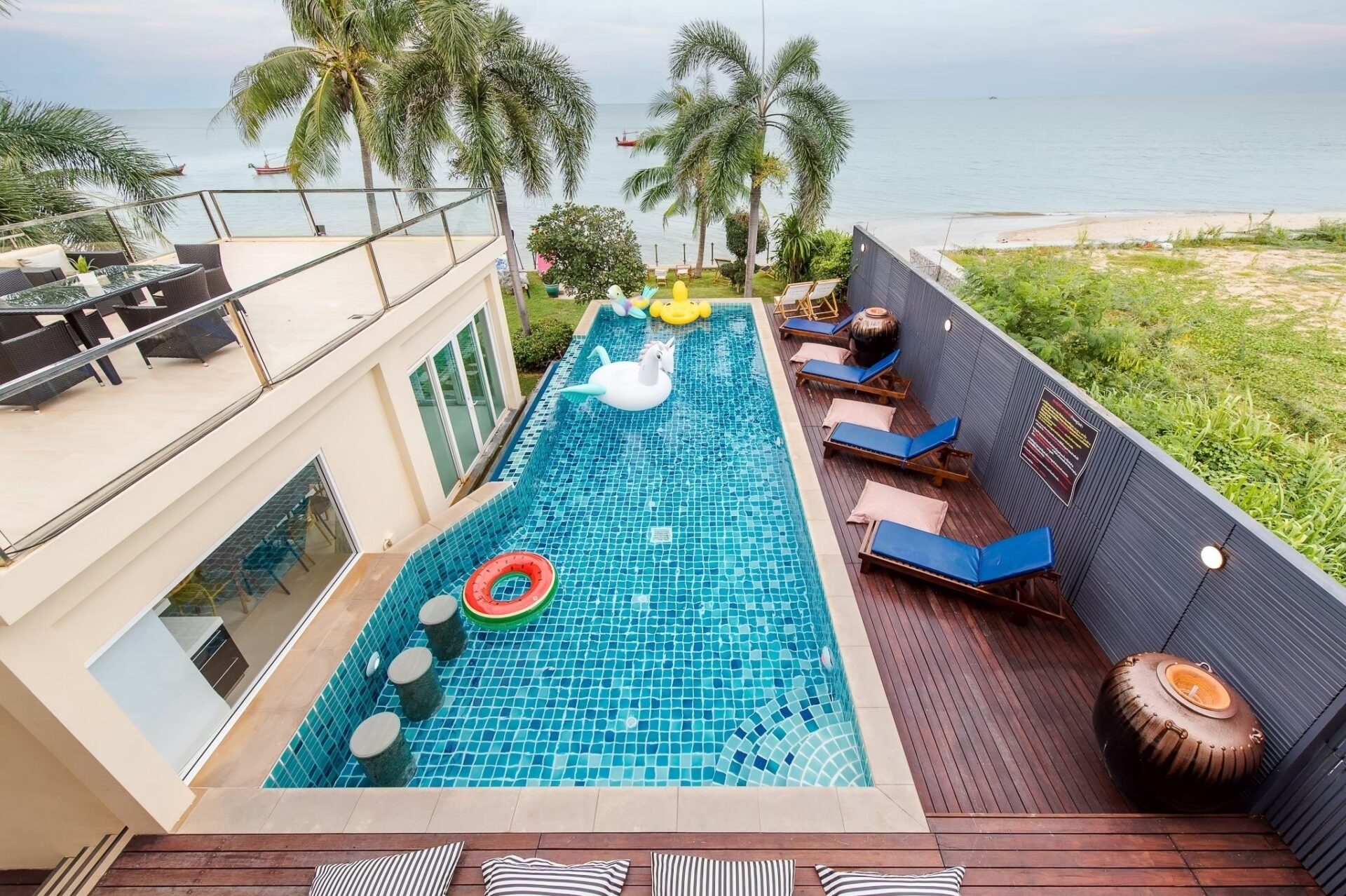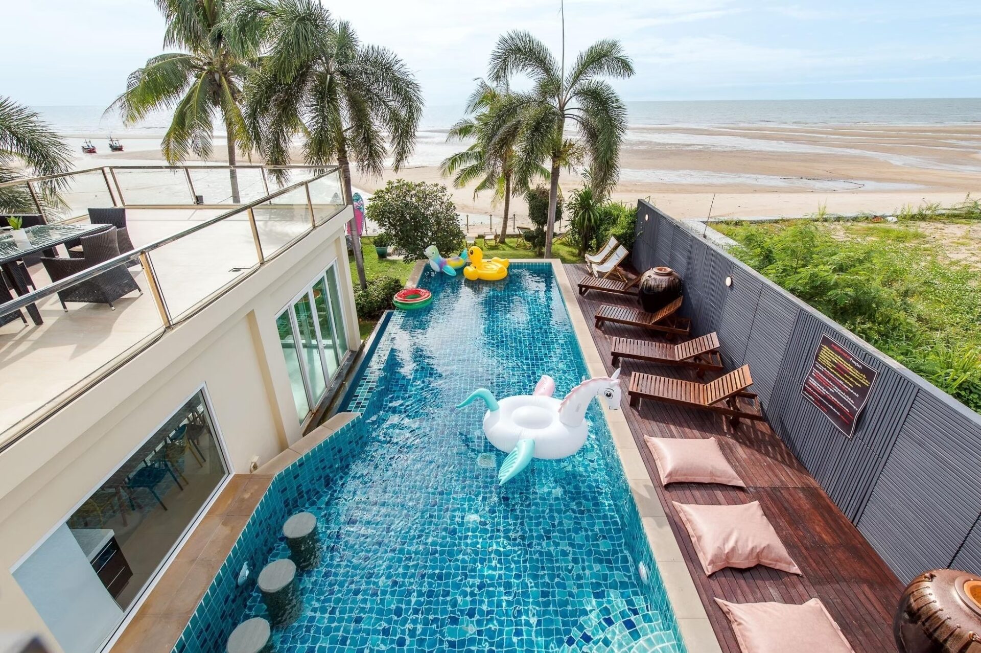 บ้านพักพูลวิลล่าติดทะเลหัวหิน สุดหรู พร้อมวิวทะเลแบบพาโนรามา รองรับได้ถึง 20 ท่าน เหมาะสำหรับครอบครัวใหญ่หรือกลุ่มเพื่อนที่มองหาความเป็นส่วนตัวและวิวทะเลที่สวยงาม