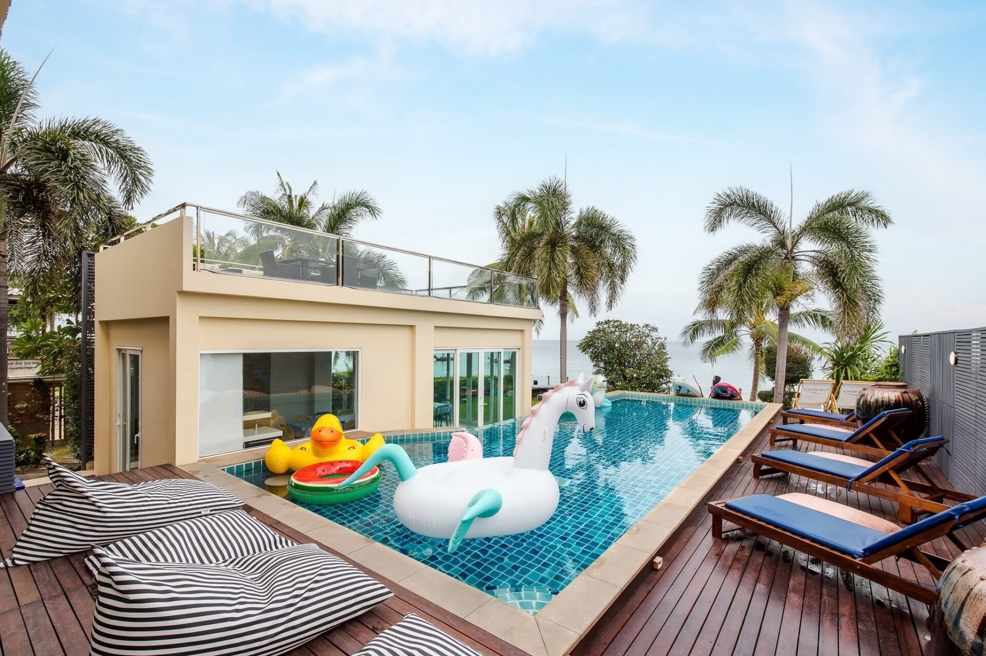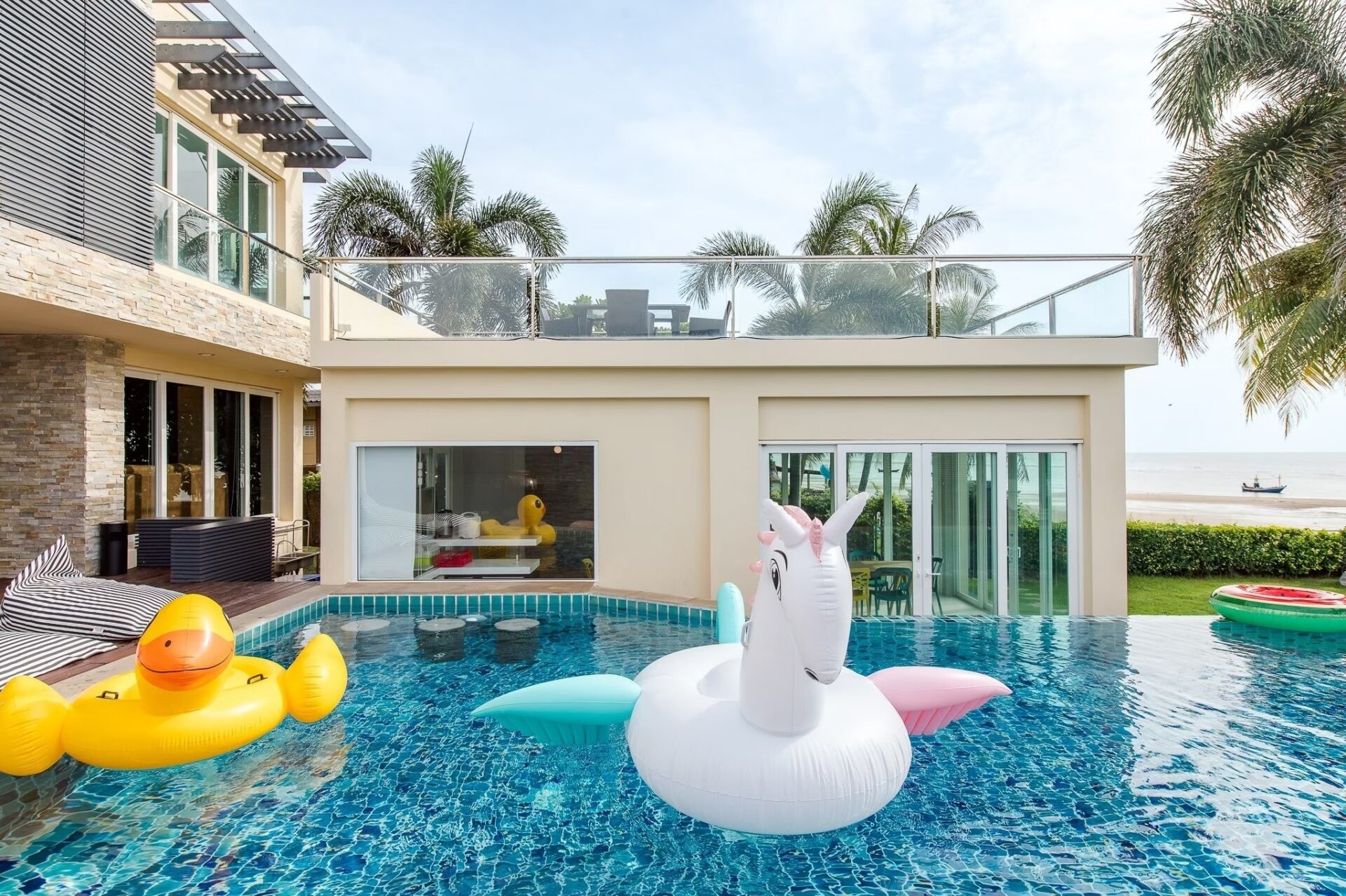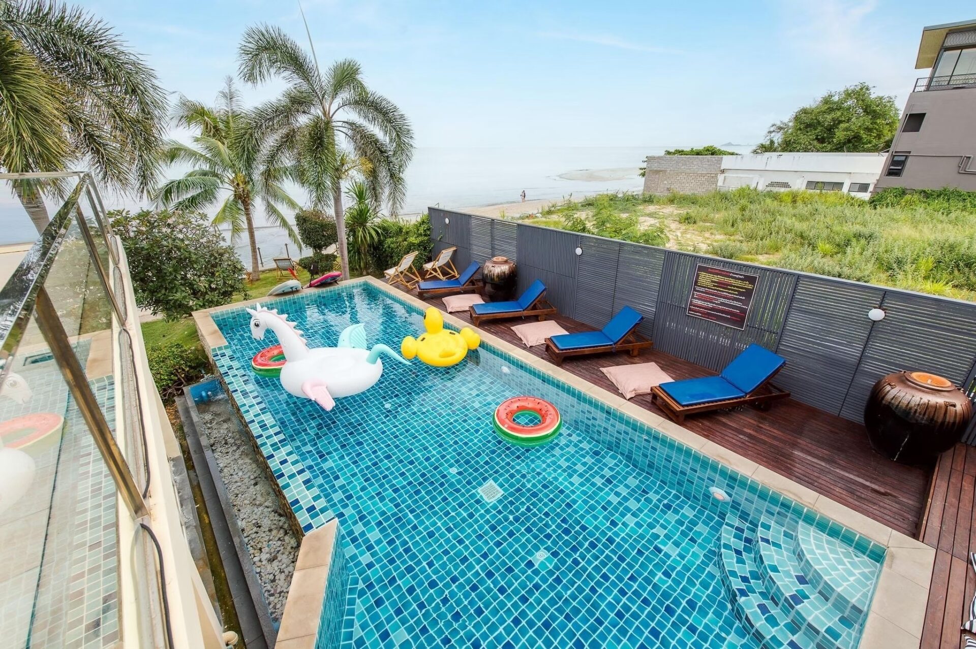บ้านพักพูลวิลล่าติดทะเลหัวหิน สุดหรู พร้อมวิวทะเลแบบพาโนรามา รองรับได้ถึง 20 ท่าน เหมาะสำหรับครอบครัวใหญ่หรือกลุ่มเพื่อนที่มองหาความเป็นส่วนตัวและวิวทะเลที่สวยงาม
