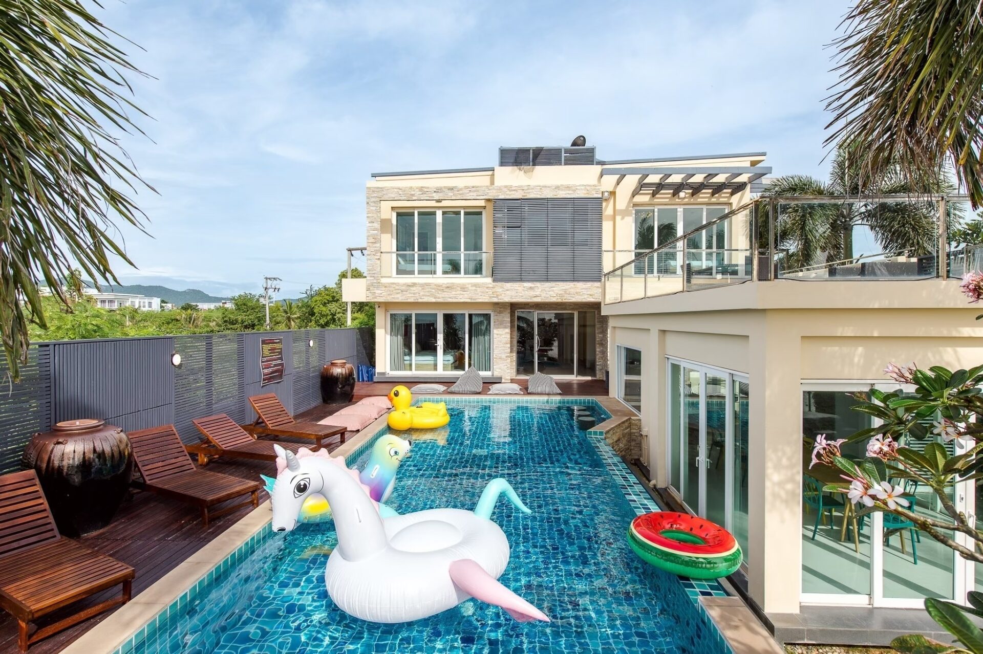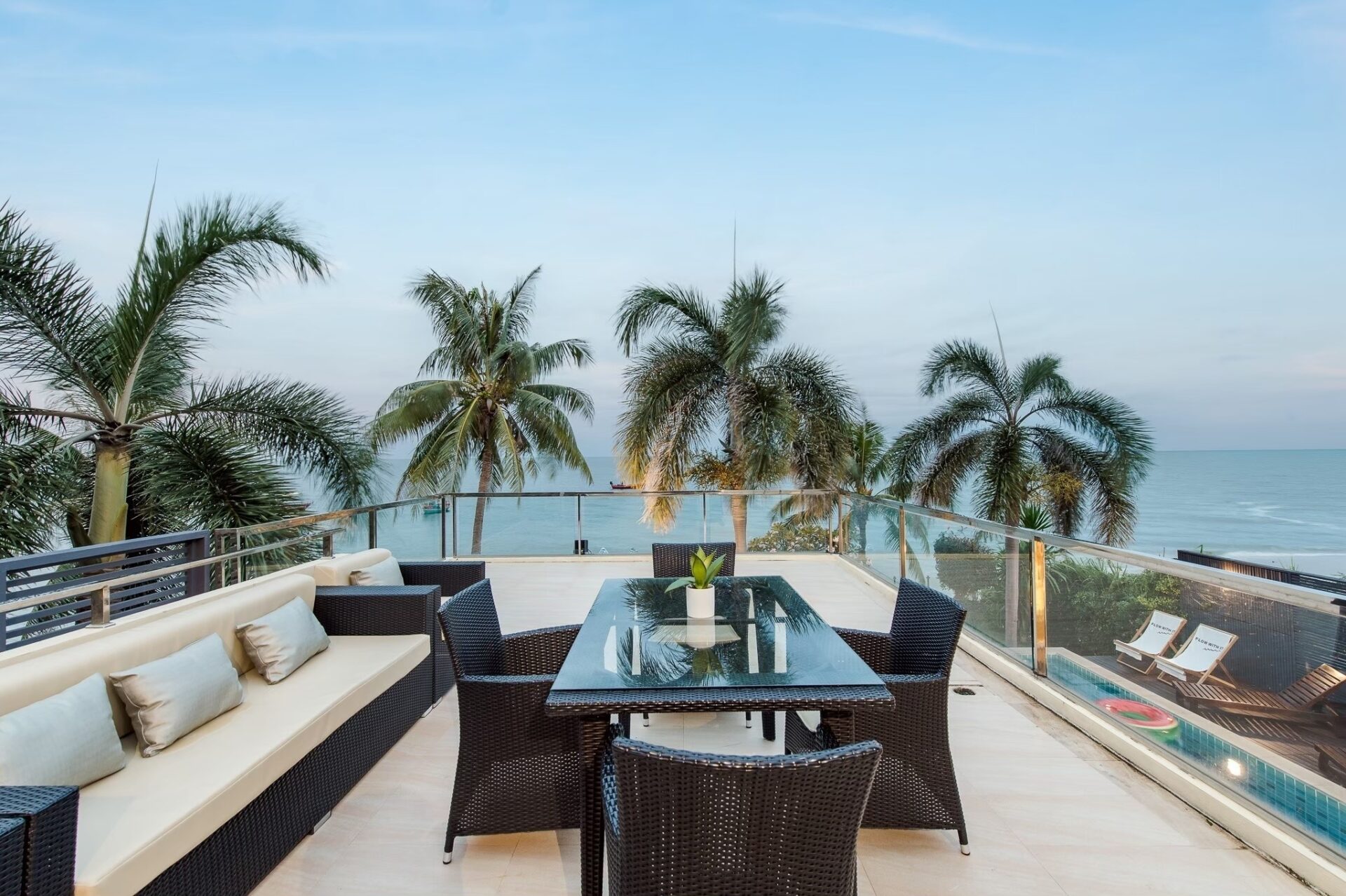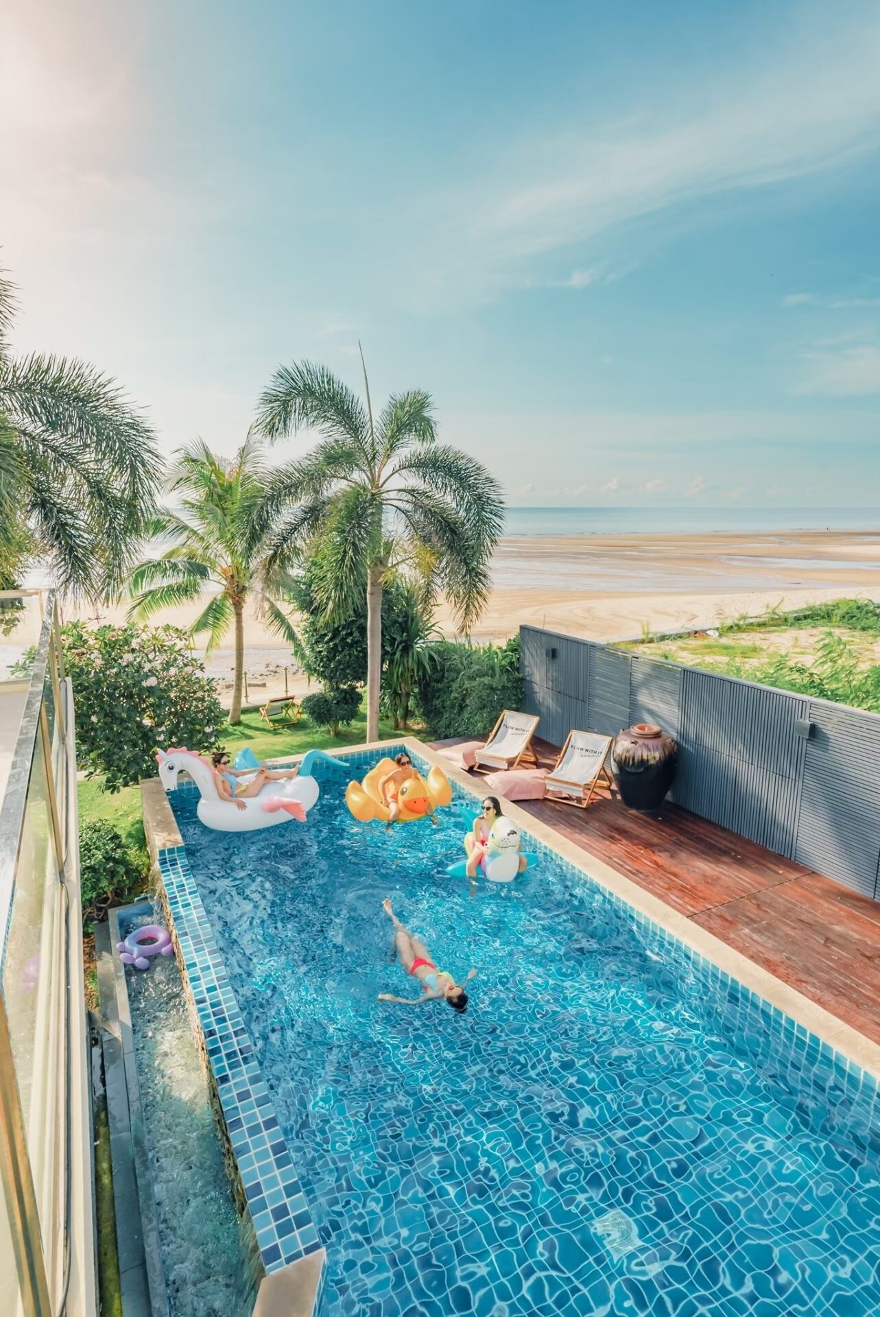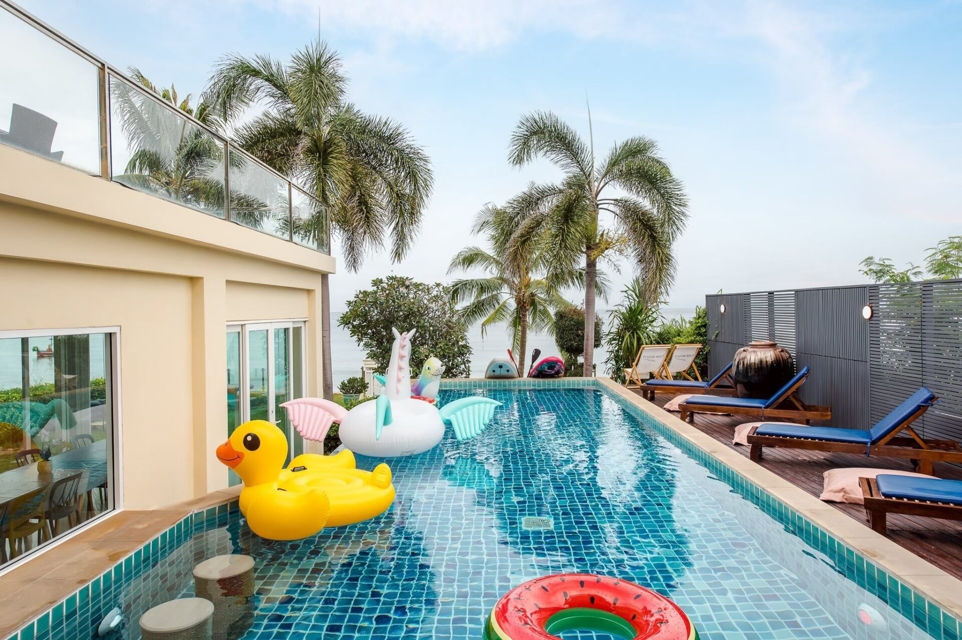 บ้านพักพูลวิลล่าติดทะเลหัวหิน สุดหรู พร้อมวิวทะเลแบบพาโนรามา รองรับได้ถึง 20 ท่าน เหมาะสำหรับครอบครัวใหญ่หรือกลุ่มเพื่อนที่มองหาความเป็นส่วนตัวและวิวทะเลที่สวยงาม