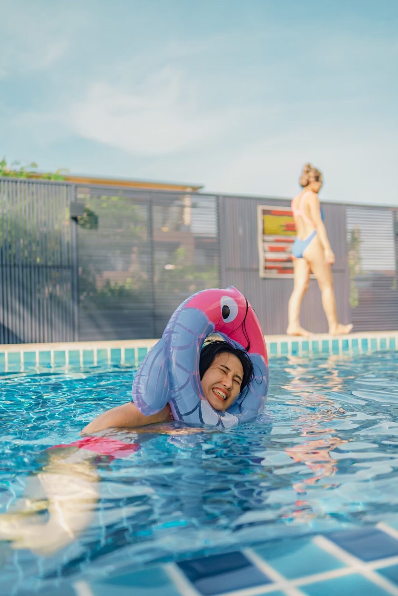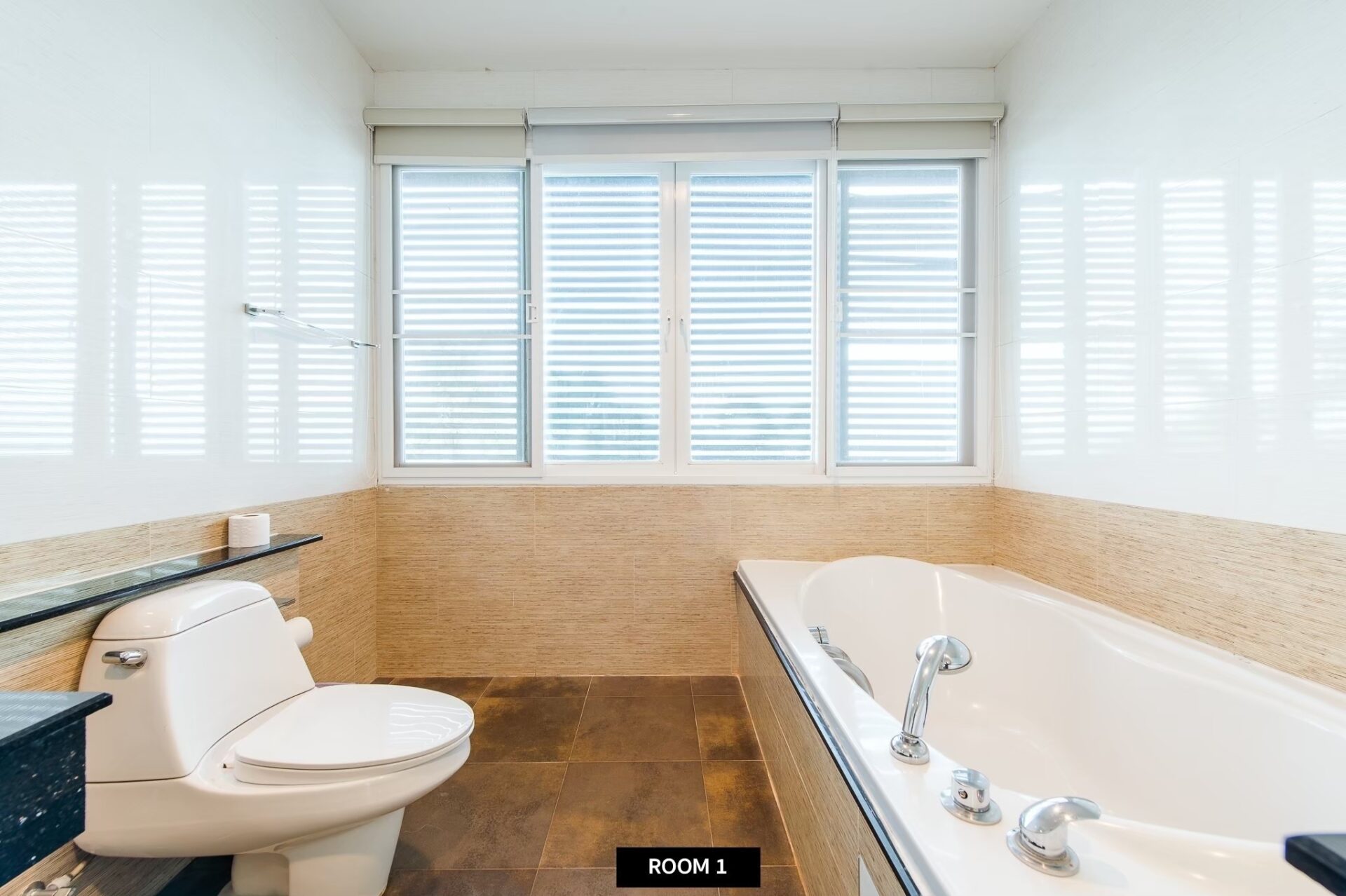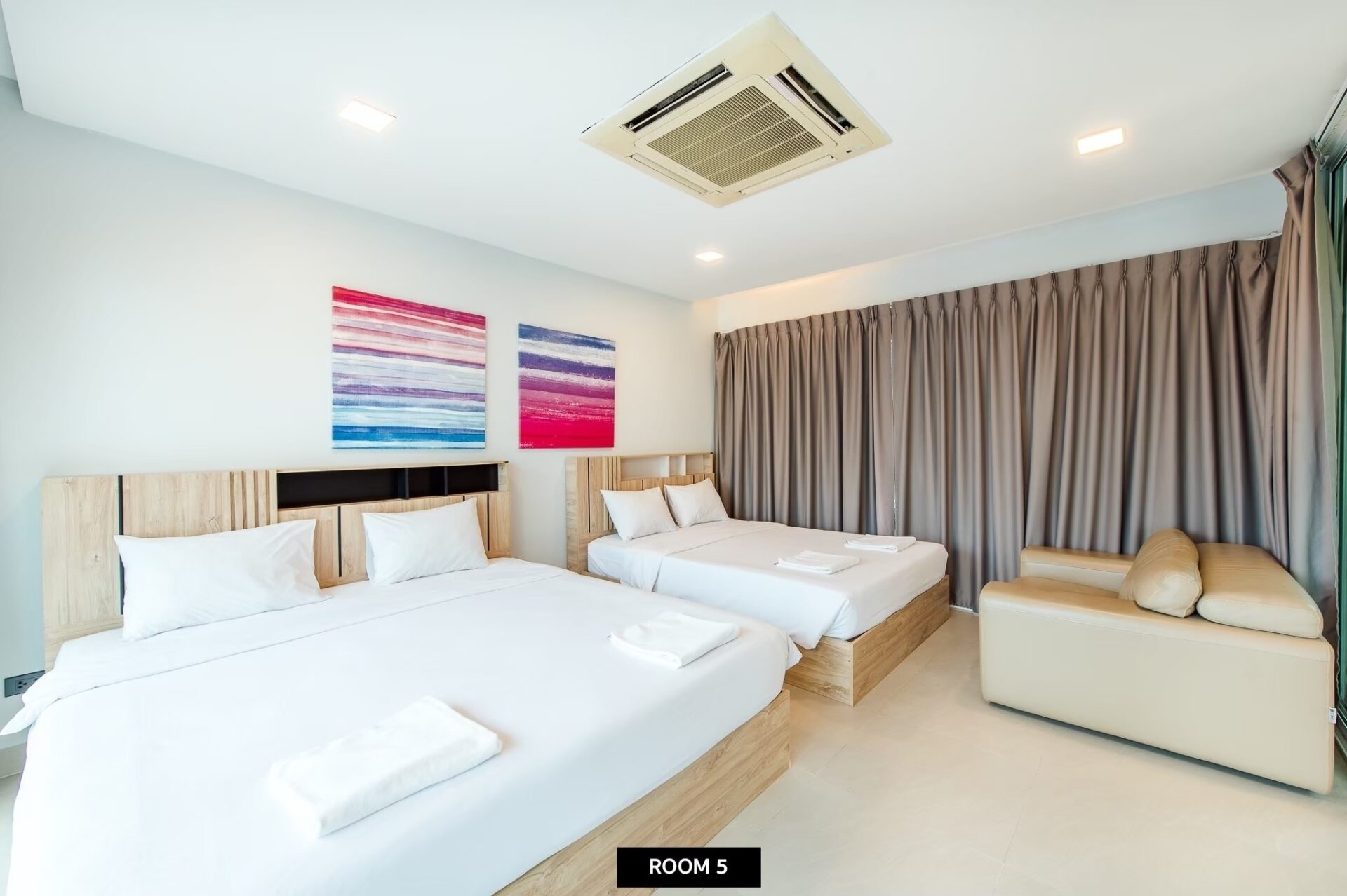 - Room 5 : ห้องติดสระว่ายน้ำ มี 2 เตียงนอนใหญ่ (ใช้ห้องสุขารวมชั้น 1 และห้องอาบน้ำร่วมกับ Room 1-4)