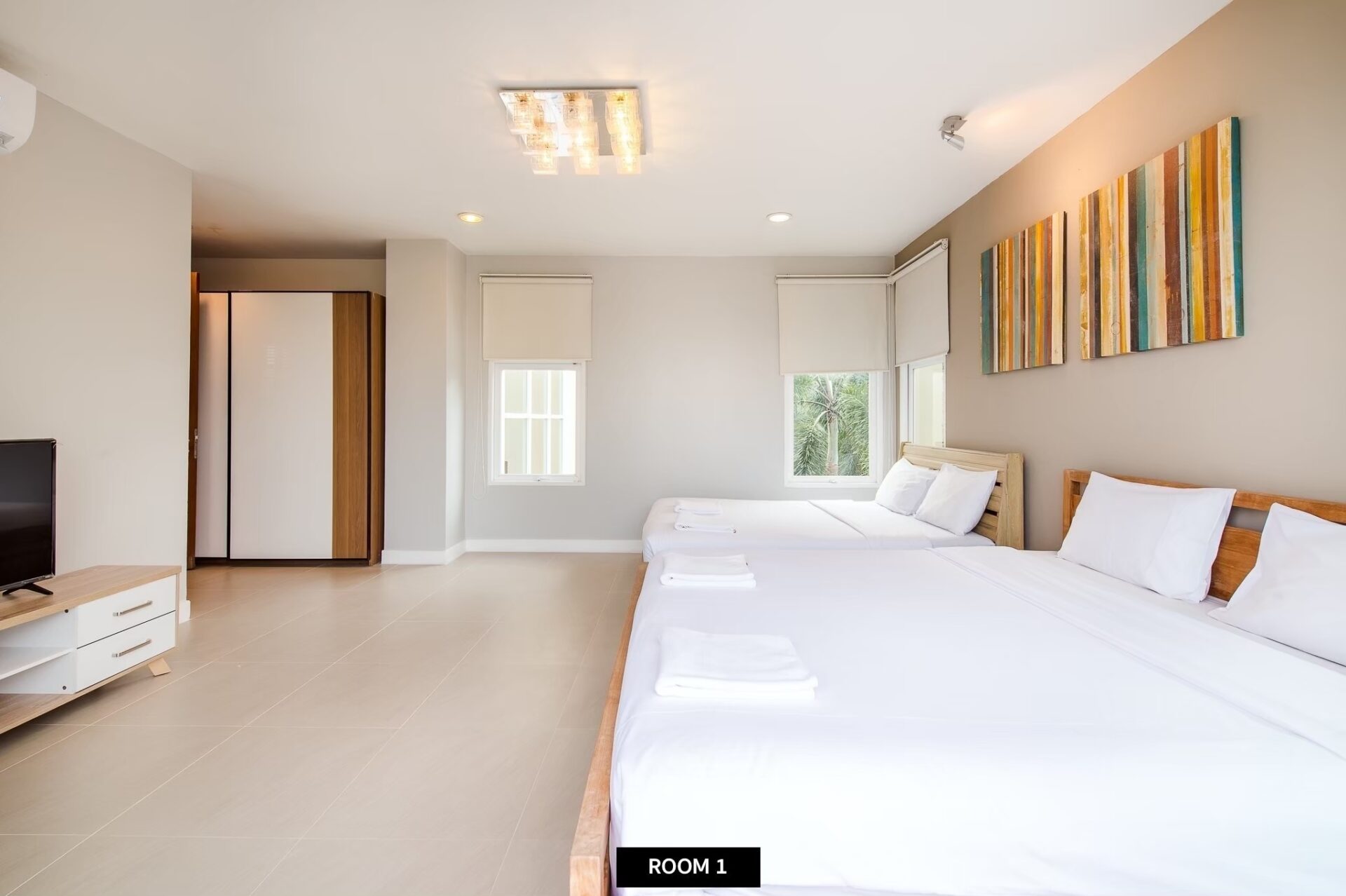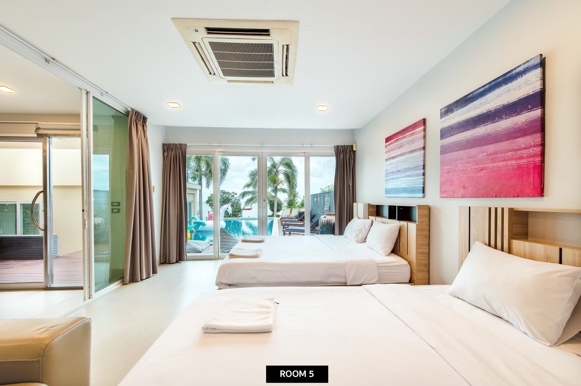 บ้านพักพูลวิลล่าติดทะเลหัวหิน 2 ชั้น มีทั้งหมด 5 ห้องนอน 5 ห้องน้ำ พร้อม สระว่ายน้ำส่วนตัวขนาด 17 เมตร