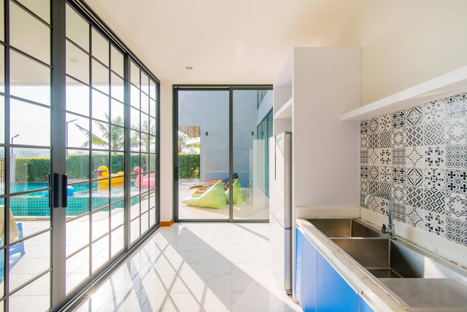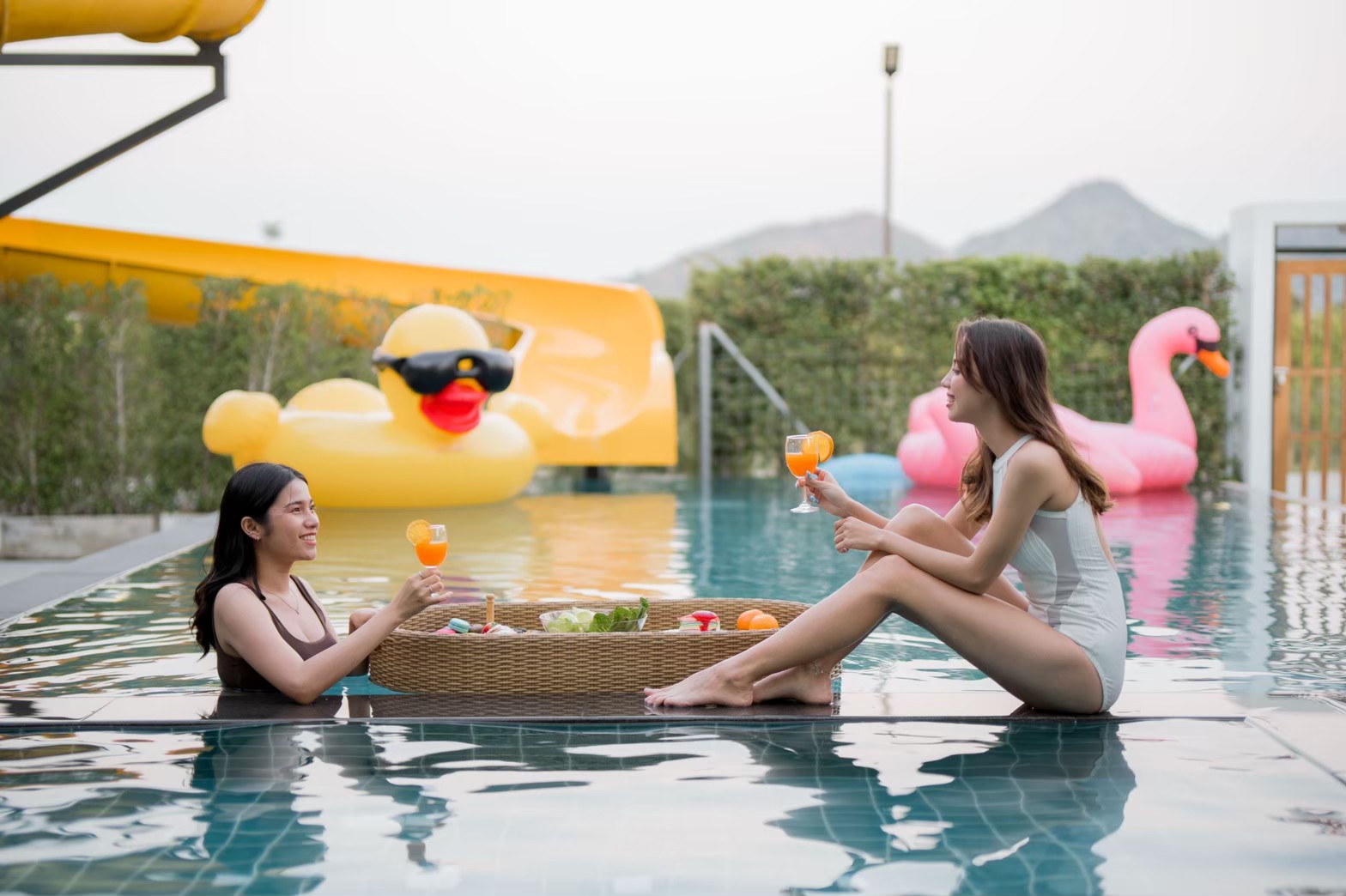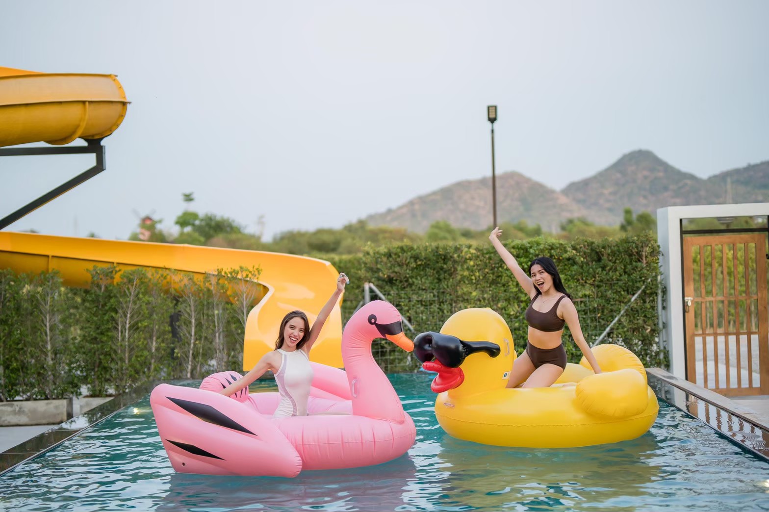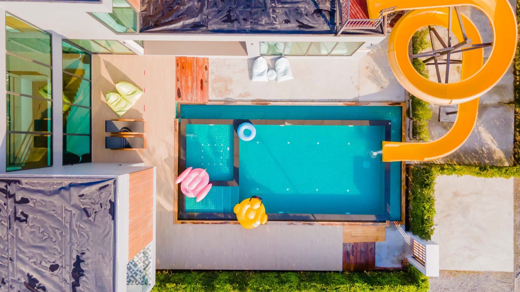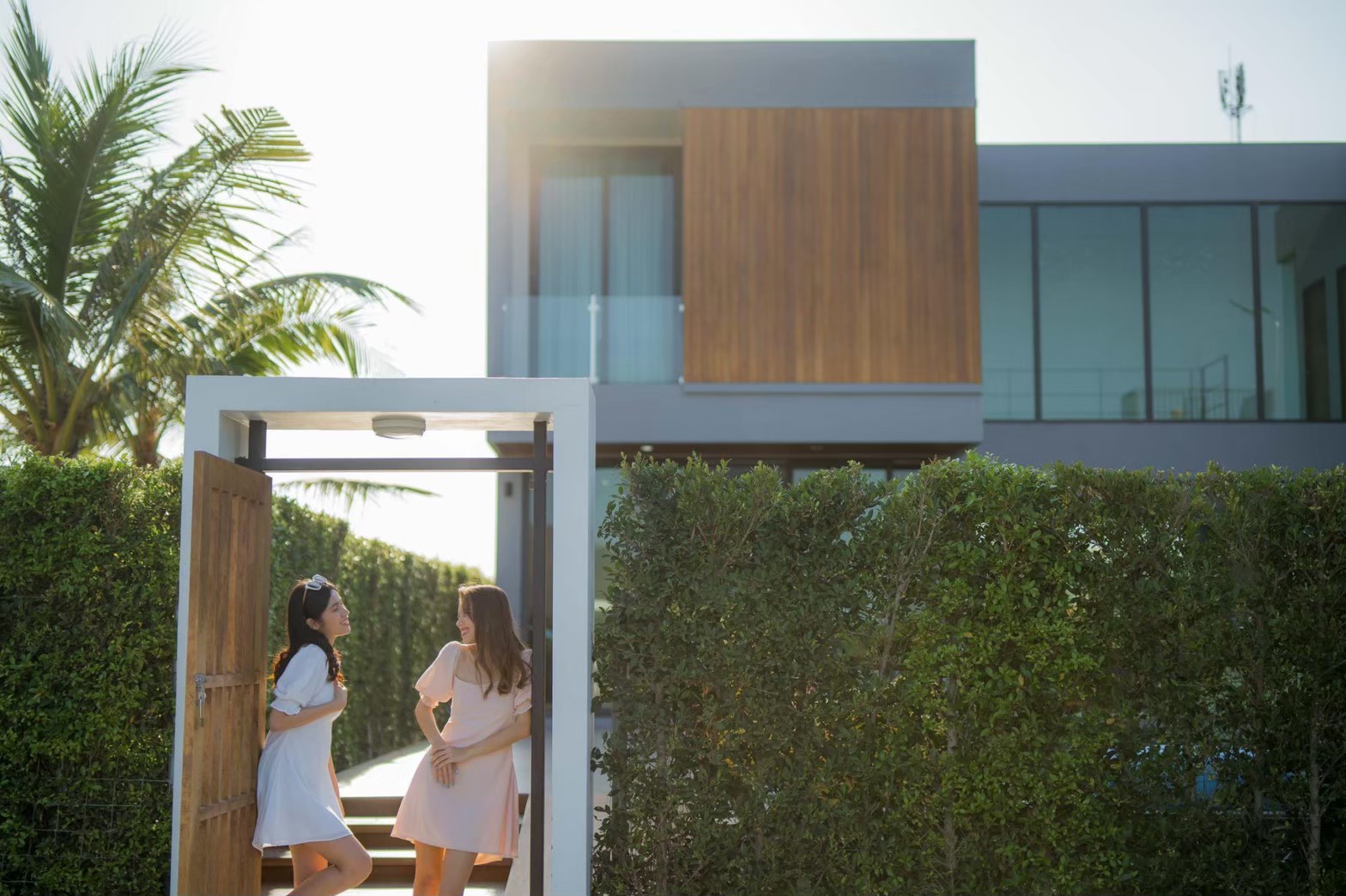 V LEVEL 2 Huahin Pool Villa บ้านพักพูลวิลล่าหัวหินสไตล์โมเดิร์นสีขาวสะอาดตา บนพื้นที่กว่า 150 ตารางวา บรรยากาศร่มรื่น เหมาะสำหรับครอบครัวหรือกลุ่มเพื่อนขนาดใหญ่ จุดเด่นคือสระว่ายน้ำส่วนตัวพร้อมสไลเดอร์ยาวสูงถึง 30 เมตร (ยาวที่สุดในหัวหิน) ภายในตกแต่งหรูหราด้วยหินอ่อน เตียงนอนจำนวนมาก รองรับผู้เข้าพักได้สูงสุดถึง 40 ท่าน